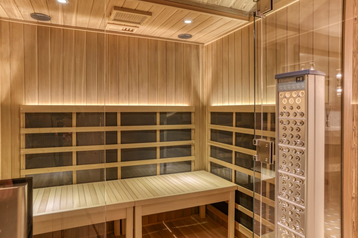 > Infrared sauna with light therapy