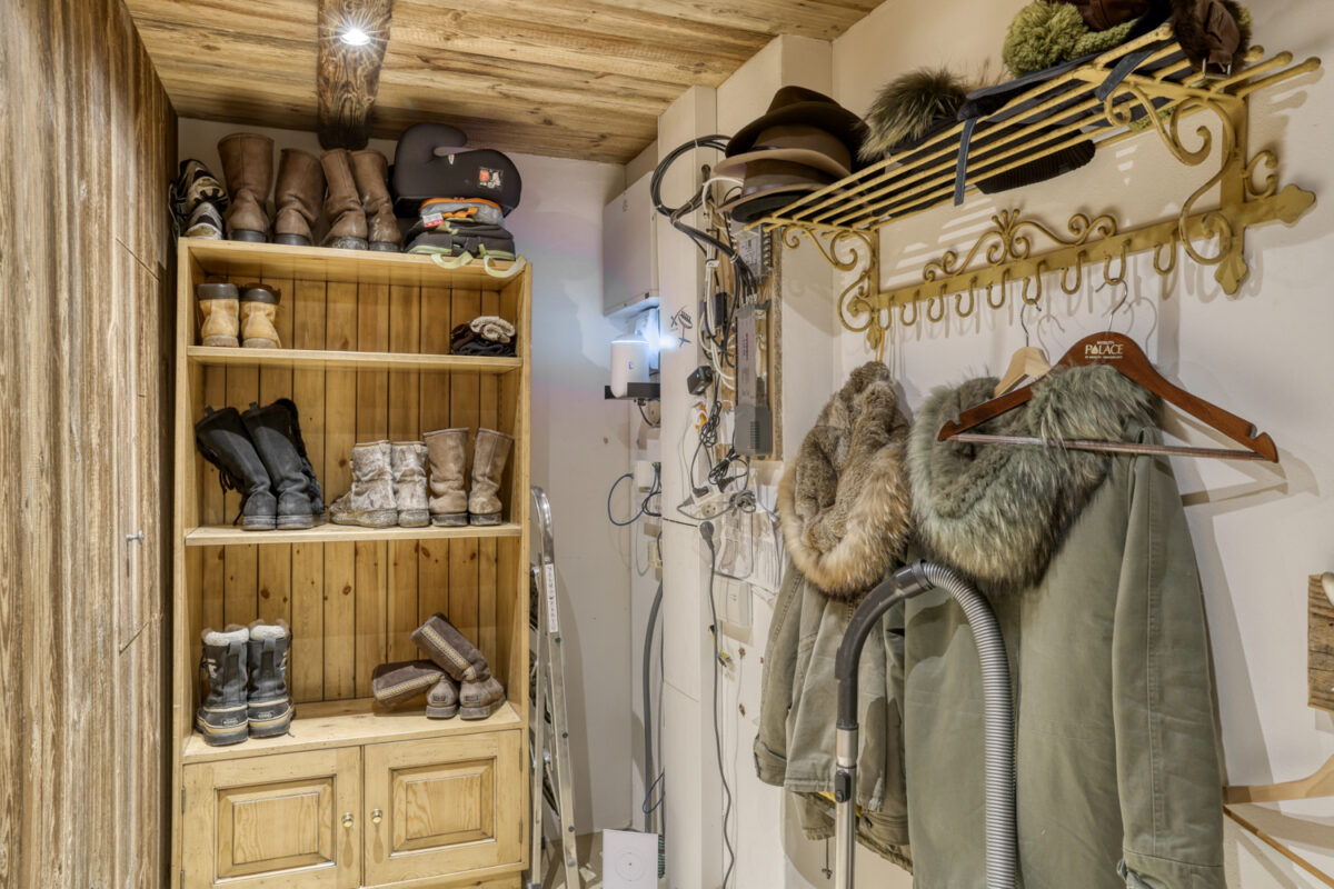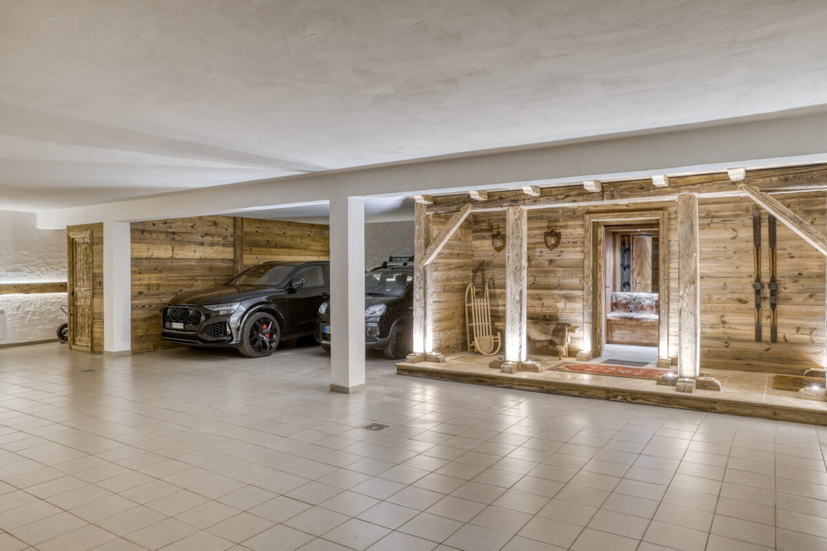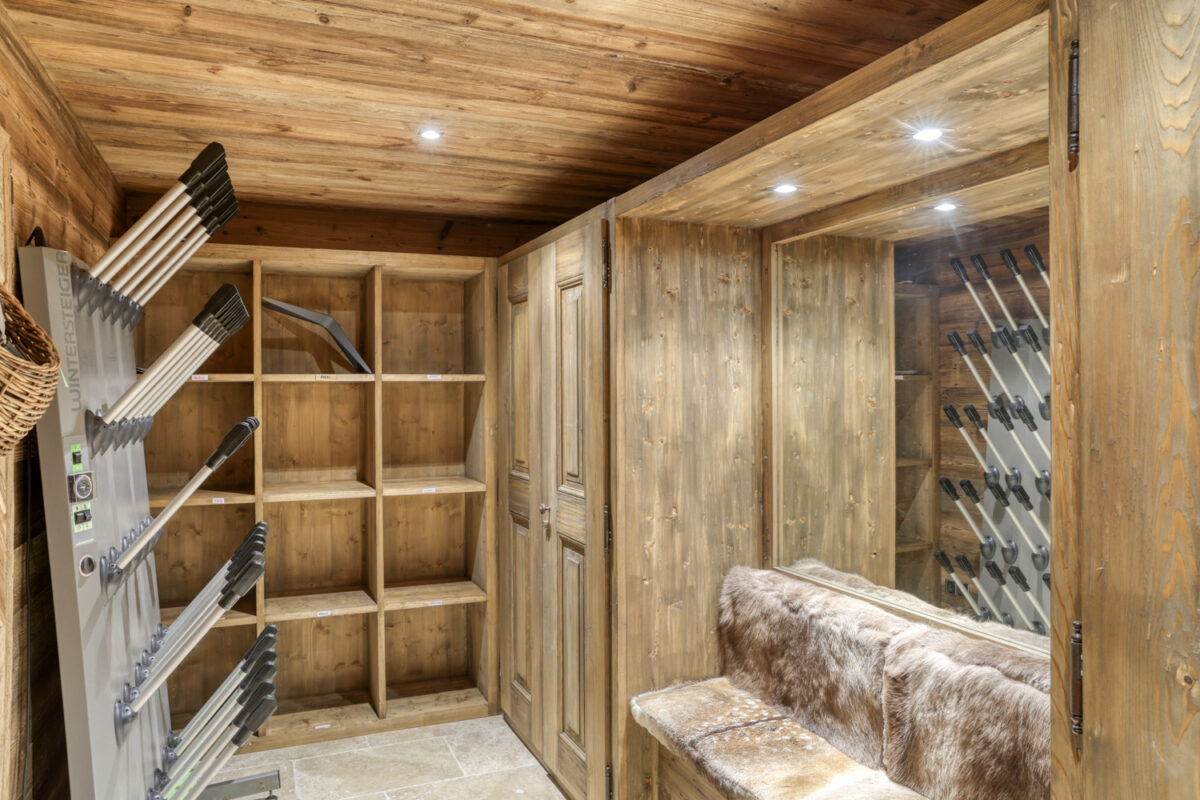 > Garage with ski storage and boot heaters