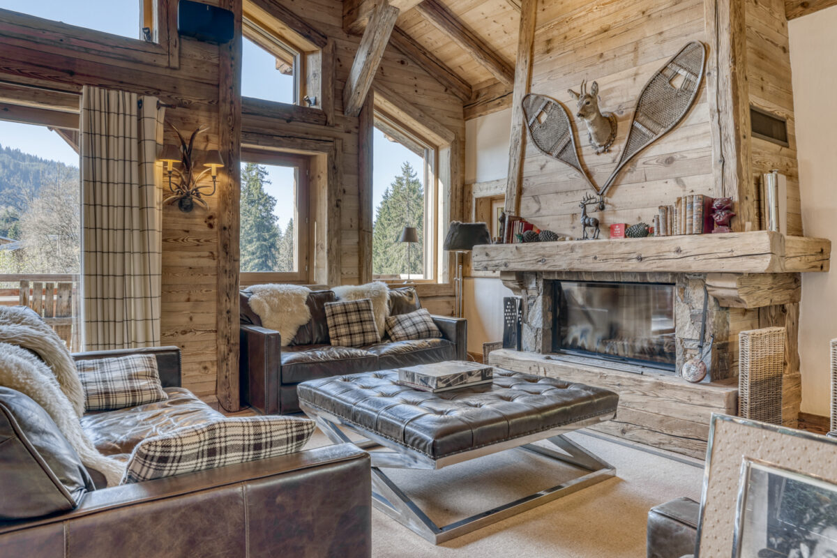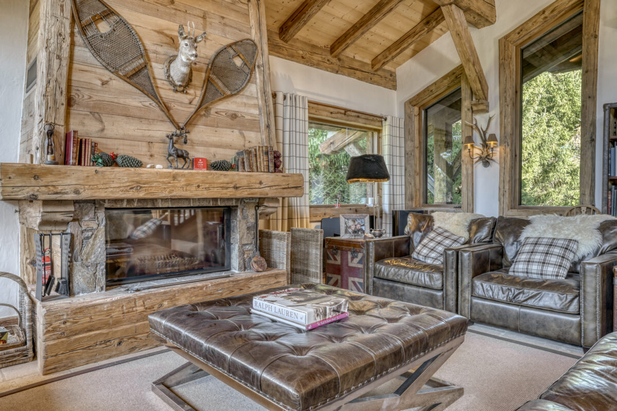 > Fireplace lounge, access to balcony overlooking Rochebrune