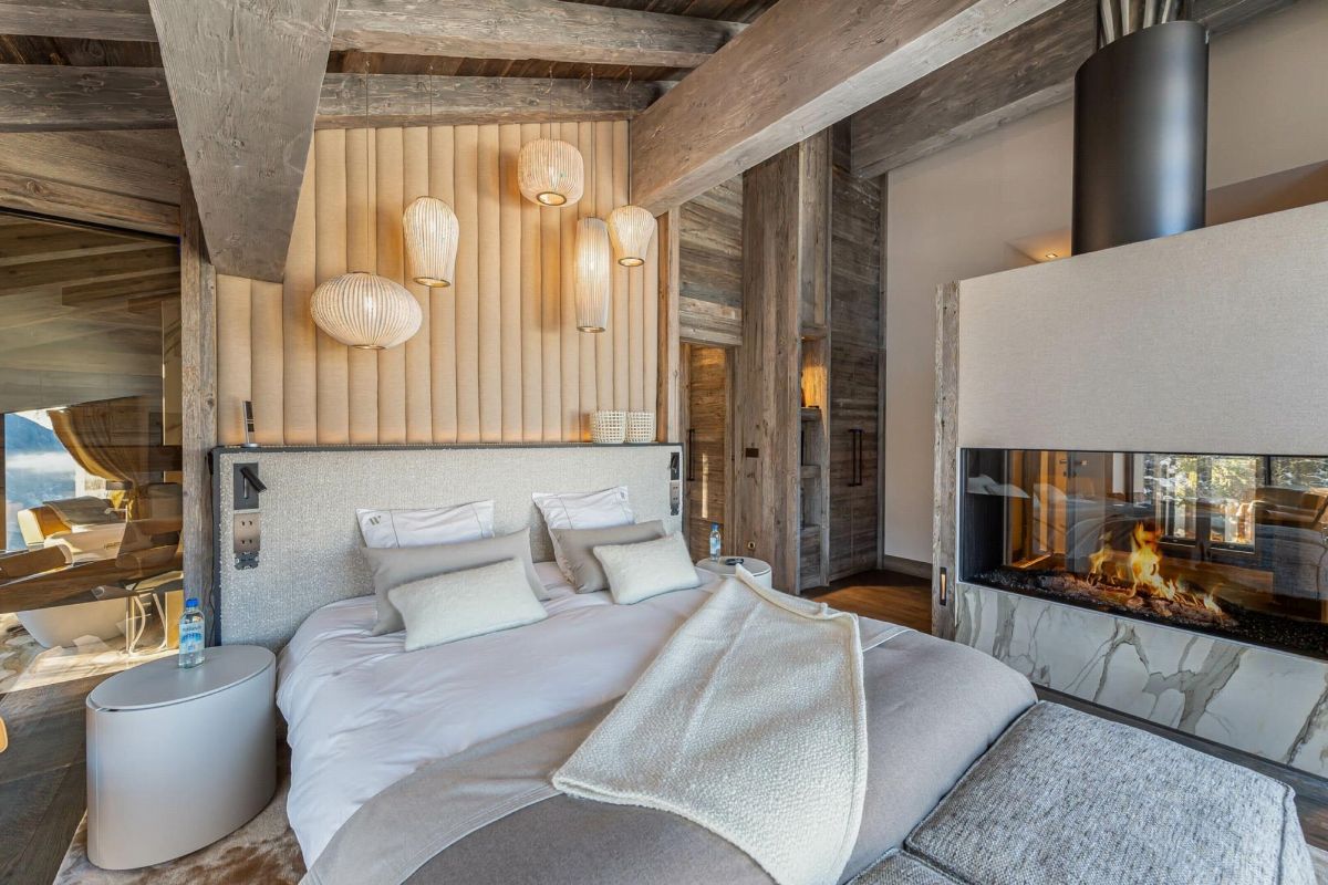 > Chambre master n°5 : Lit double, TV, cheminée, balcon, salle