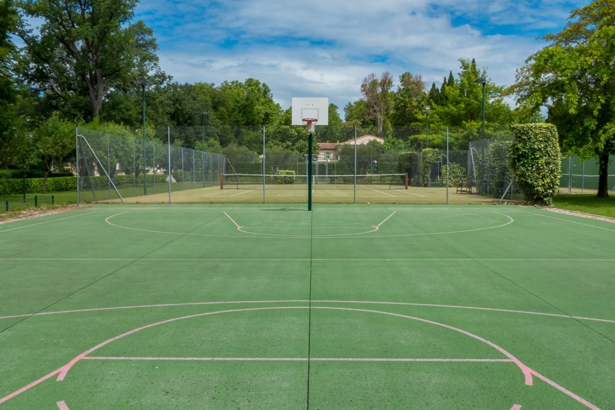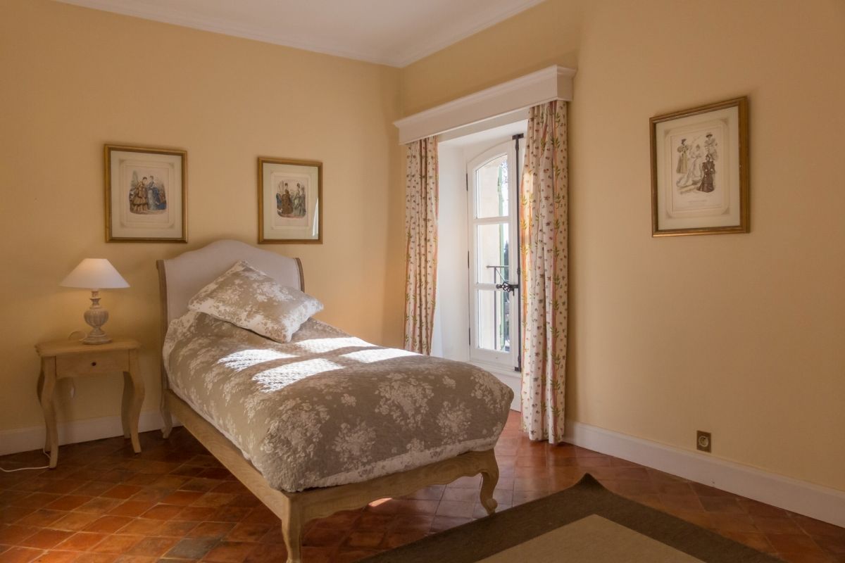 The estate is divided into two different sections- the Château and the Farm. Stretching over an area of 850 sq. meters, the Château is highlighted by its 18th century character combined with 21st century ammenities. The Château boasts tasteful European and Provencal antique furniture and art pieces. The space incorporates 3 Master Suites, 6 other bedrooms- all en suite, the Chapel, a fully equipped professional kitchen, a family kitchen with a combined informal dining room, a separate more formal dining area, reception areas, a library, a laundry room, a wine cellar. Moreover the Chapel has been included in the French Government's register of Inventaire Supplementaire des Monuments Historiques. The farm building standing adjacent to the Chateau expands over 950 sq. meters and emanates opulence with its cloisters, various seating areas, lush lawn, budding olives and agrums trees, jasmine clad walls and a fountain. The farm features seven well appointed en suite bedrooms, and a covered parking. Furthermore the Farm includes additional facilities such as a gym room and a squash room.