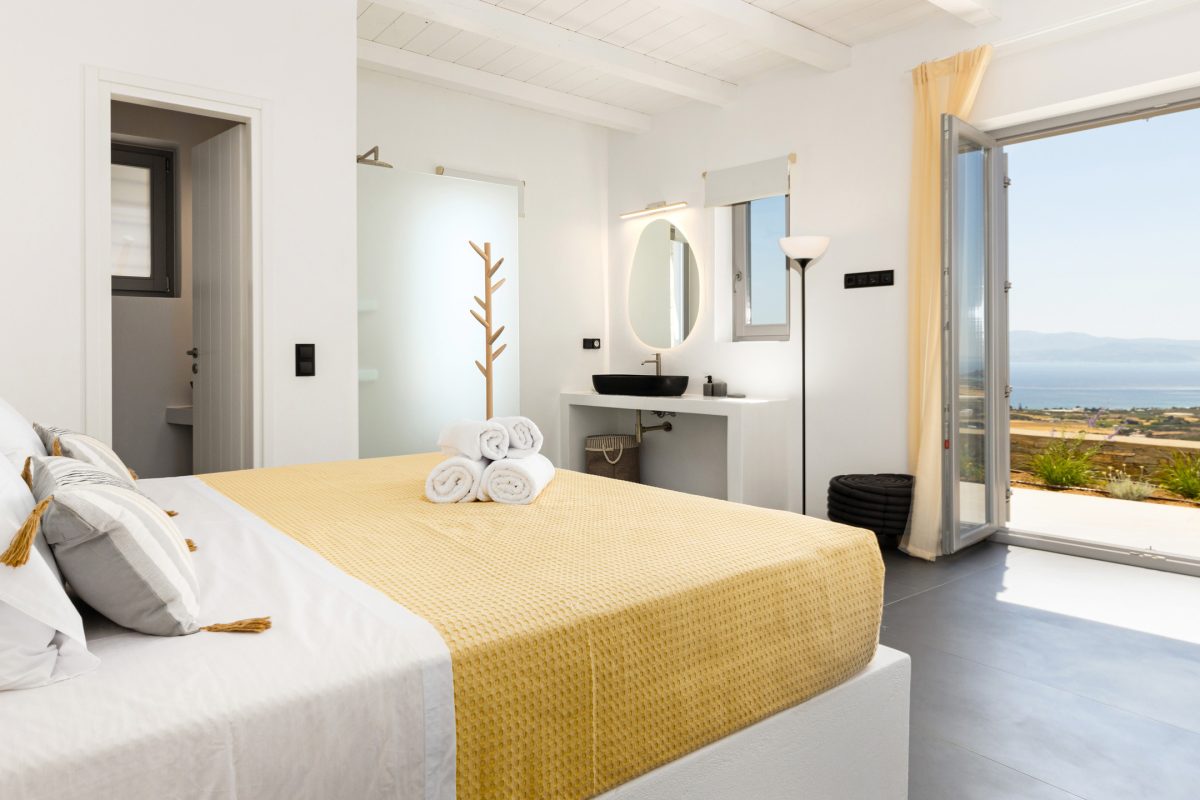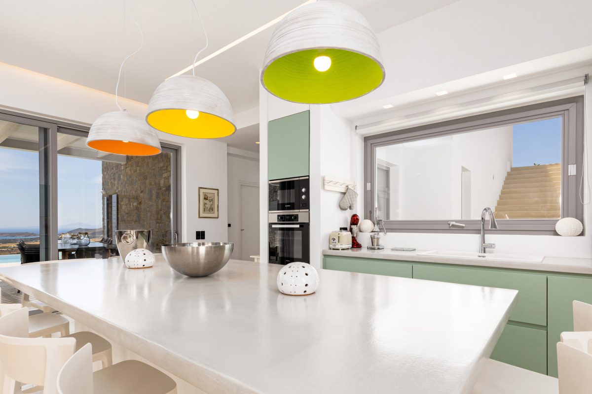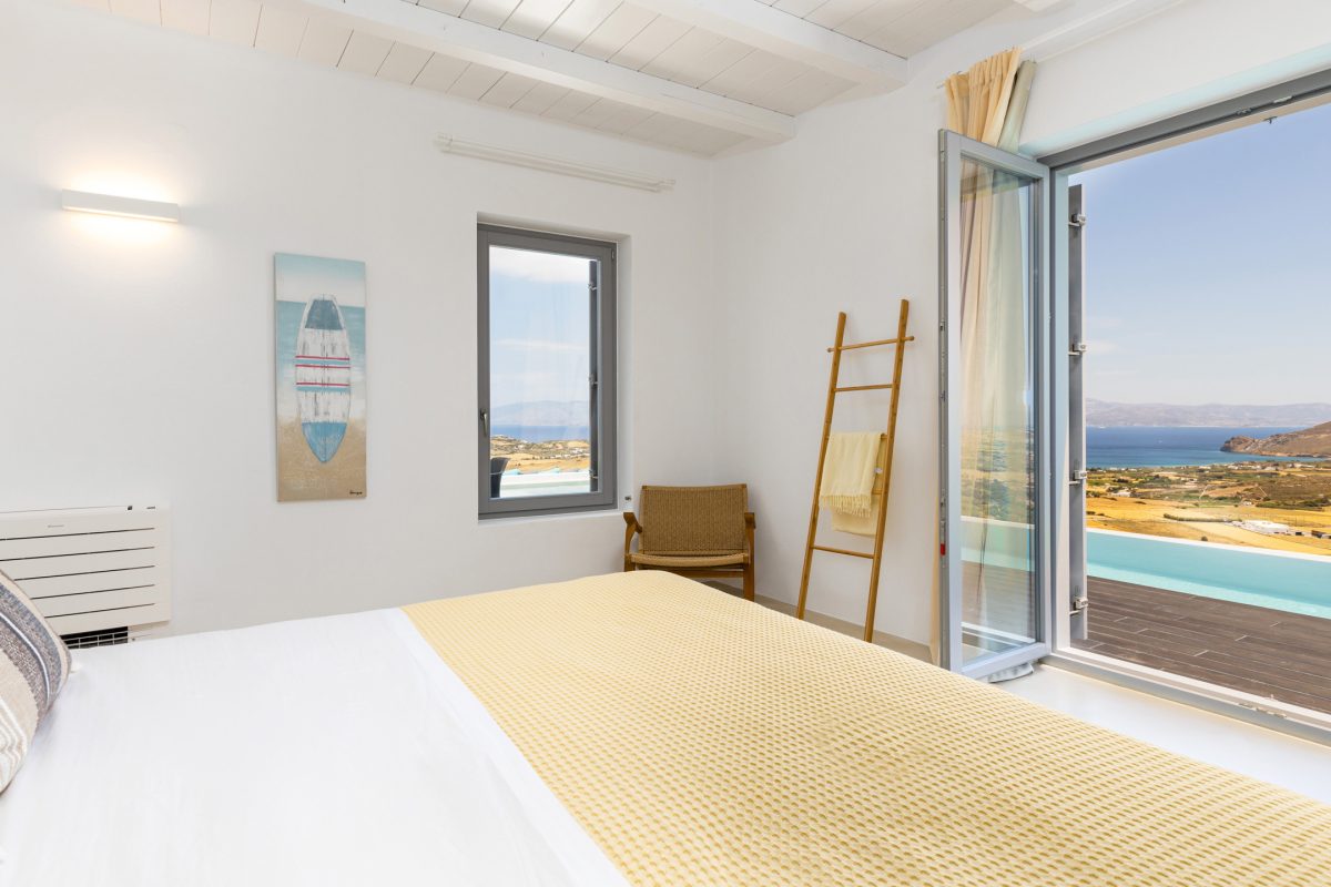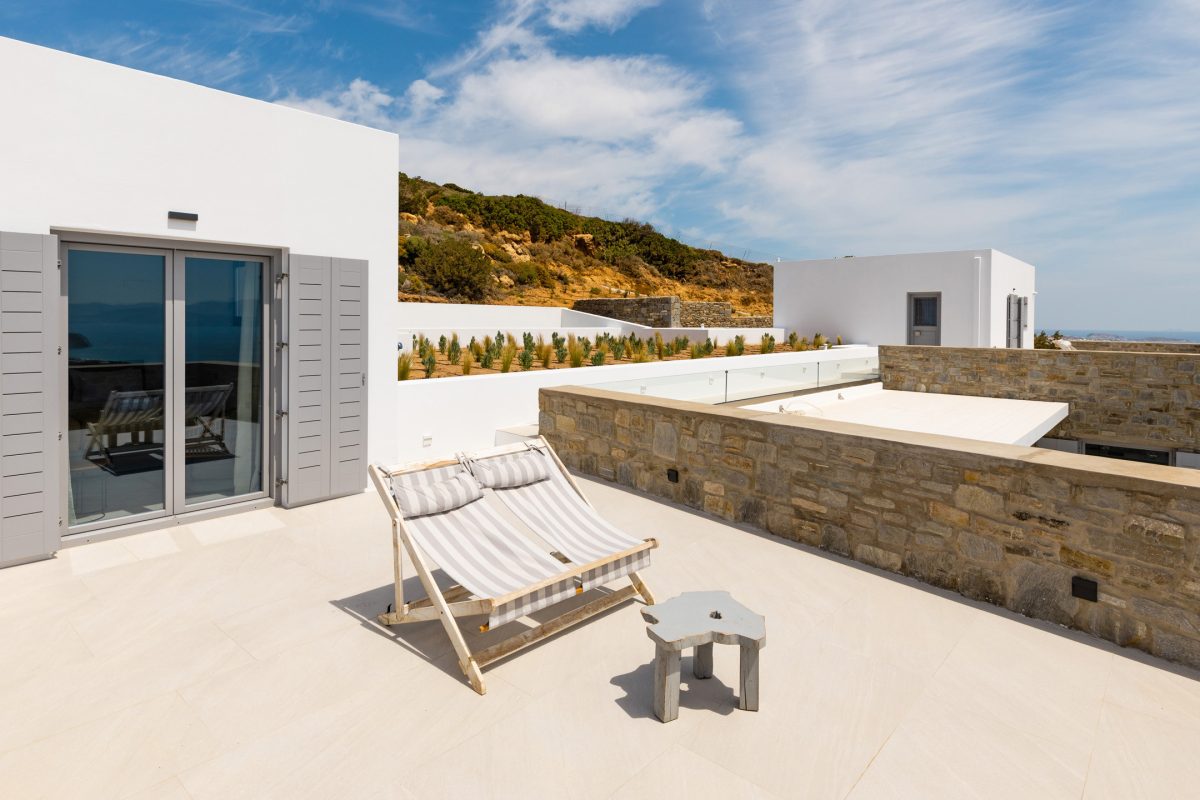 Villa Chiaro Di Luna is a modern villa located in the Kostos area, offering excellent privacy and a stunning panoramic view of the countryside below, stretching out to the sea and the island of Naxos in the background. Some popular beaches, such as Tsoukalia and Santa Maria, are easily accessible within a few minutes by car, as is the lively town of Naoussa, filled with bars, restaurants, and shops for every taste.