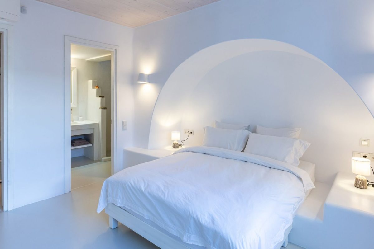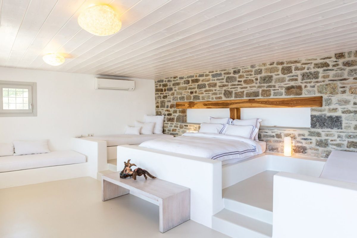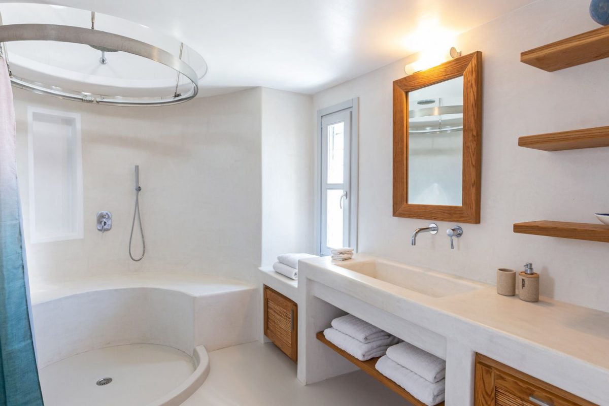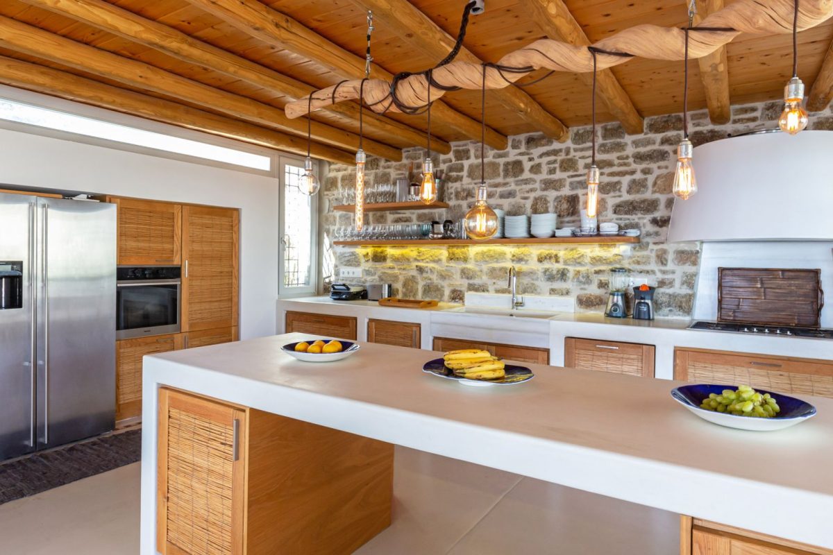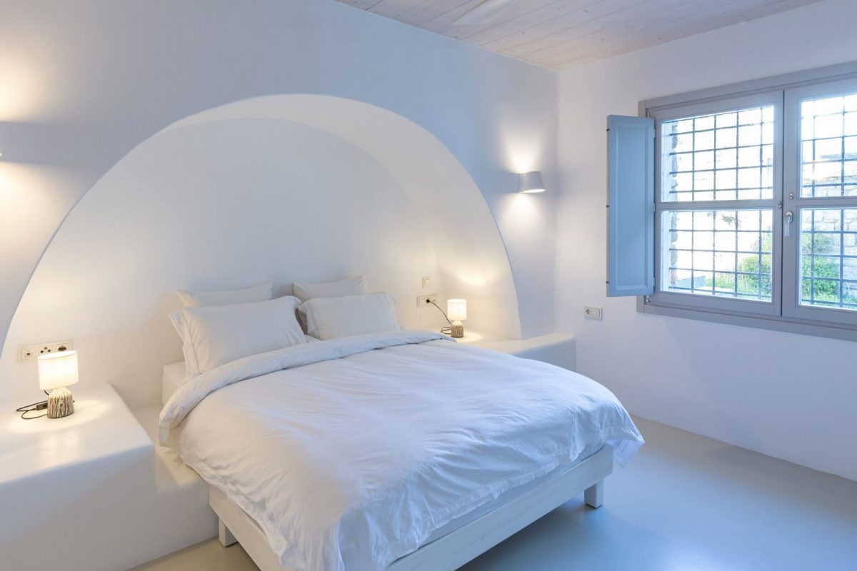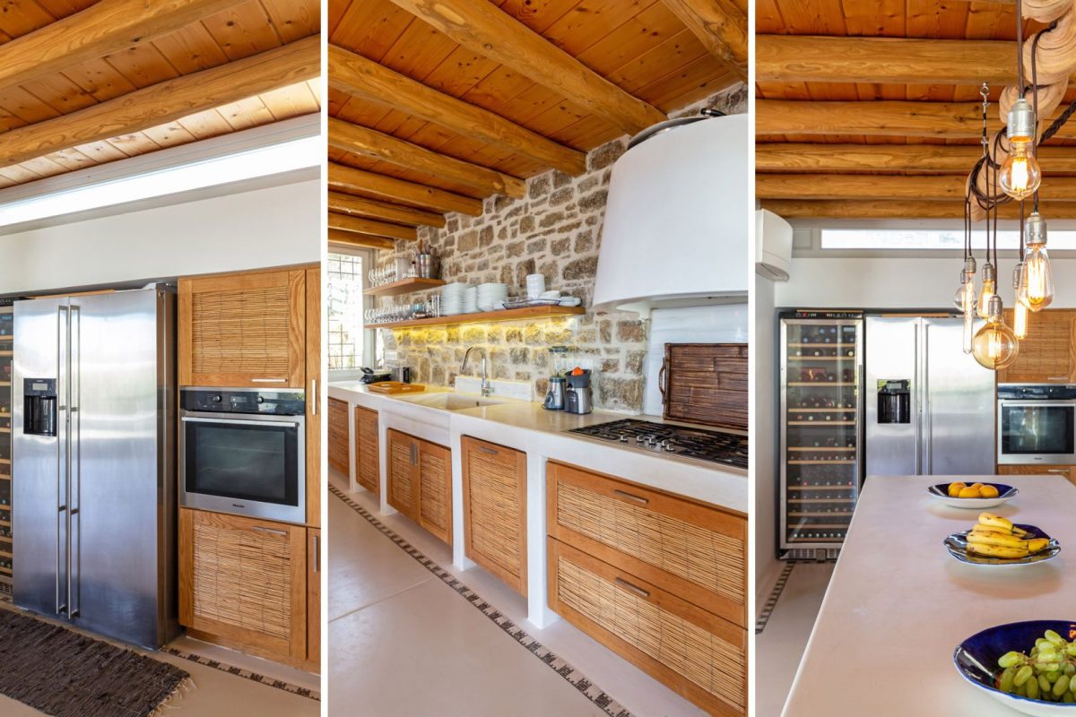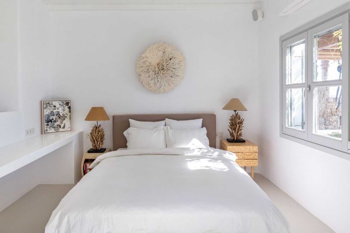 Inside, the villa is characterized by a clean and occasionally traditional style. The common spaces and all the rooms are comfortable and well-furnished, with carefully integrated technological amenities, without unnecessary excess or extravagance. The environment is consistently fresh and inviting, with a predominant use of light colors and natural materials.