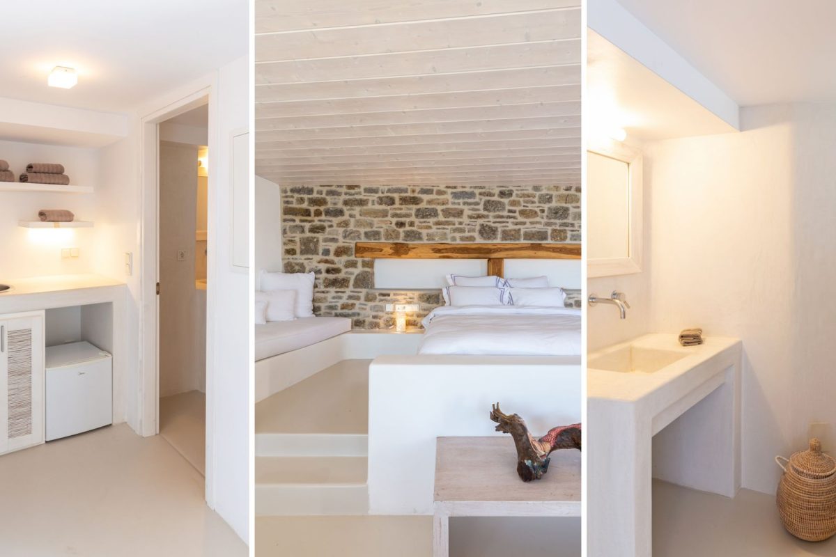 The outdoor areas are well-designed around the attractive irregularly shaped infinity pool. Various relaxation zones are scattered throughout, perfectly furnished for guests' comfort, including a pleasant shaded bar area under a custom-made tent. The lower level of the property features one of the most intriguing rooms available, with a staircase carved into the rock that leads to the sea, where a small dock and a couple of sun umbrellas welcome lucky guests.