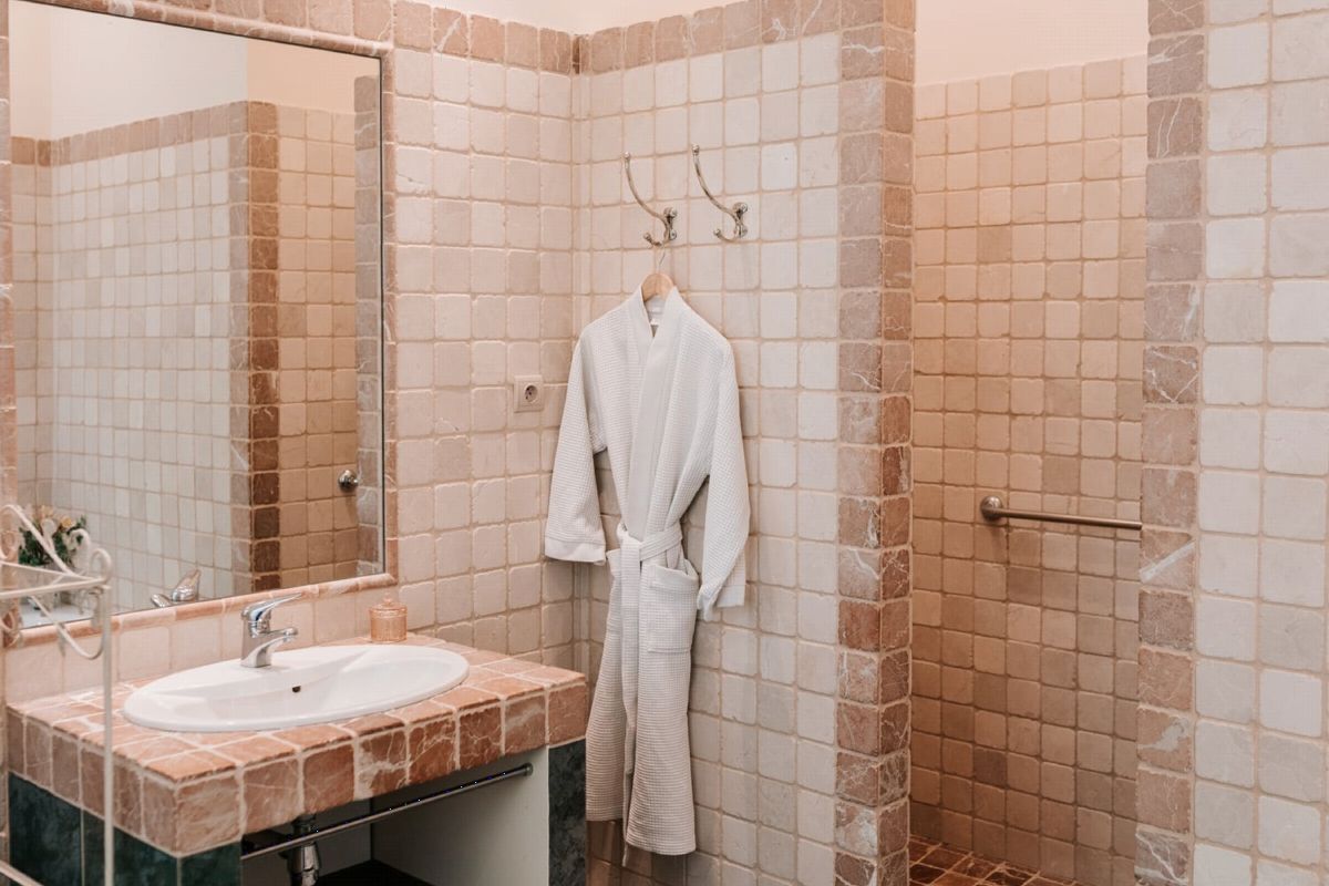- Bathroom with a shower and toilet shared for bedrooms 6 and 7