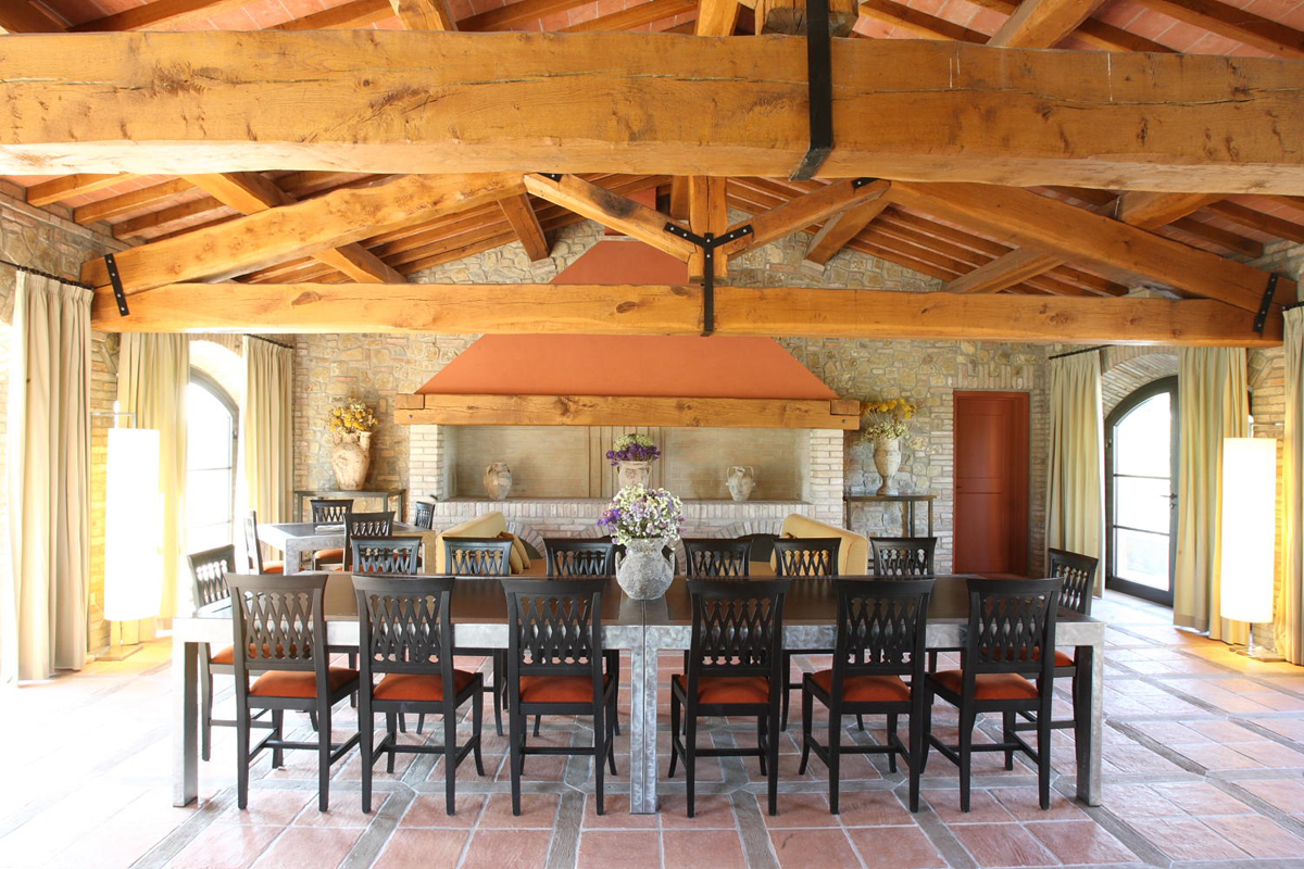 Spacious living areas with high ceiling and an airy atmosphere make this Villa a perfect place for large gatherings. Restored to its original Tuscan form and beauty, the interiors have an Etruscan inspired theme.