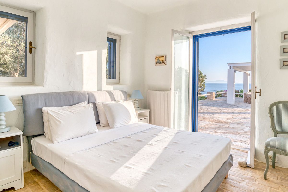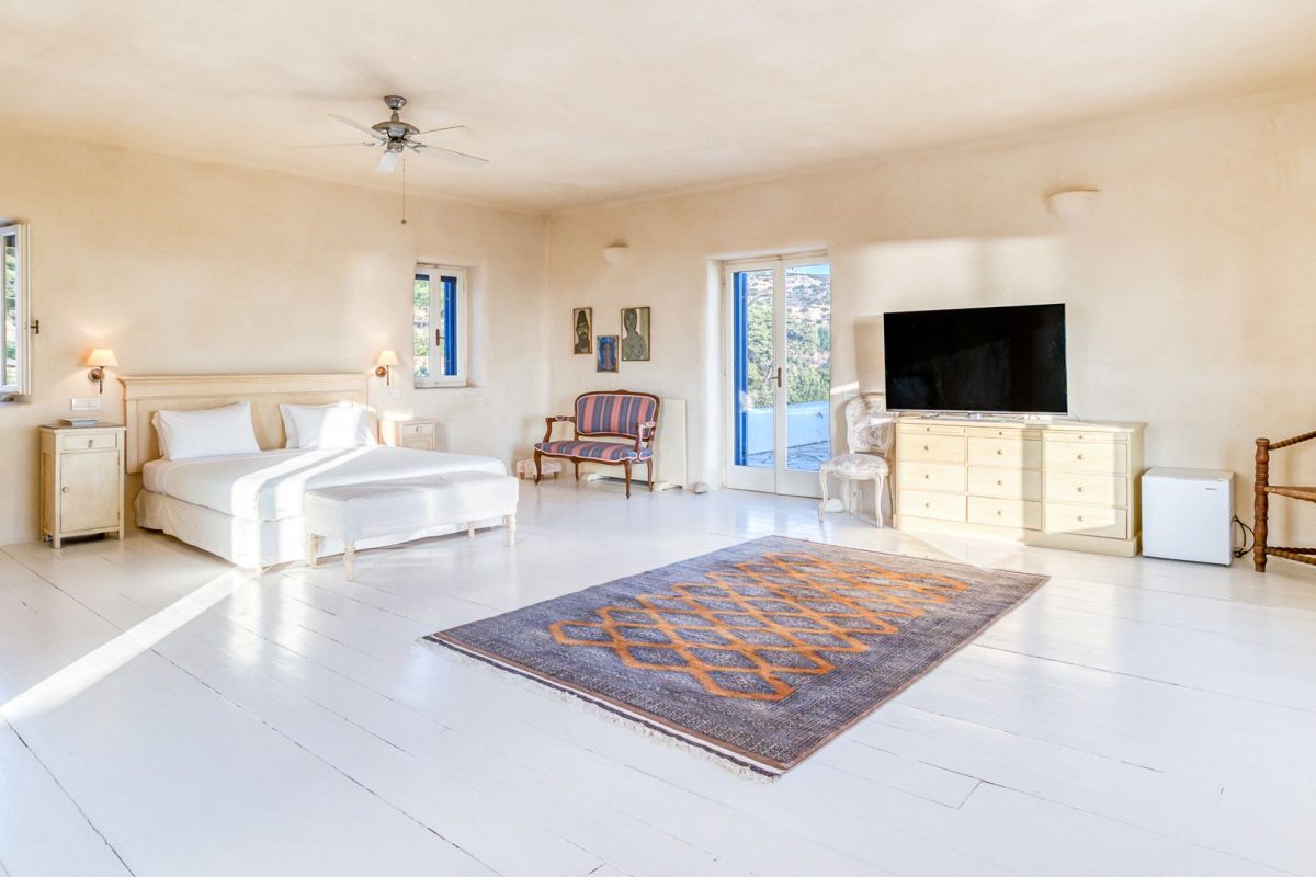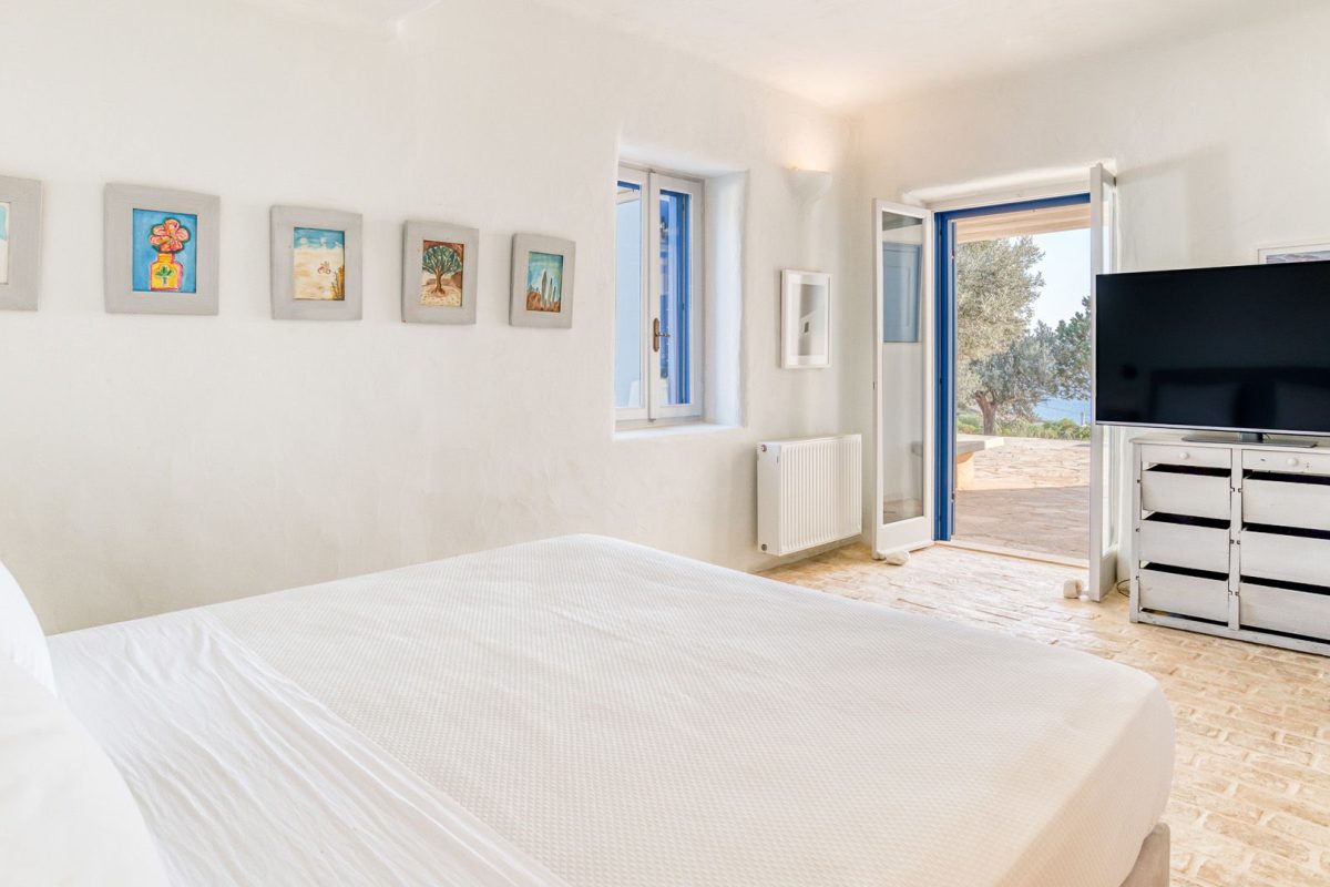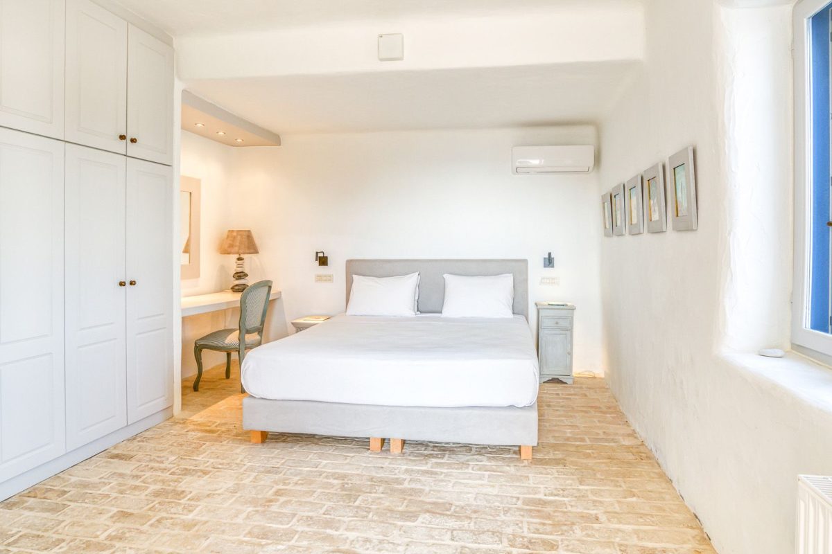 Villa Farangas is comprised of five bedrooms, each with ensuite bathroom. The large master bedroom is located on the upper level and boasts a private terrace, allowing guests to take advantage of the amazing sea views. Three double guest bedrooms are located on the entrance level with all three having outdoor access to the pool and sea views. The fifth bedroom enjoys independent access from the main house. Resulting from thoughtful design, guests are provided with both comfort and privacy.