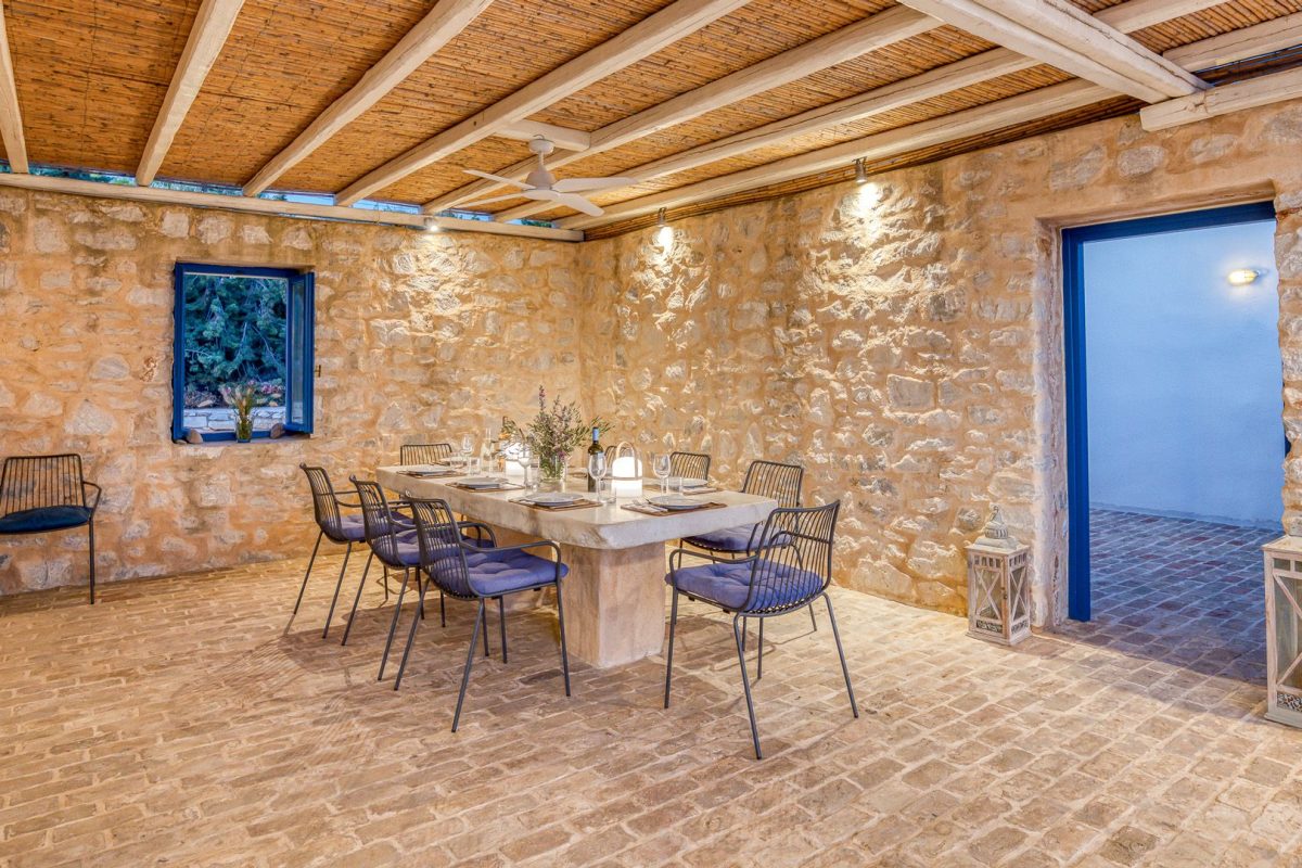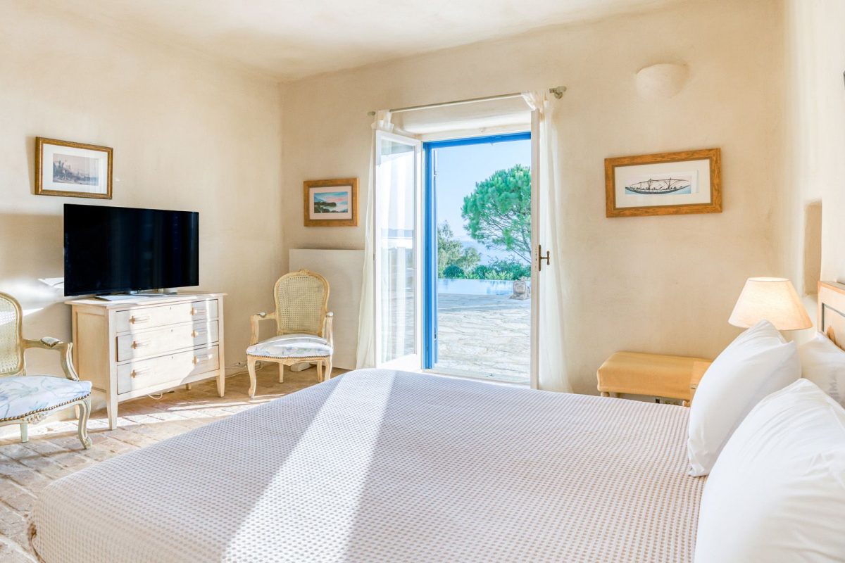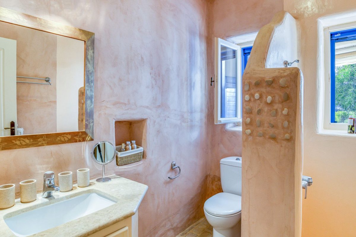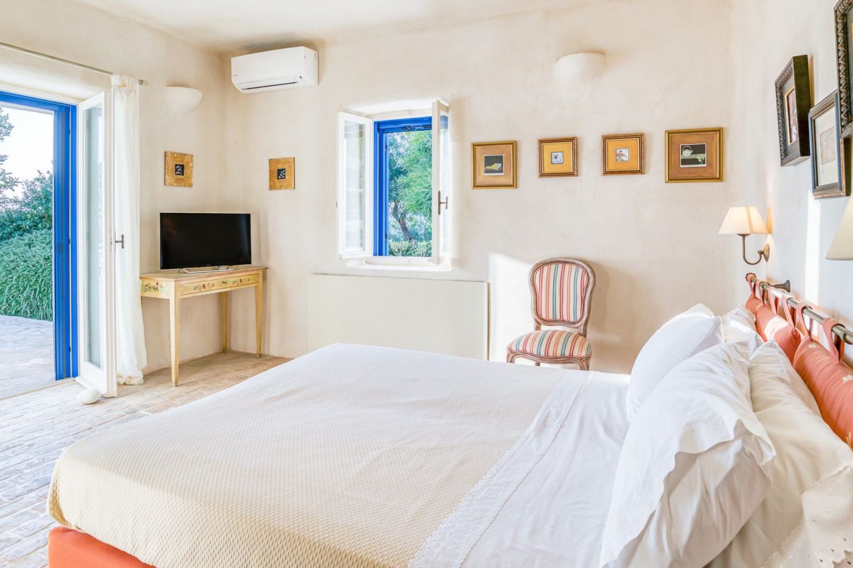 Villa Farangas is comprised of five bedrooms, each with ensuite bathroom. The large master bedroom is located on the upper level and boasts a private terrace, allowing guests to take advantage of the amazing sea views. Three double guest bedrooms are located on the entrance level with all three having outdoor access to the pool and sea views. The fifth bedroom enjoys independent access from the main house. Resulting from thoughtful design, guests are provided with both comfort and privacy.