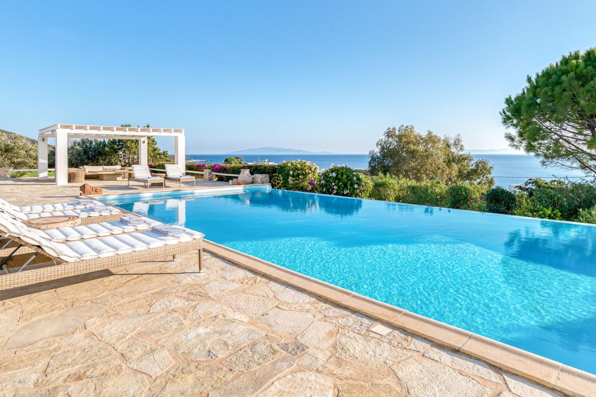With Aegean Sea Views, numerous outdoor entertaining areas, including a large pool, along with being quietly positioned above popular Farangas Beach, guests are sure to enjoy a memorable experience at Villa Farangas.