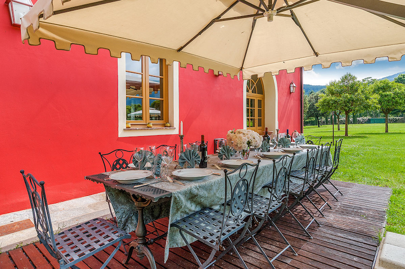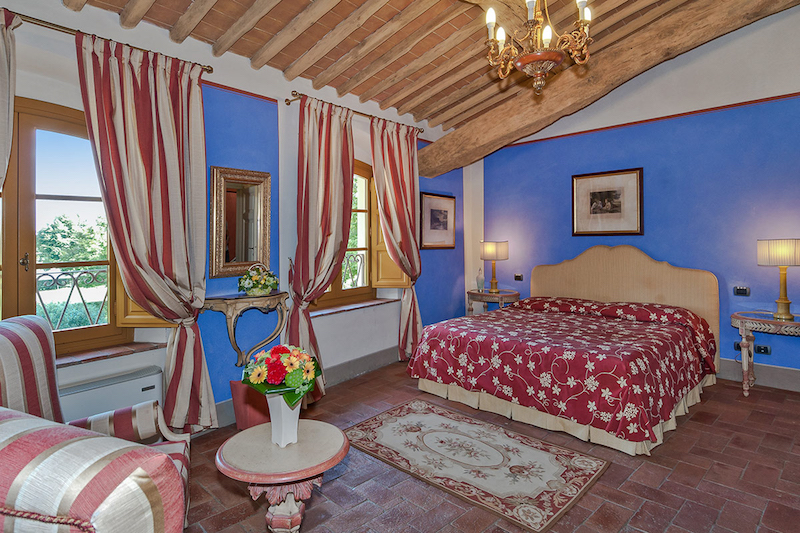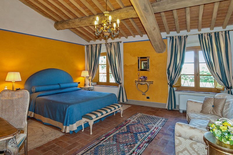 Decorated according to the location, this is a typical Tuscan country villa. This villa is a perfect combination of elegance and easy living. With 6 bedrooms, this villa ensures you that you have a lovely time with a big family or small group of friends. Very intimidate exterior and the lake which is reachable by a bridge, is the ultimate romantic villa.