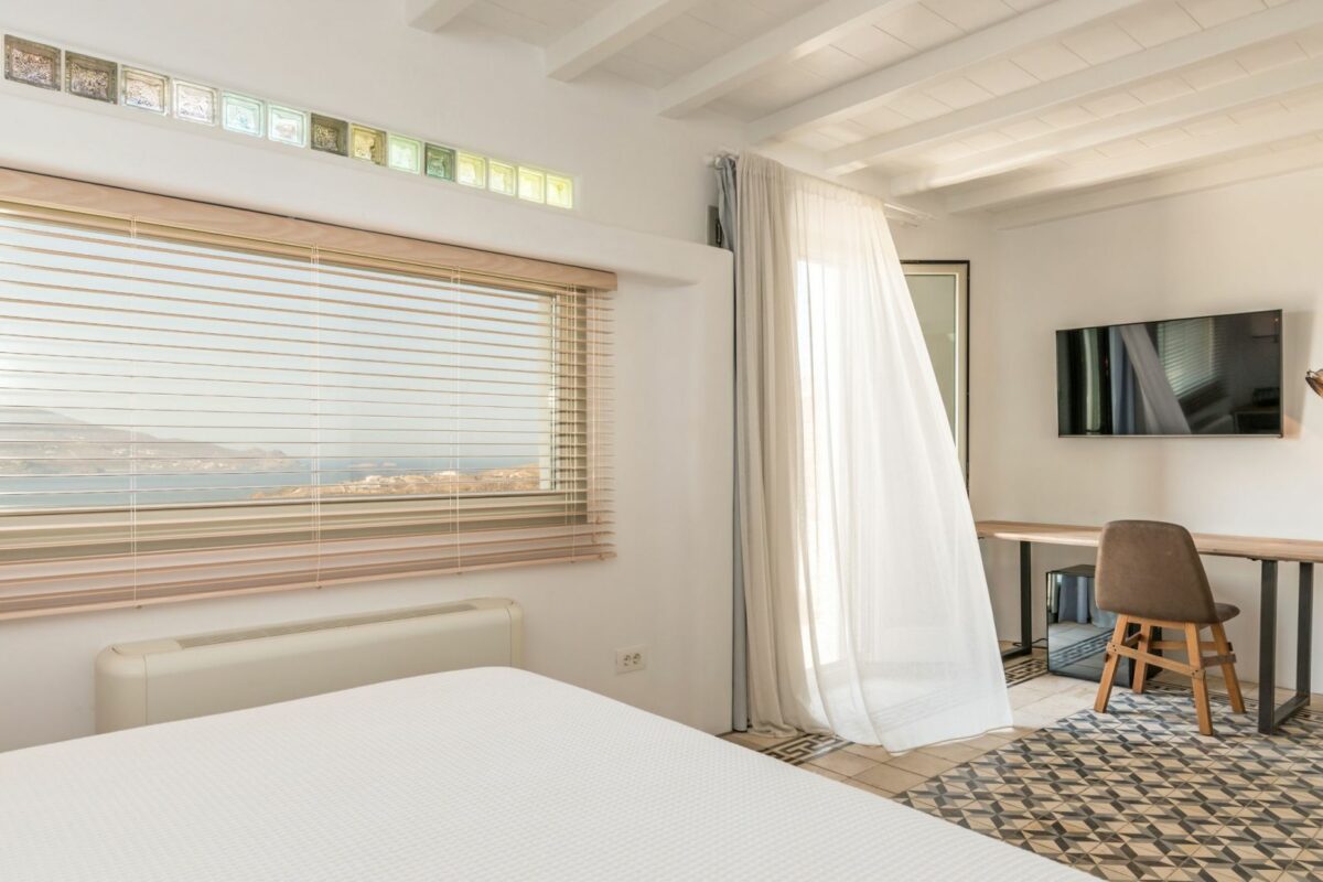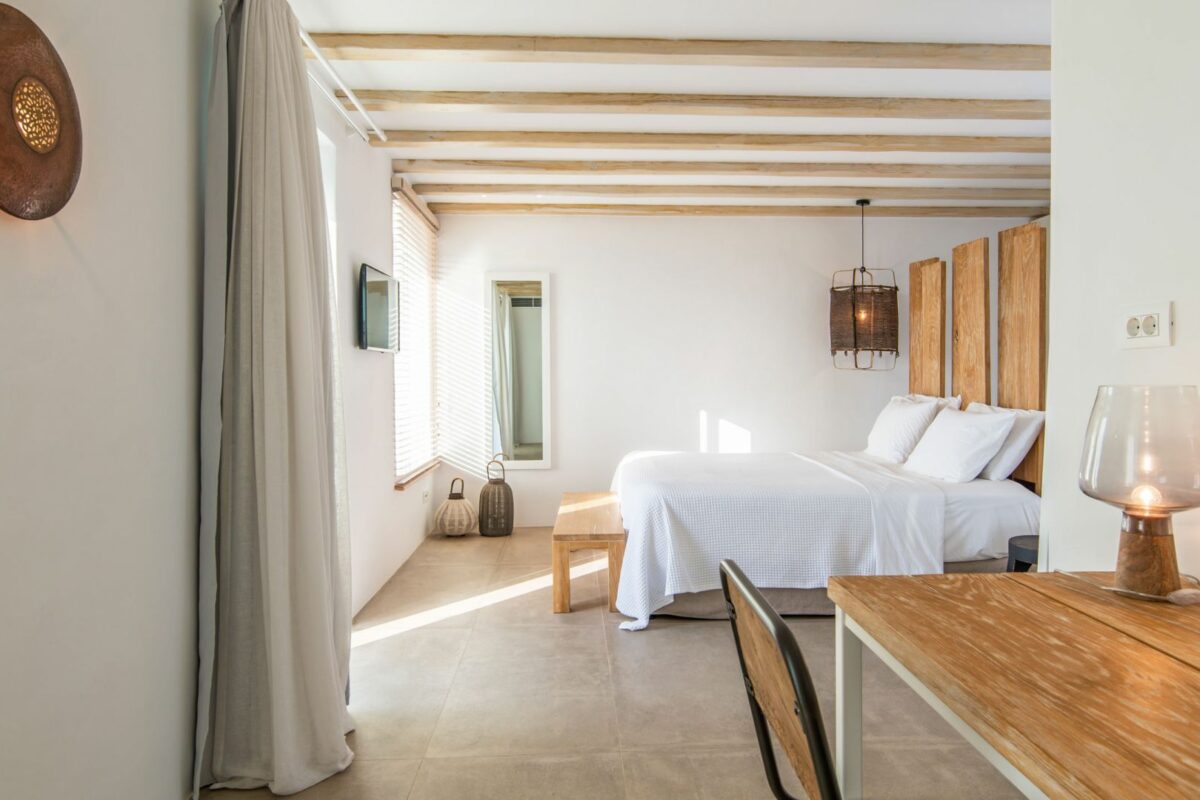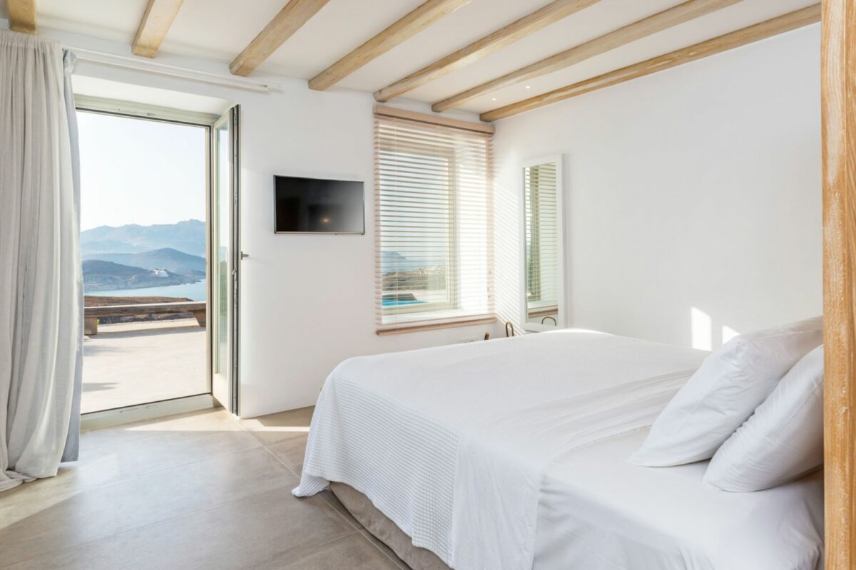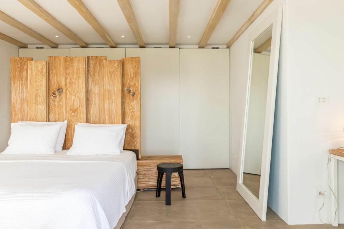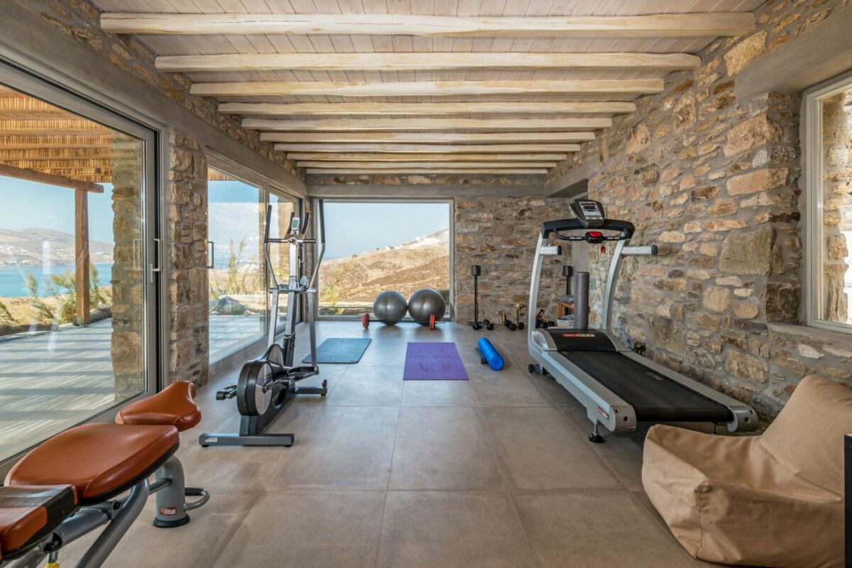A remarkable attention to details is evident throughout the indoor spaces of Villa 9617. Each room is appointed with style, each piece of furniture was carefully chosen to contribute to an airy, elegant atmosphere. Modern amenities and domotics complete the picture, ensuring guests feel both pampered and entertained. For the ultimate relaxation experience a new hammam, massage room and small private gym were added to the property near the lower guest suite. True to Cycladic style the property was built in units, with some bedrooms having independent access for added privacy.