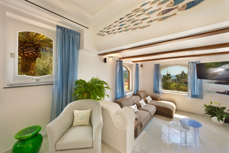 This villa is perfectly located close to restaurants, 30 minute drive from Sorrento and 5 minutes from the beach. Contemporary styled, this home offers stunning views of the sea and numerous attractive amenities, such as a private swimming pool, two panoramic terraces, and a manicured garden.
