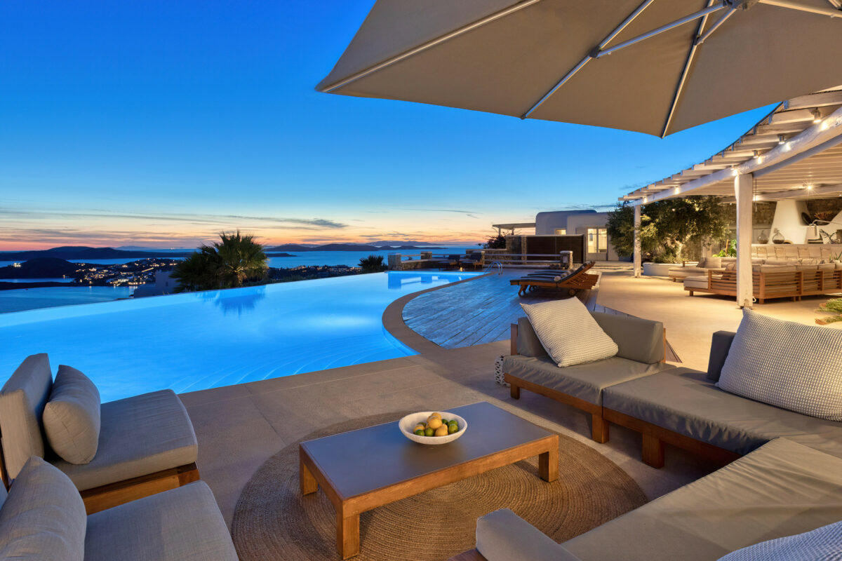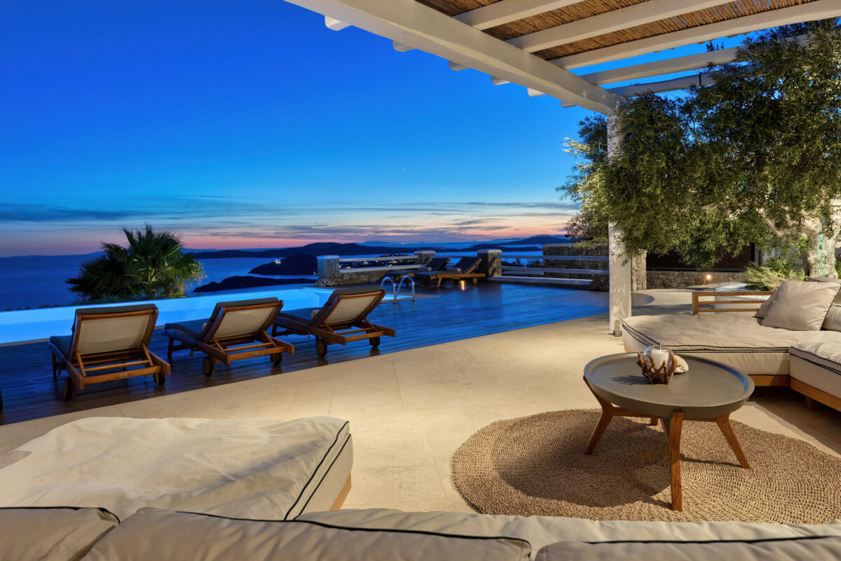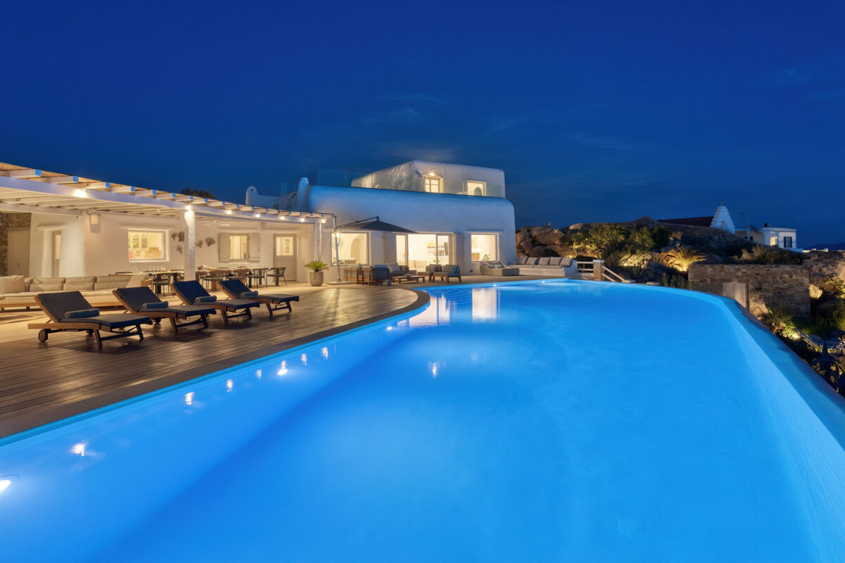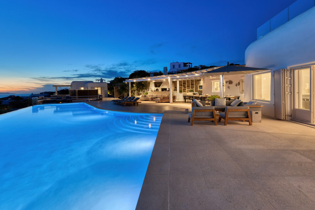Villa Great Mystique is a stunning private property in the exclusive area of Agios Lazaros known for its extensive sea and sunset views. It is a great location to be in as it is close to renown Psarou beach and only a short distance drive to the town.
