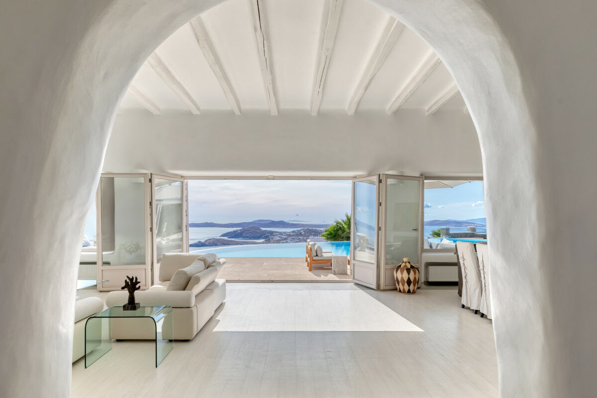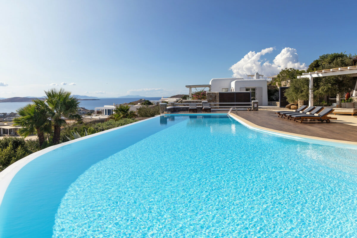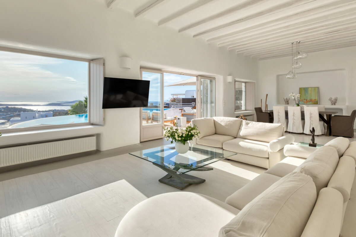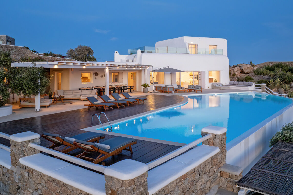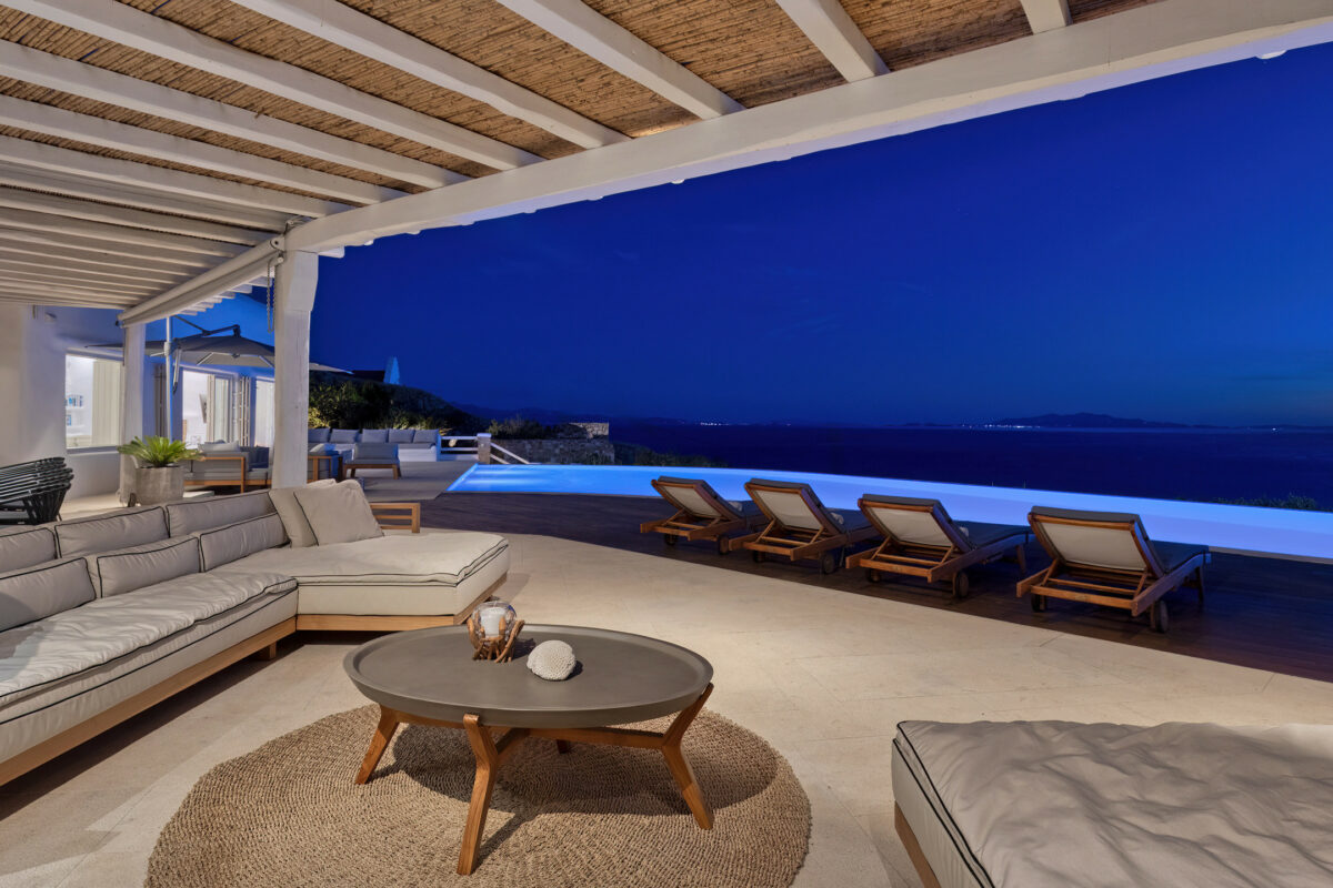 Villa Great Mystique is a stunning private property in the exclusive area of Agios Lazaros known for its extensive sea and sunset views. It is a great location to be in as it is close to renown Psarou beach and only a short distance drive to the town.