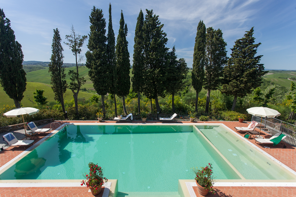 This beautiful Villa is located on a hilltop, offering absolutely spectacular views and creating an atmosphere of relaxation and calmness. The quiet and simplistic countryside of Tuscany helps for a relaxed holiday.