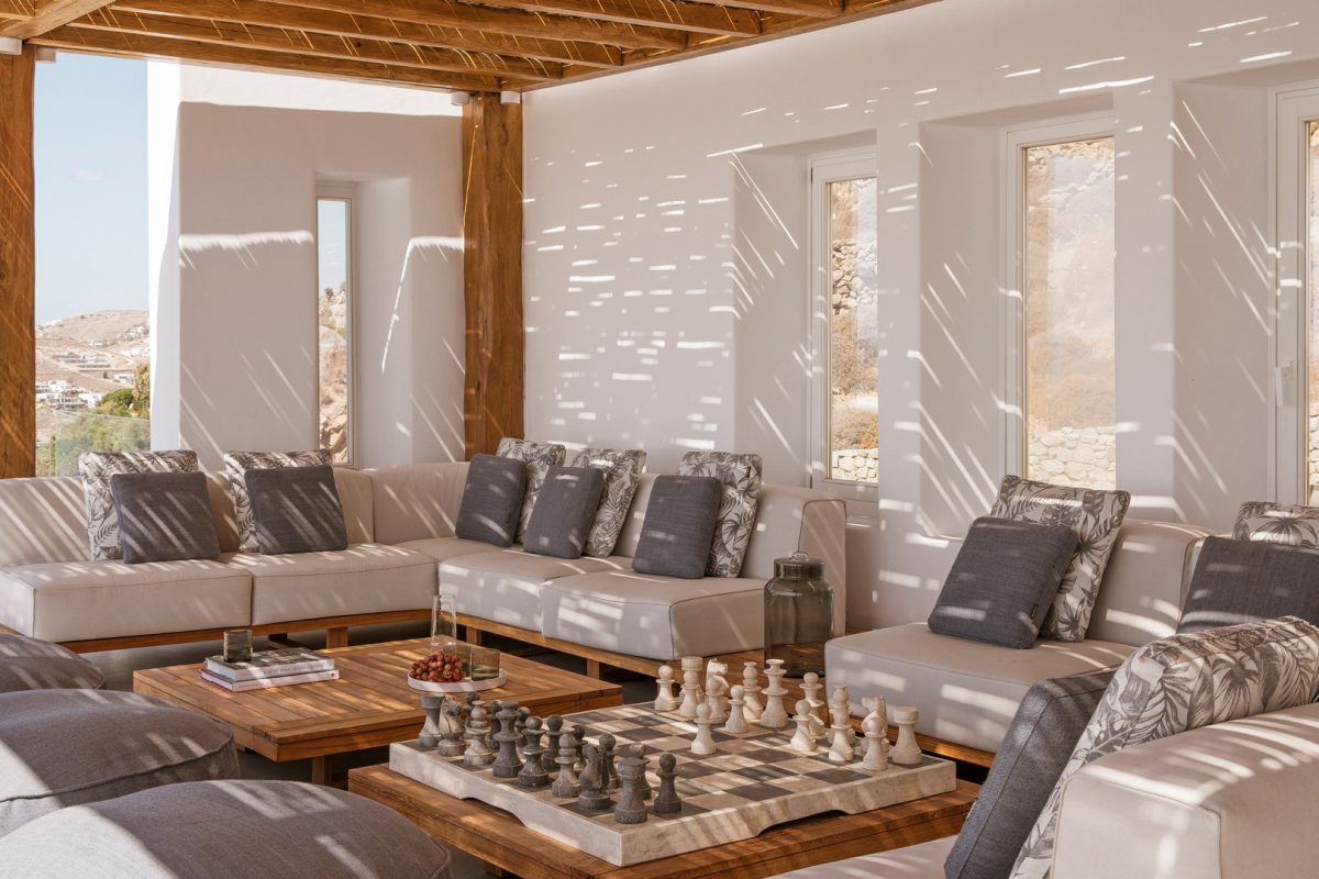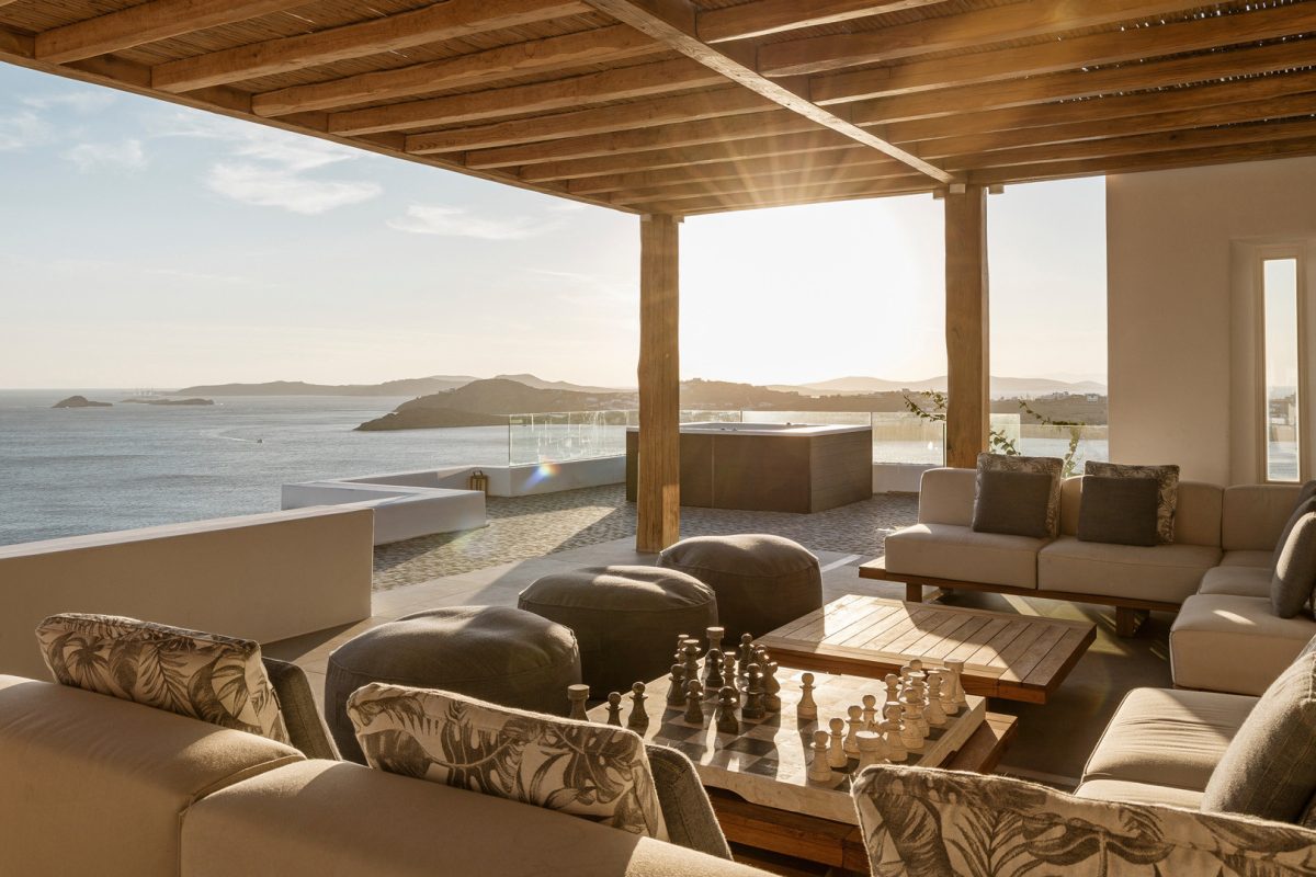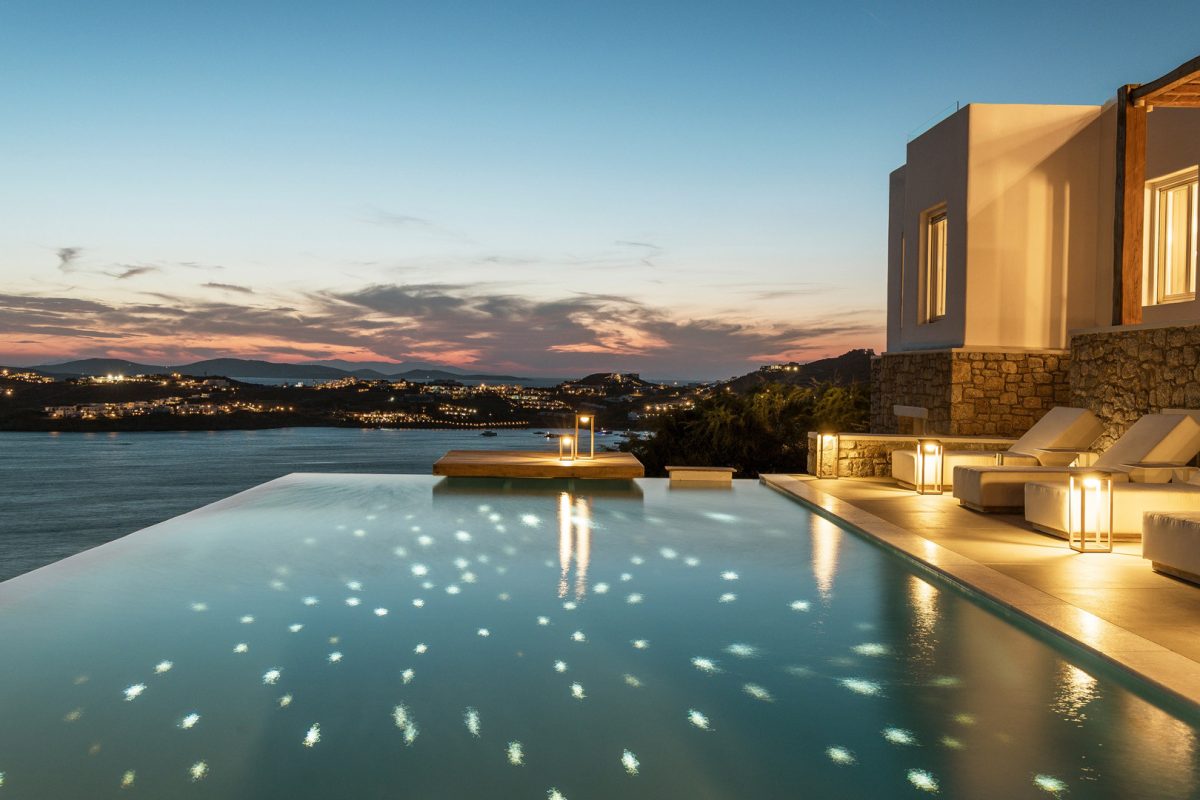 In a splendid location within the prestigious area of Agios Lazaros stands the magnificent Villa Jubilee. From here, the sea view is breathtaking and can be enjoyed from every corner of the property. The location also ensures a reasonable travel time to reach both Mykonos Town and some of the most famous beaches on the island, such as Psarou and Platis Gialos.
