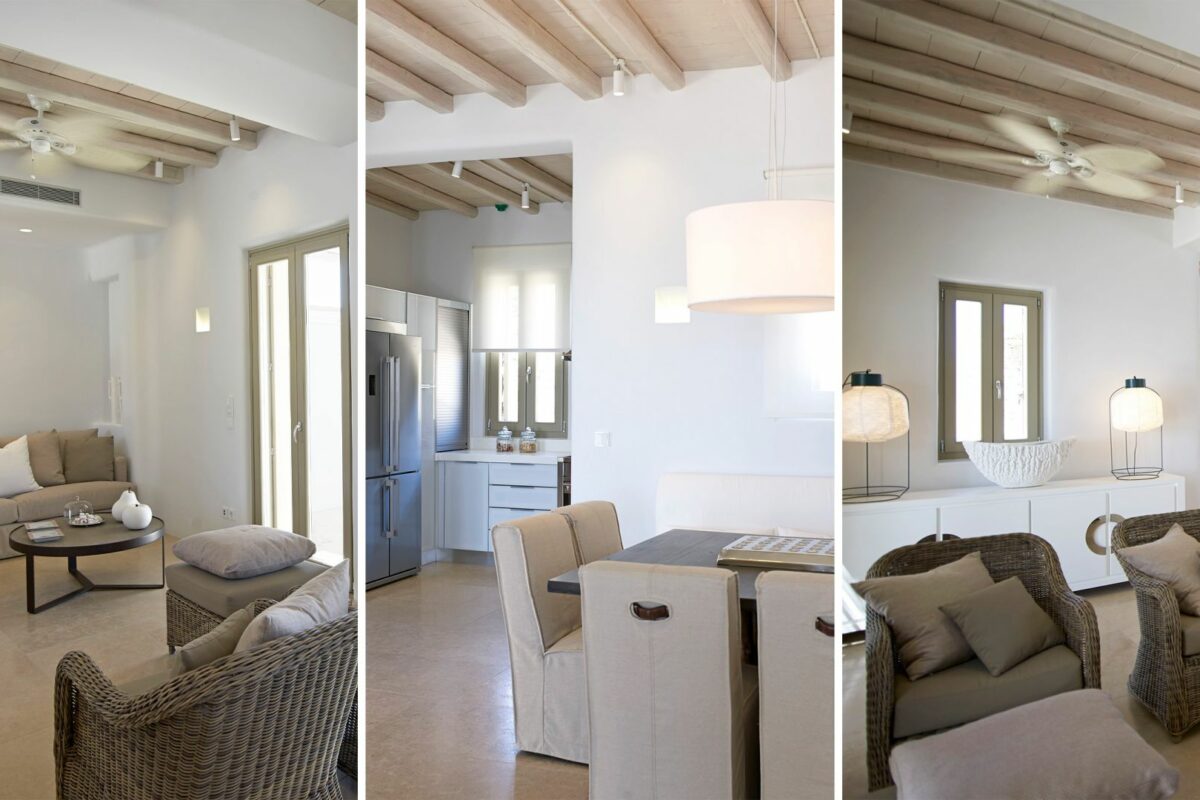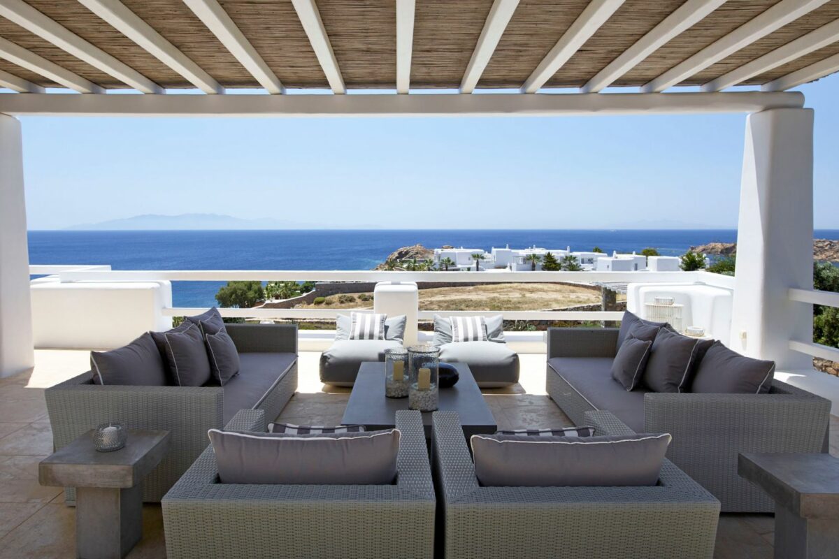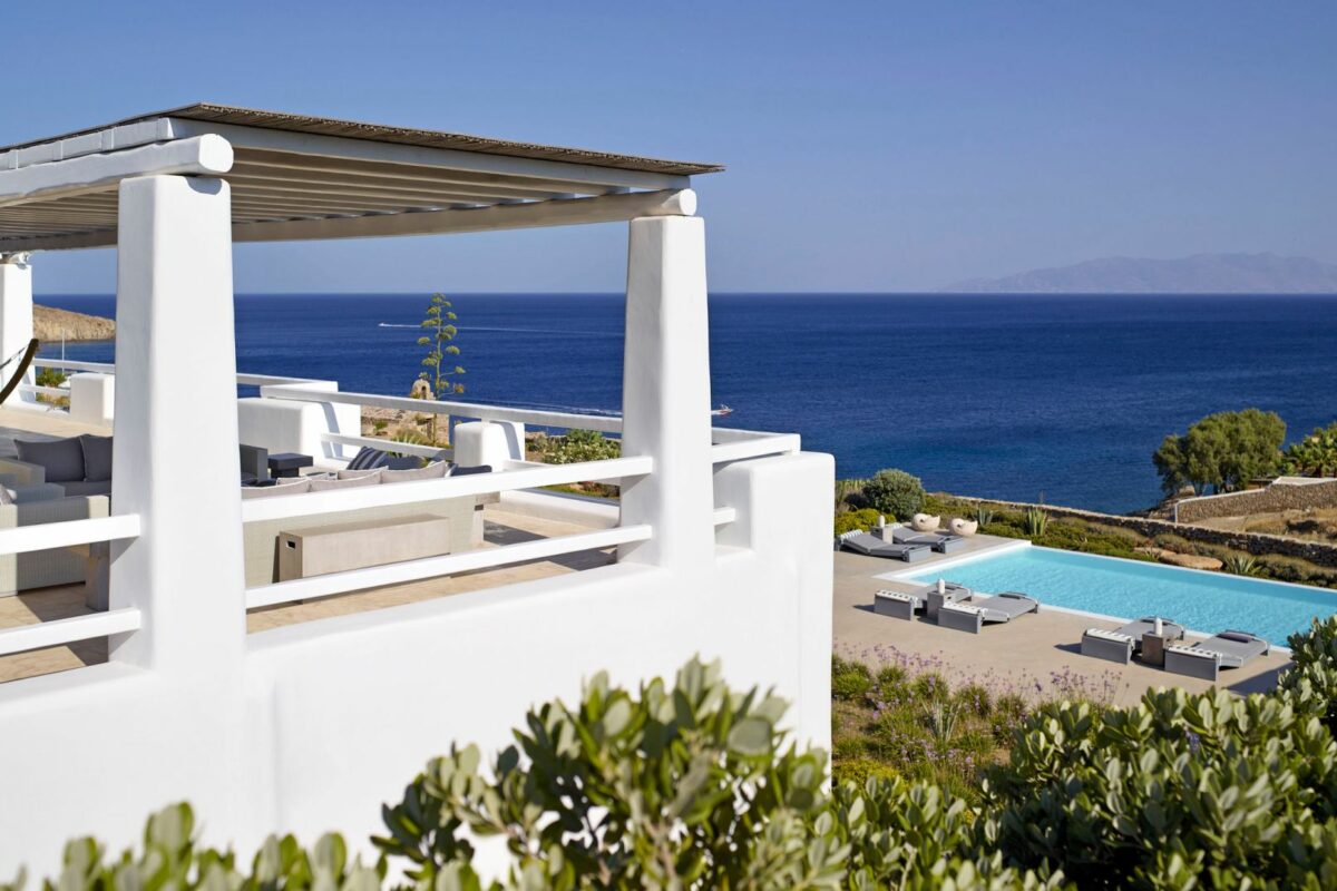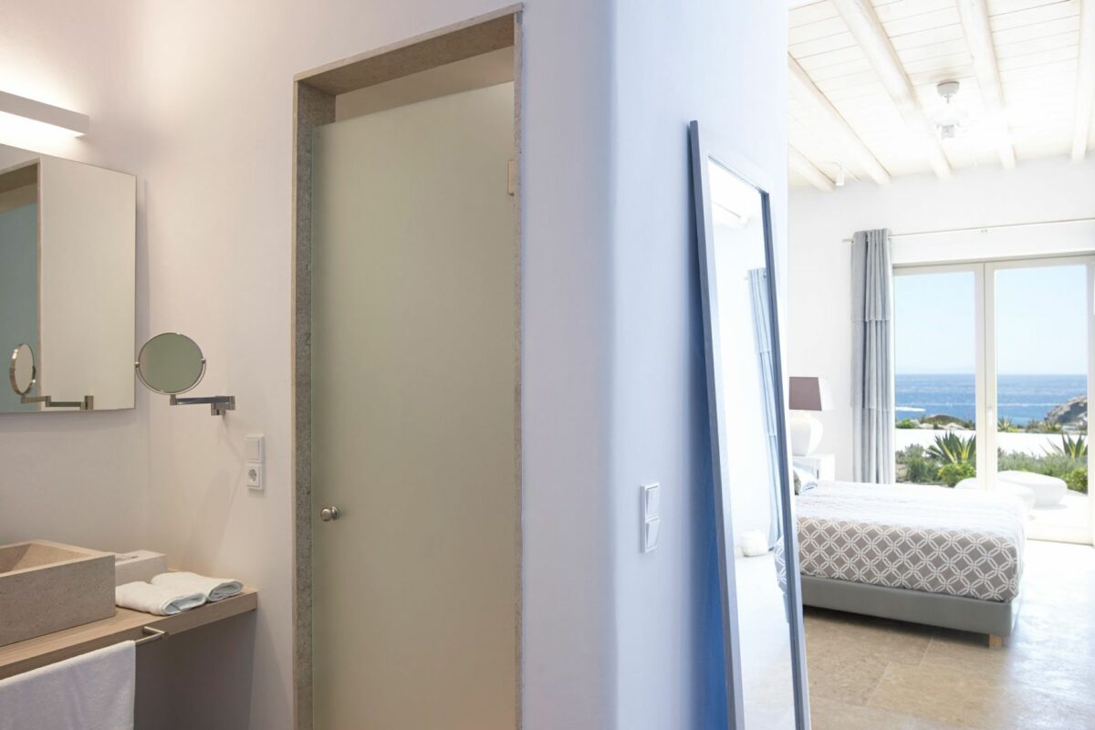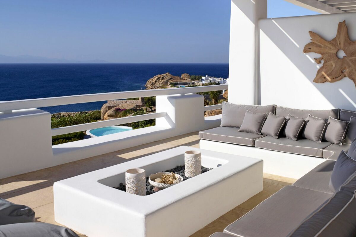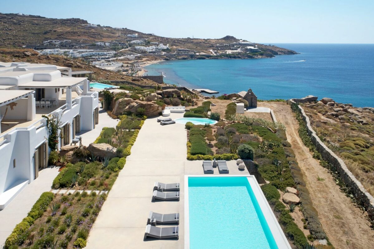 Perched right over the clear waters of the Aegean, Villa Khaleesi finds space as an astonishing private property situated literally in between the beaches of Paranga and Paradise, both easily reachable from the estate. The waterfront location provides extensive views over the sea, all the way across to the neighboring islands of Paros and Naxos, while the southwestern position of the property itself allows guests to be with reasonable distance from Mykonos Town and the most popular southern beaches of the island.