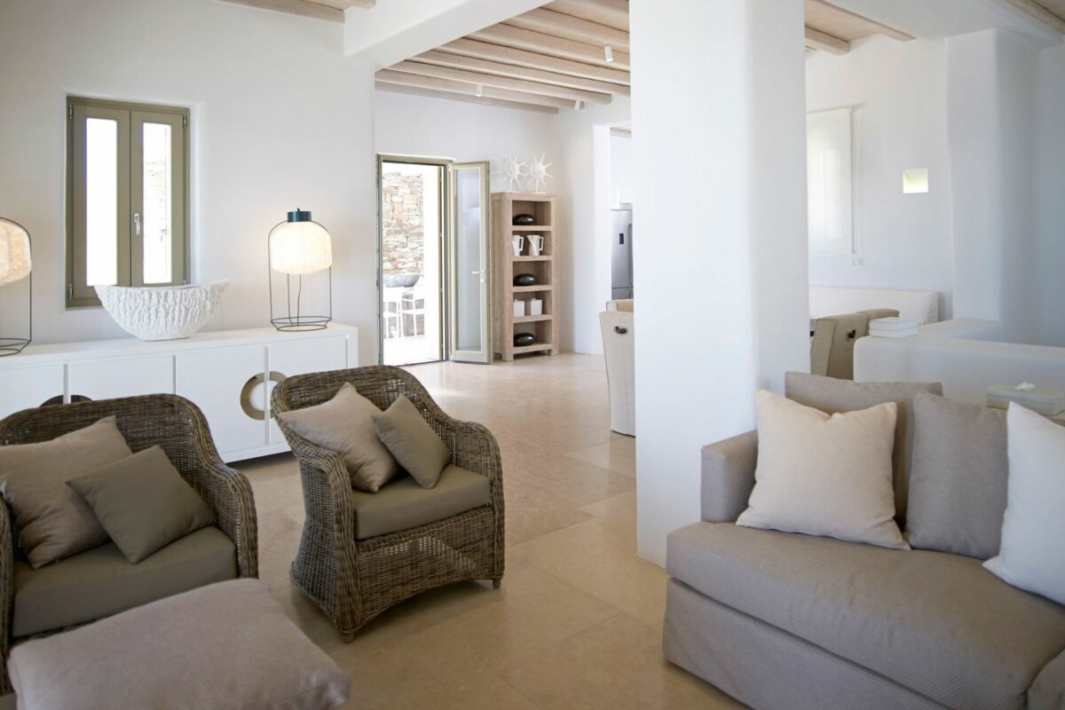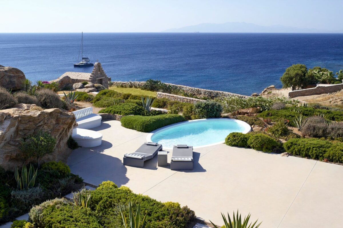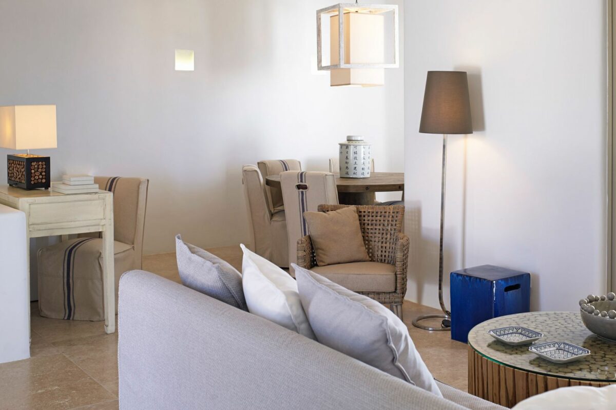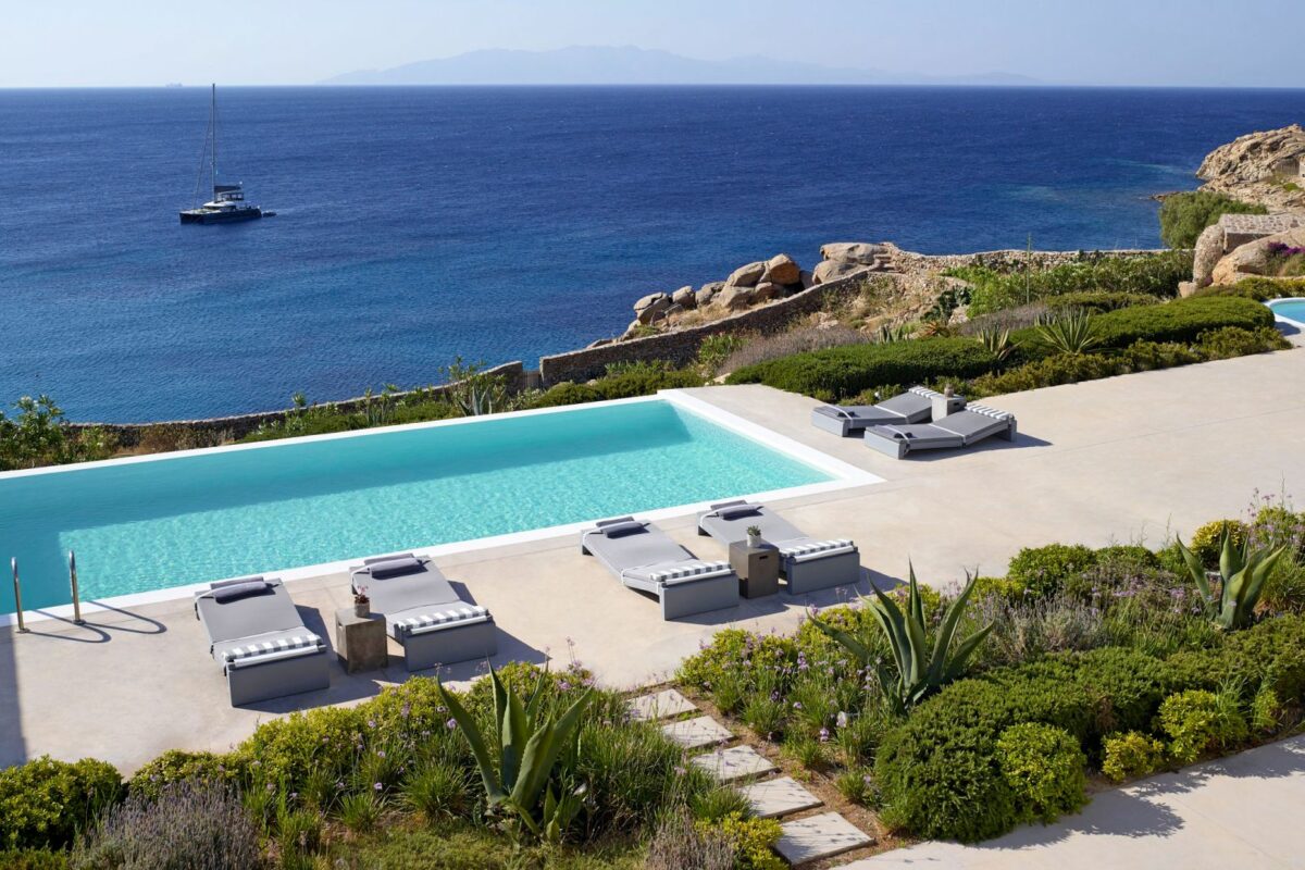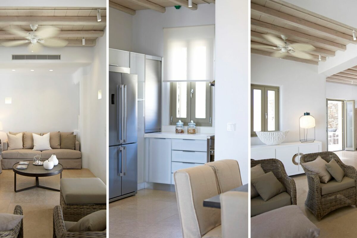 Perched right over the clear waters of the Aegean, Villa Khaleesi finds space as an astonishing private property situated literally in between the beaches of Paranga and Paradise, both easily reachable from the estate. The waterfront location provides extensive views over the sea, all the way across to the neighboring islands of Paros and Naxos, while the southwestern position of the property itself allows guests to be with reasonable distance from Mykonos Town and the most popular southern beaches of the island.