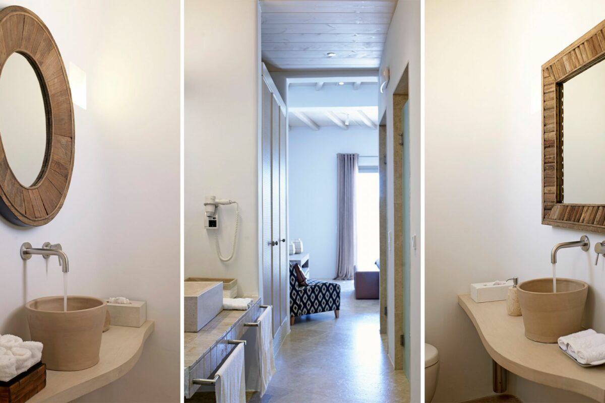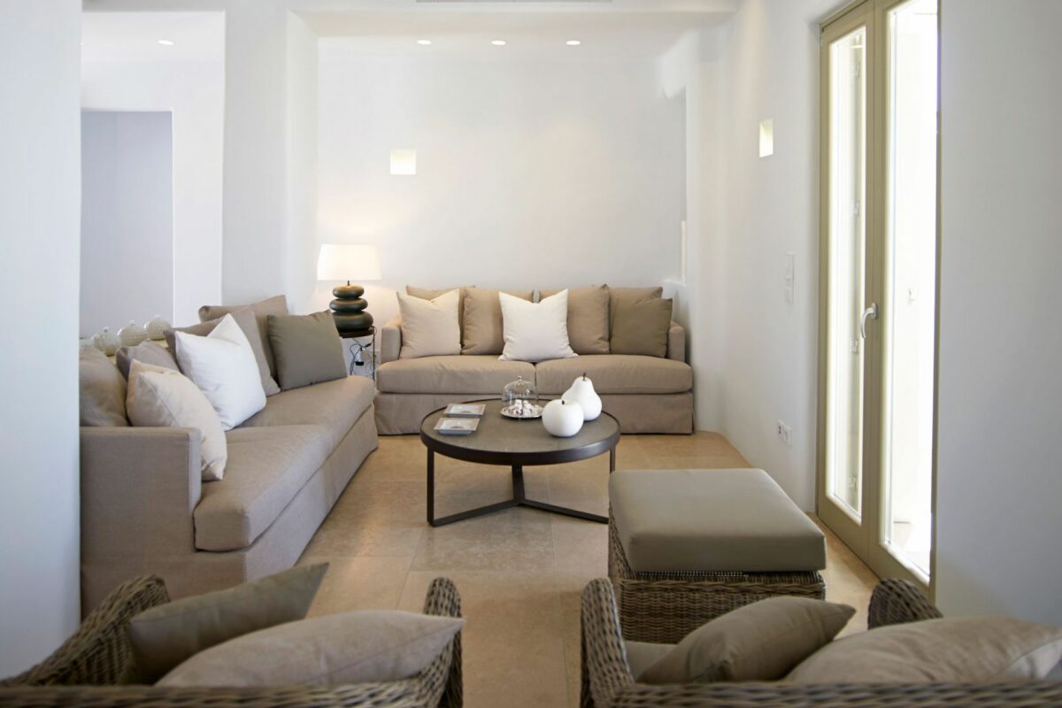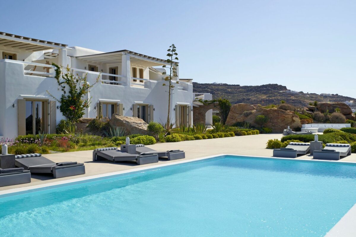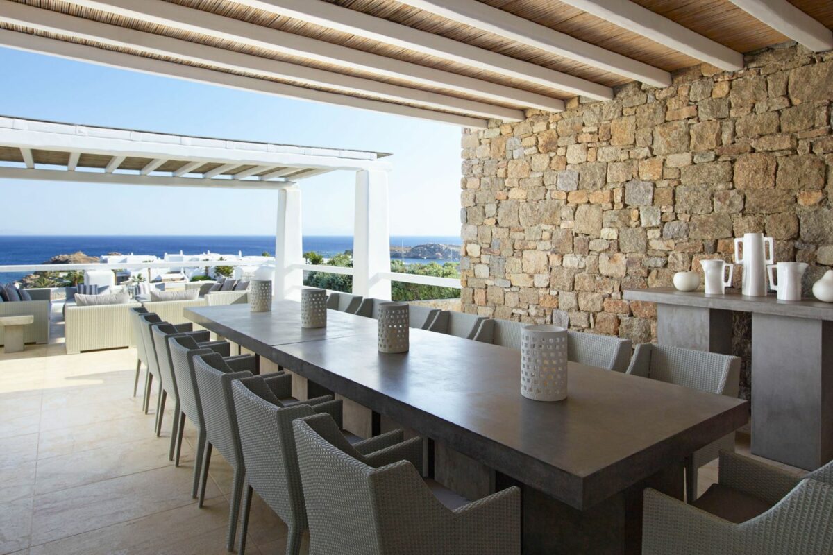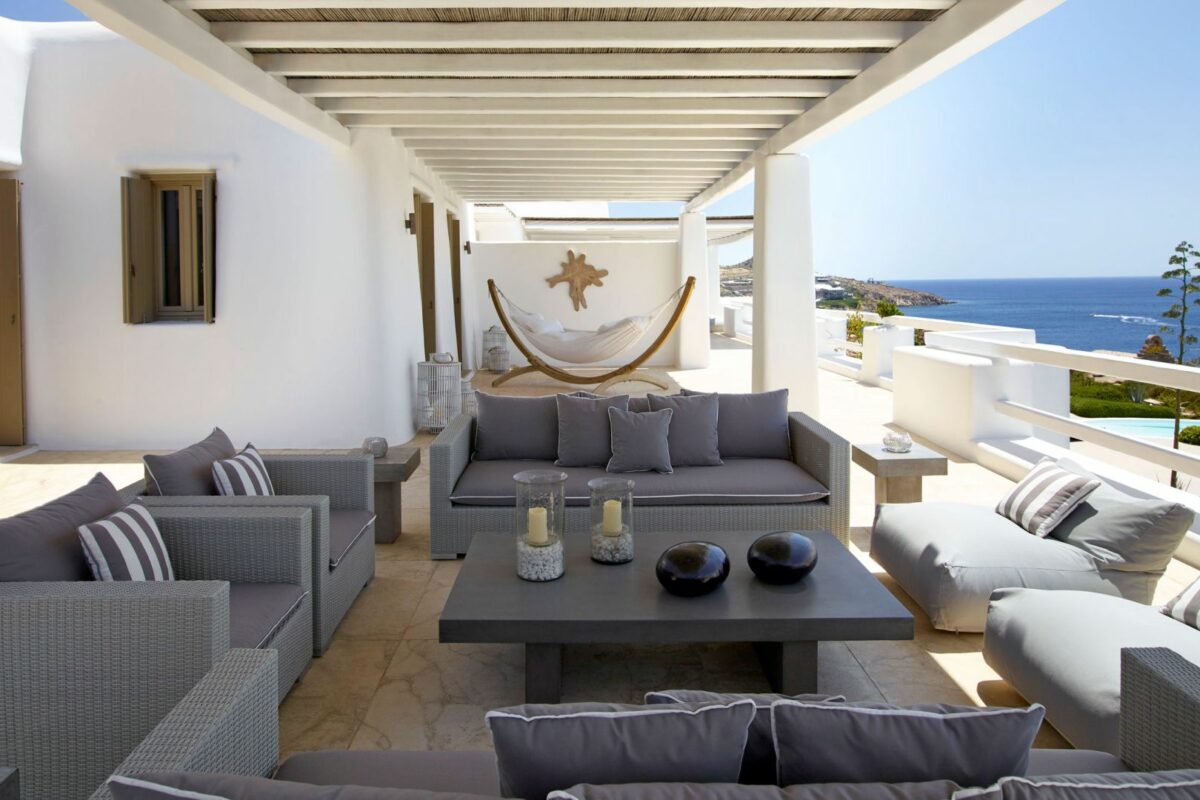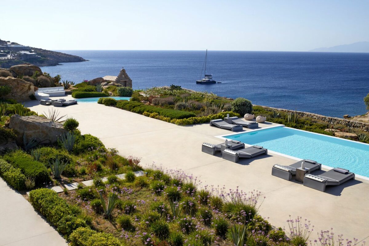 Perched right over the clear waters of the Aegean, Villa Khaleesi finds space as an astonishing private property situated literally in between the beaches of Paranga and Paradise, both easily reachable from the estate. The waterfront location provides extensive views over the sea, all the way across to the neighboring islands of Paros and Naxos, while the southwestern position of the property itself allows guests to be with reasonable distance from Mykonos Town and the most popular southern beaches of the island.