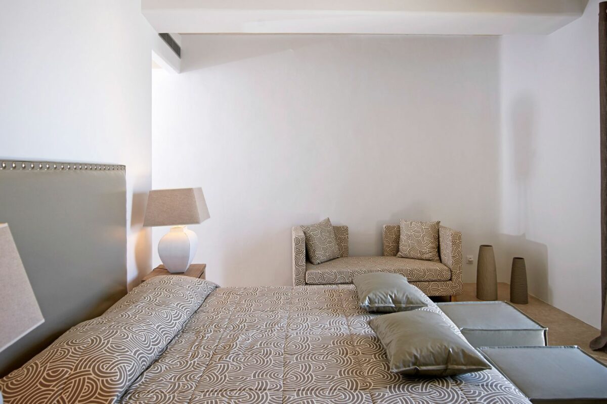 The furnishing, fittings and finishing are kin to a luxury boutique hotel, where the details are all oriented towards pure quality and seamless enjoyment of the property at any time of the day. As one of the largest private properties available on the island Villa 9535 sets a new benchmark on the market, providing a solution for large groups looking to spend their time together on the island in a refined ambiance with all comforts and in a unique location. The ample outdoor spaces and presence of a church also make it undeniably eligible for wedding celebrations or events in general.
