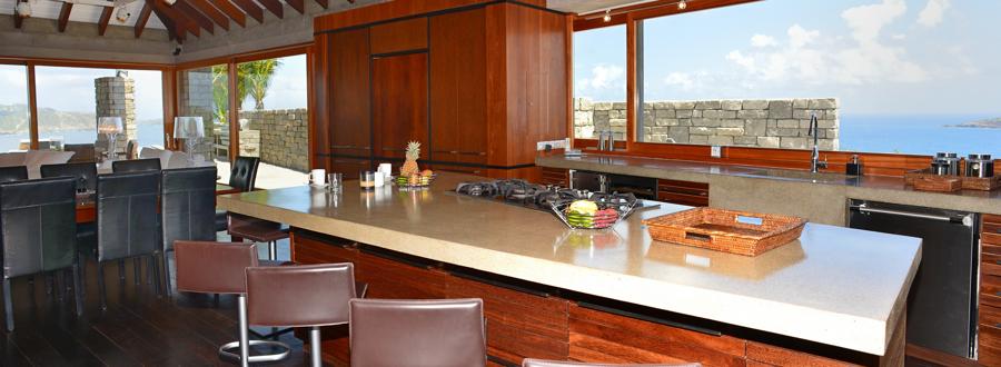La Danse des Etoiles is an extraordinary achievement of design and craftsmanship. The exquisite melding of wood and stone throughout this home creates a cool and relaxing atmosphere and combines with the carefully selected furnishings to make it one of the finest properties in St. Barth The modern and stylish kitchen is full of innovative features. It was created and designed to ensure that every detail provides an unparalleled experience, to not seclude this part of the villa with the other rooms, but rather make it a seamless transition.