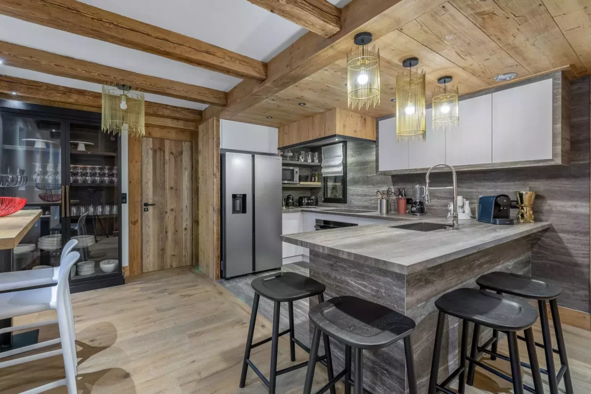 Immerse yourself in the luxury of the Best View Apartment! With its 5 modern rooms offering a view of the Olympique elevator, this space exudes elegance. Its large open living room is perfect for convivial moments, with spectacular views of the mountains through large, bright windows. The stone fireplace creates a cozy atmosphere in the evening. Get ready to experience unforgettable moments in this alpine sanctuary.