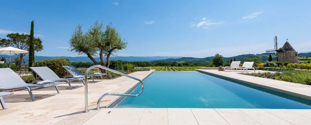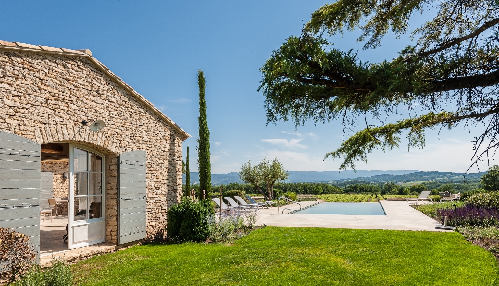 This villa is a haven of comfort to be found in the middle of vineyards and lavender fields. The heated infinity pool invites you to have moments of relaxation. The garden has been drafted by a landscape designer and includes spectacular views of the villages of Jucas, Rousillon and Bonnieux from the pool area.