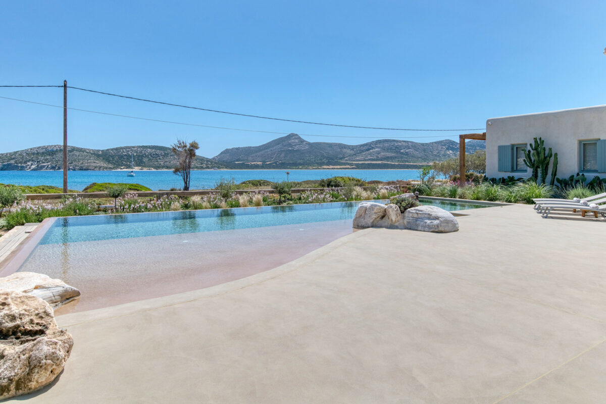 Although recently completed, this luxury villa still retains a traditional Cycladic charm. Guests will enjoy the luxury of having the choice of swimming in the infinity pool, or taking a dip directly in front of the house, whilst enjoying 180 degree views of the uninhabited island of Despotiko. Guests of the villa will also enjoy its strategic position, being protected from the North wind. This is further complemented with an effortless design flow between indoor and outdoor living areas for either relaxing or entertaining.