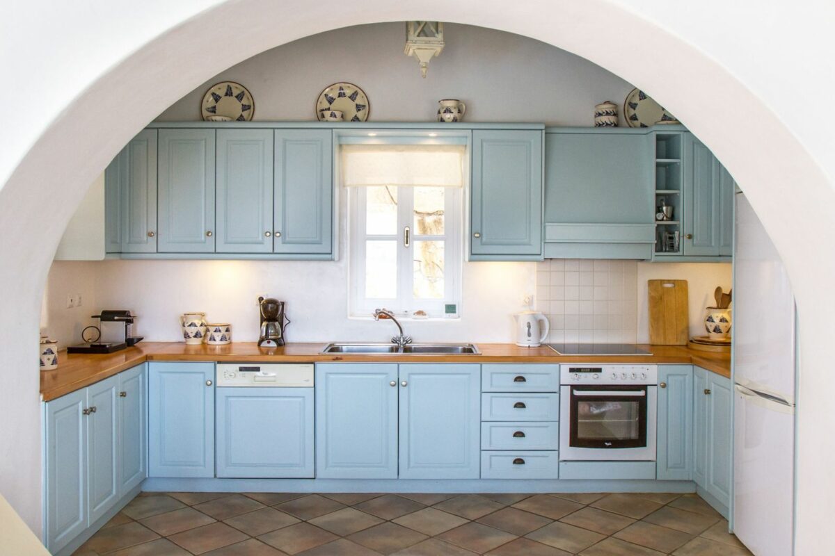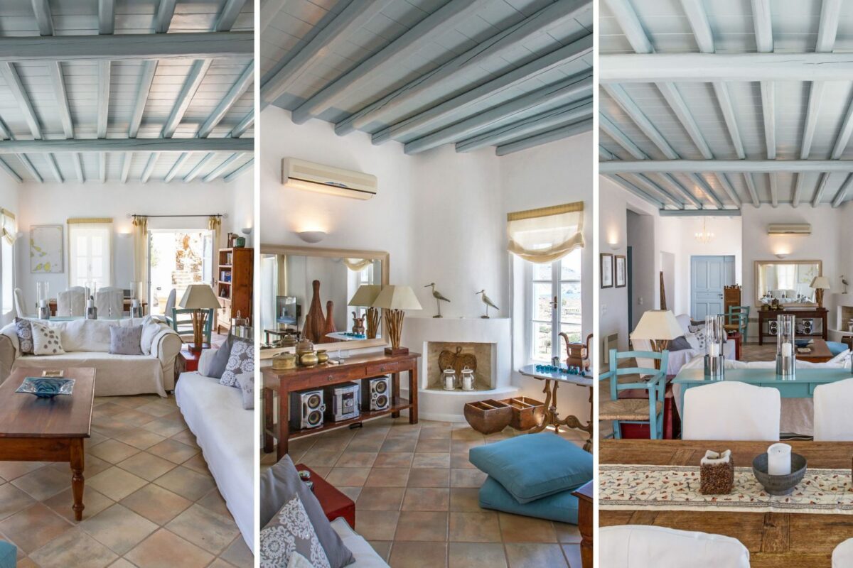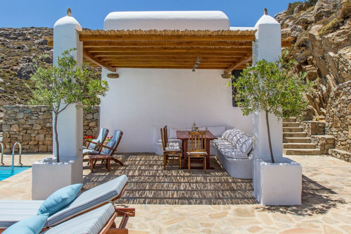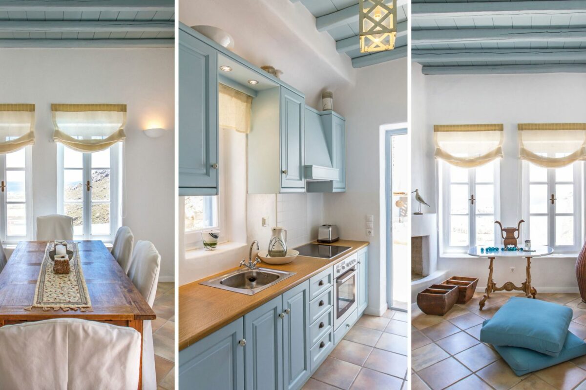 The attractive infinity swimming pool is cleverly positioned within the scenery and enjoys privacy, it features a large stone patio equipped with comfortable deck chairs, an outdoor living area and an attractive pergola for al fresco dining and recreation. The interior is typical of a modern Cycladic holiday home, neat and functional, yet nicely decorated with some attractive furniture and artwork conferring a sense of coziness and care for details.