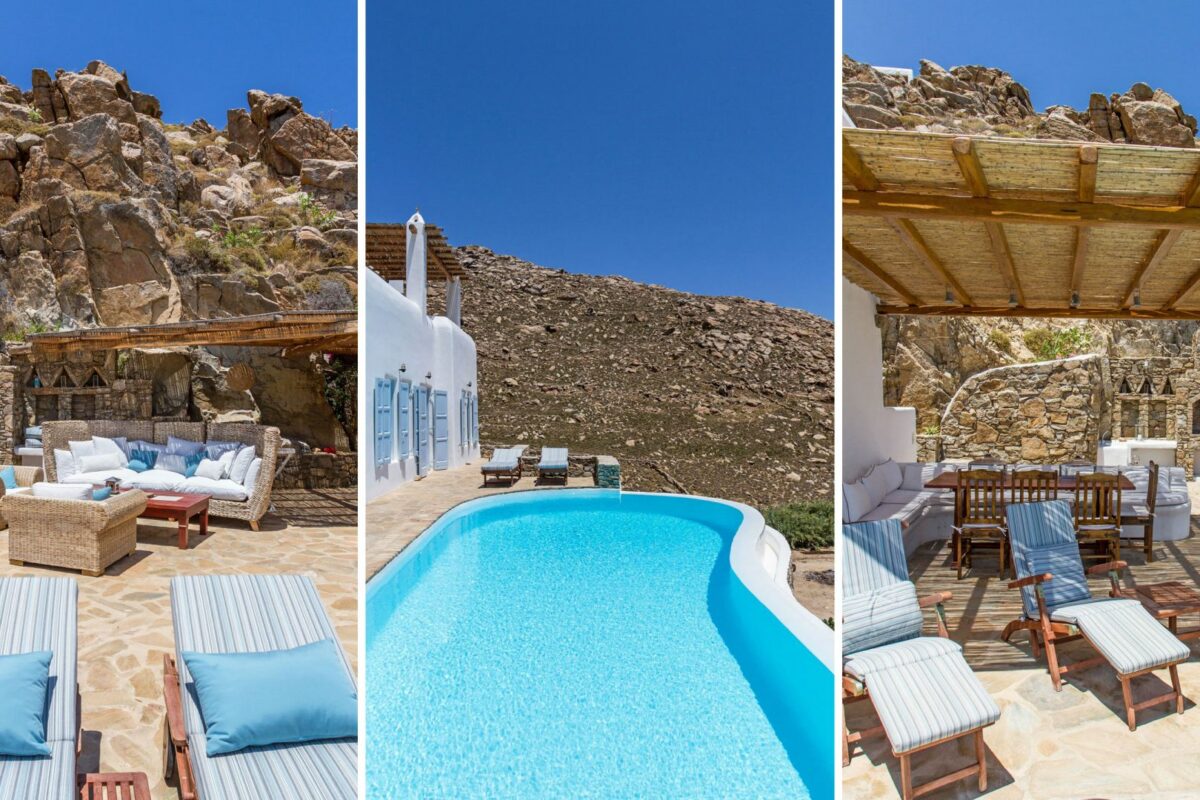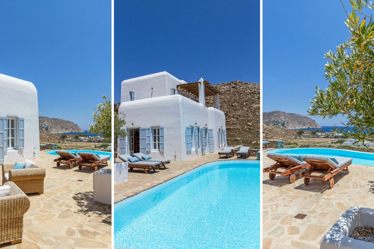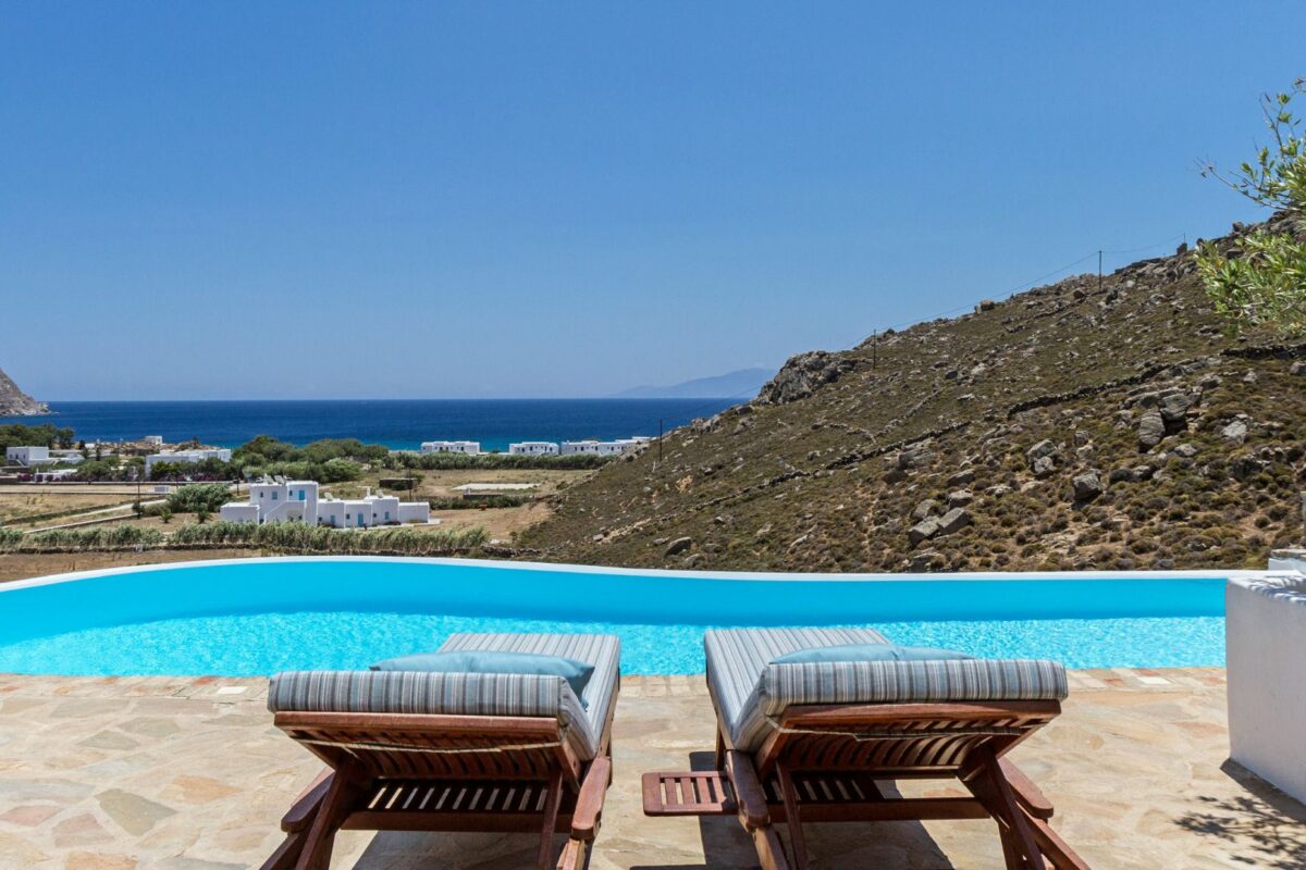 This lovely Mykonian property is located just few steps away from Agrari Beach, surrounded by ochre hills and blue sky. Its panoramic position enjoys views of the surrounding fields and the sea of Agrari Bay, giving a true feel of nature and wilderness. The beach, renowned for its crystal clear water, is conveniently located just few minutes walk down from the house, it also allows the possibility to practice many water sports, appealing to all age groups.