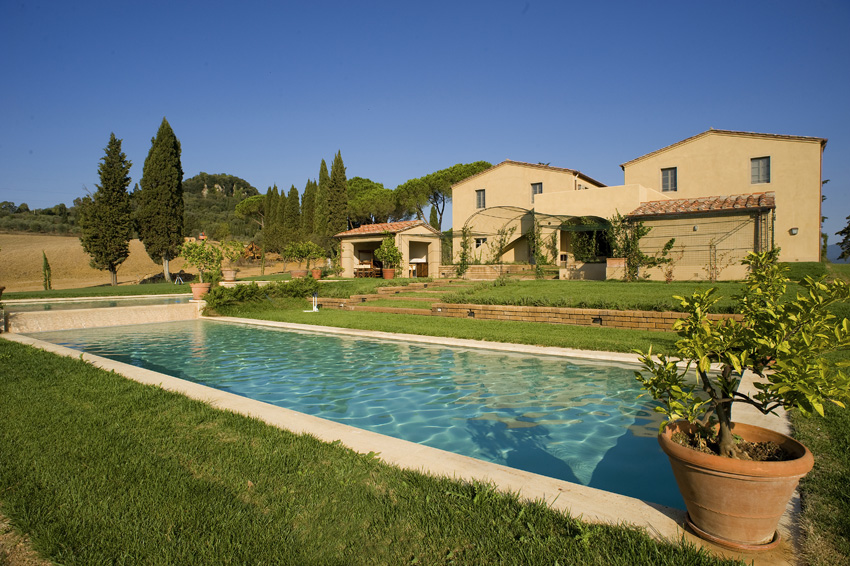 The tuscan villa offers a contemporary and traditional decor at the same time. With a mix of wood, textile and designed furniture, a relaxing and refreshing atmosphere pervades all the bedrooms and living areas. You can enjoy the comfort of the villa on the numerous sitting areas inside and outside, or the fresh Italian air in the swimming pool.