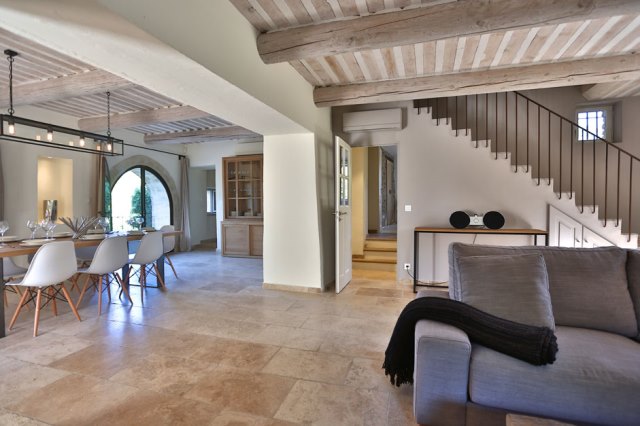 La décoration épurée et moderne vient ajouter du charme à cette belle maison en pierres typiquement provençale. Cette ancienne bergerie a du caractère et offre aussi un panorama exceptionnel.