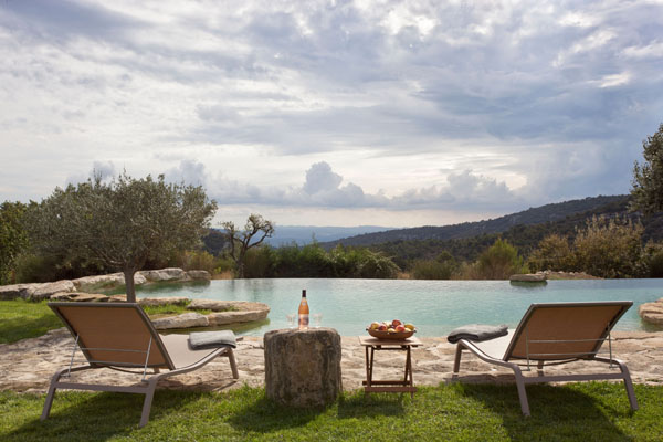Secluded in the lush countryside, the property stands at the end of a long path. The entrance door opens onto stylish and light colored decor. The main living area opens onto the dining area and the kitchen, allowing access to a terrace with panoramic views. The bedrooms, mostly located on the first floor, are all decorated with style and harmony. The fitness room has access to the north terrace. Finally the pool offers an exceptional view-- it's hard to pick a favorite on this coveted 30 acres of estate.