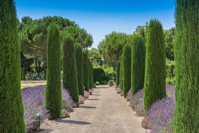 A little path seems to lead nowhere, but then appears the gate of the property opening into the gardens, the foutains and the terrasses, and all what this amazing villa has to offer.