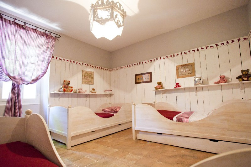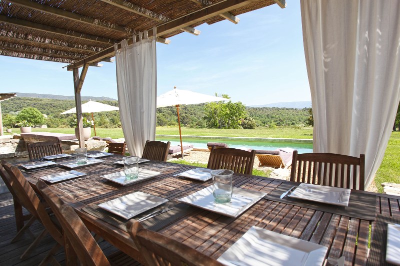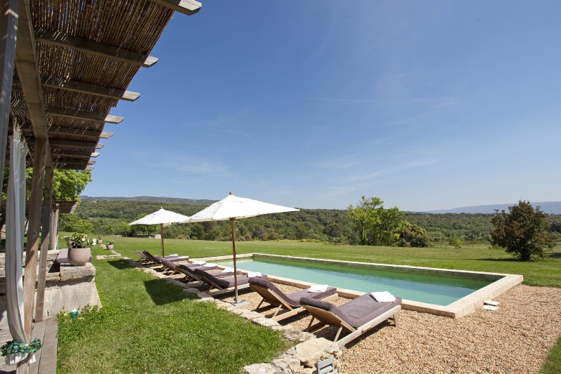 Mas Vallon is perched on a hill and enjoys great views on the Luberon range. Manicured grass field surounds directly the house offering different areas to relax. The swimming pool of simple design and its pergola are a stonecast away. Inside clear curtains and a selection of countryside furnitures are the decor of this bastide. upstairs, all bedrooms are to be found, most of them with their own bathroom.