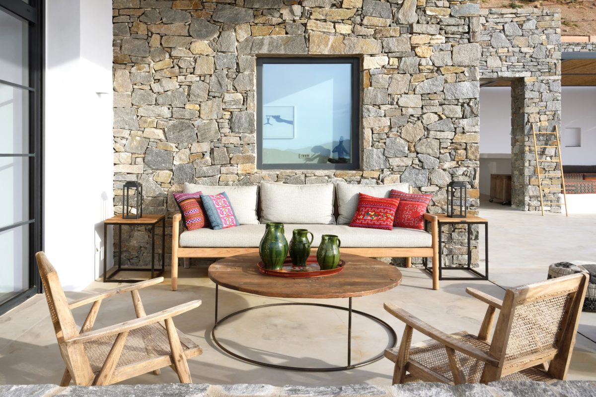 The area surrounding the beautiful Farangas Beach is home to many prestigious villas, and without a doubt, the magnificent Villa Miro stands out as one of the most remarkable among them. The property enjoys a highly advantageous position—slightly elevated to offer breathtaking panoramic views, yet close enough to the sea with a private path leading directly to the renowned beach below.