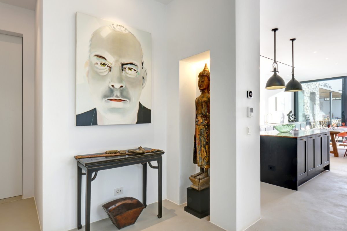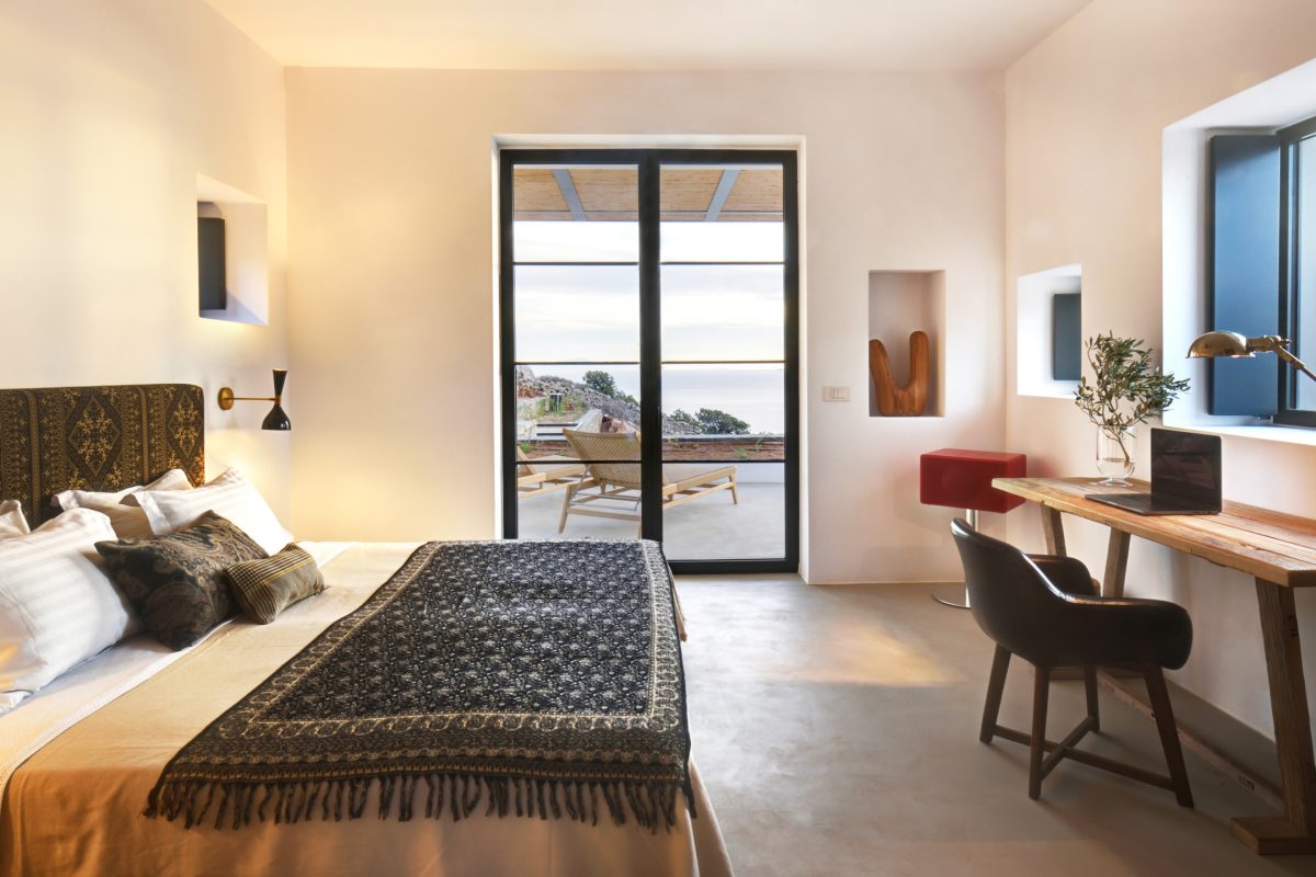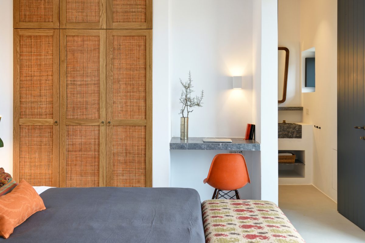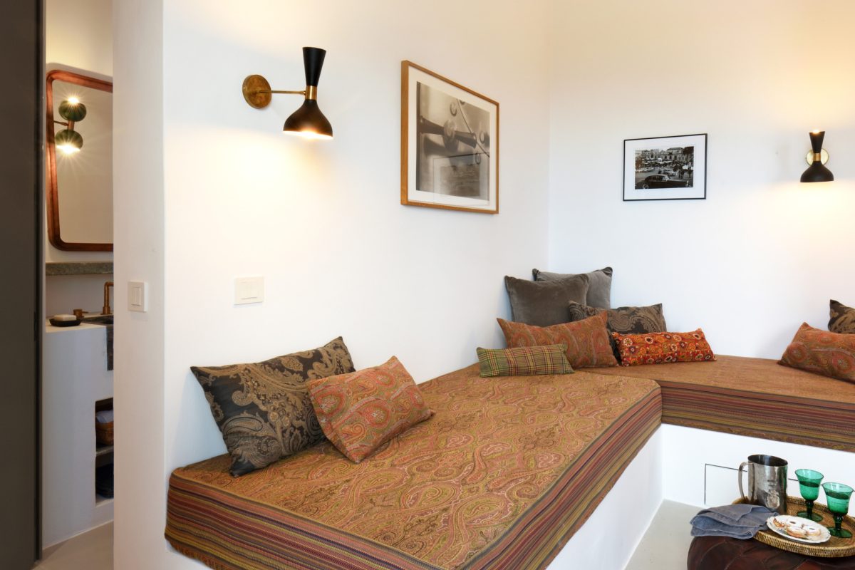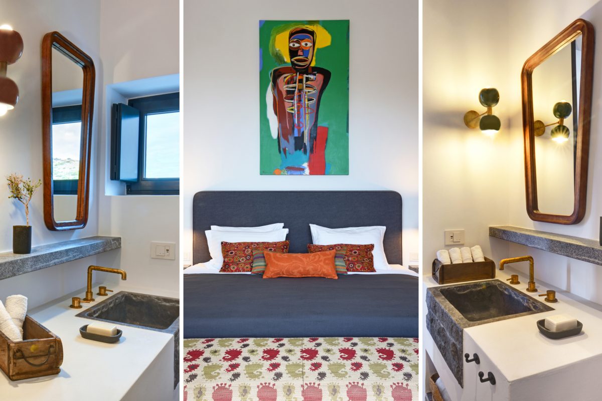This same refined theme is masterfully carried indoors, where the chic and sophisticated ambiance is complemented by eclectic works of art thoughtfully placed throughout, and an undeniable overall quality that creates a truly unique experience. The configuration of the bedrooms is particularly distinctive: the master suite is entirely independent, occupying the highest level of the property, while the guest rooms are all located on the lower level beneath the pool. These guest accommodations deserve special mention, as each is a true mini-suite, featuring a main bedroom connected to a smaller adjoining room that can serve as a lounge or a children’s bedroom, offering the flexibility to increase capacity if needed.