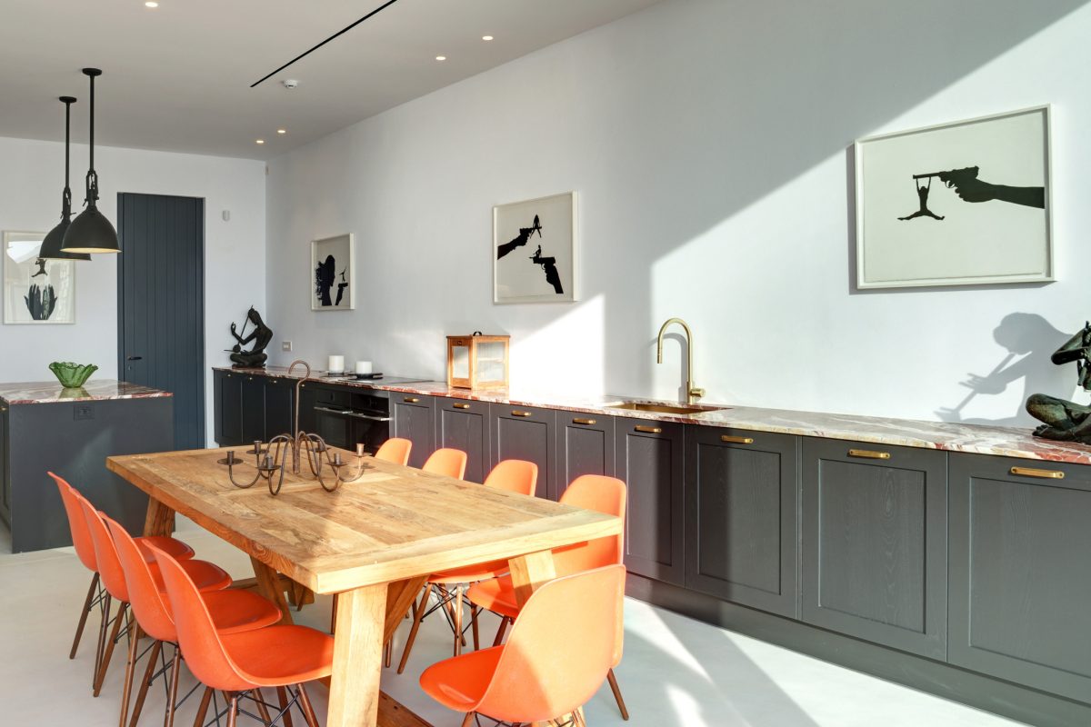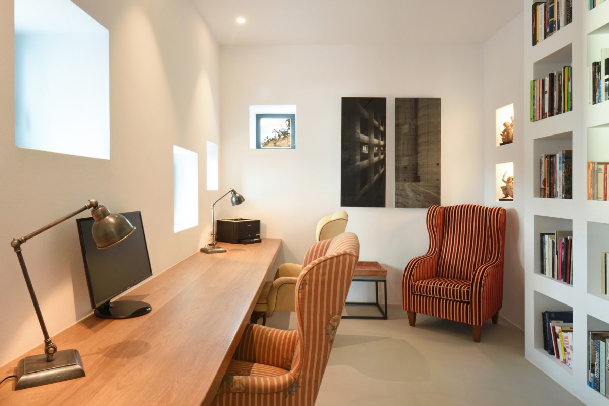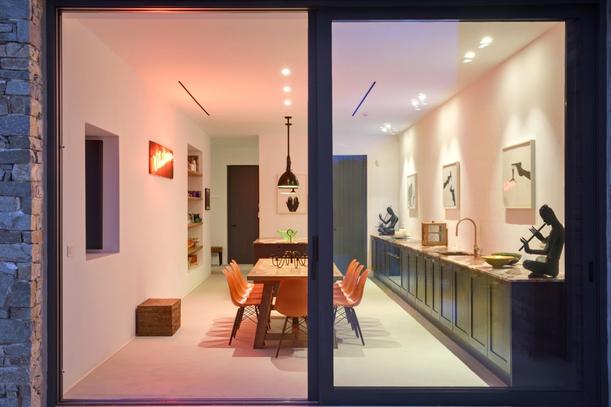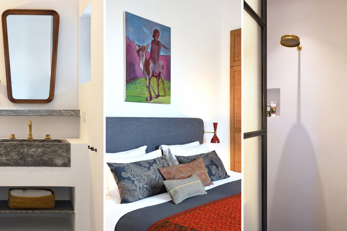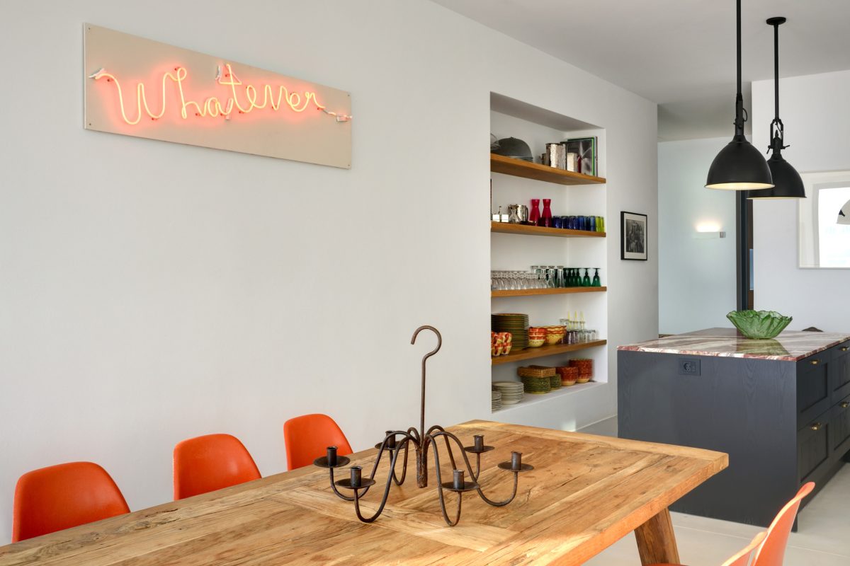 This same refined theme is masterfully carried indoors, where the chic and sophisticated ambiance is complemented by eclectic works of art thoughtfully placed throughout, and an undeniable overall quality that creates a truly unique experience. The configuration of the bedrooms is particularly distinctive: the master suite is entirely independent, occupying the highest level of the property, while the guest rooms are all located on the lower level beneath the pool. These guest accommodations deserve special mention, as each is a true mini-suite, featuring a main bedroom connected to a smaller adjoining room that can serve as a lounge or a children’s bedroom, offering the flexibility to increase capacity if needed.