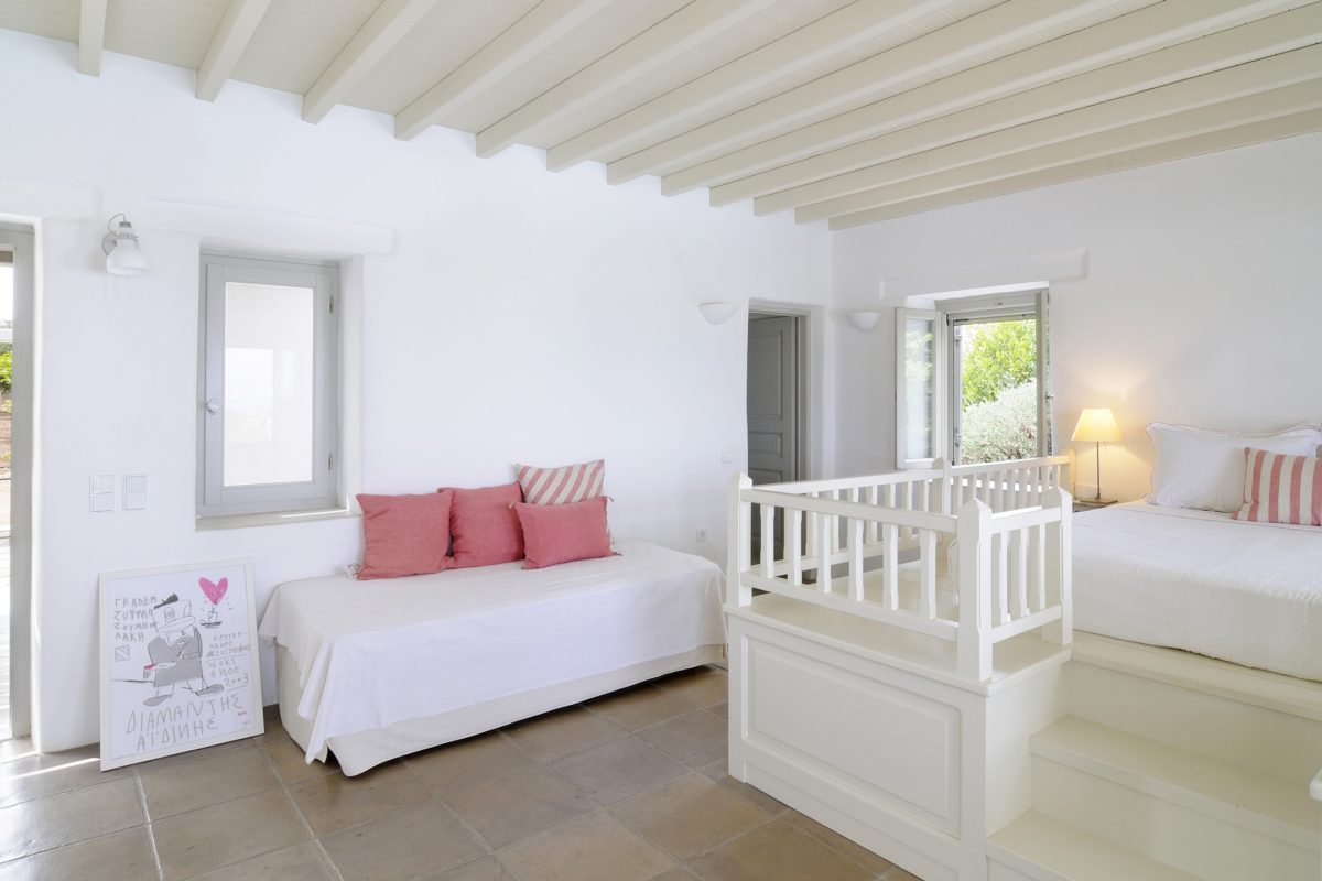 Villa Moonbeam enjoys the privilege of being privately positioned within well kept gardens and is only walking distance to the beach. Guest’s of Villa Villa 9961 will also enjoy Aegean Sea views, reaching across to the island of Naxos. This villa has the unique ability to provide guest’s with the feeling of staying in a traditional Cycladic home, yet enjoying the comfort of a contemporary villa. The cosmopolitan town of Naoussa is only a ten minute drive from the villa.