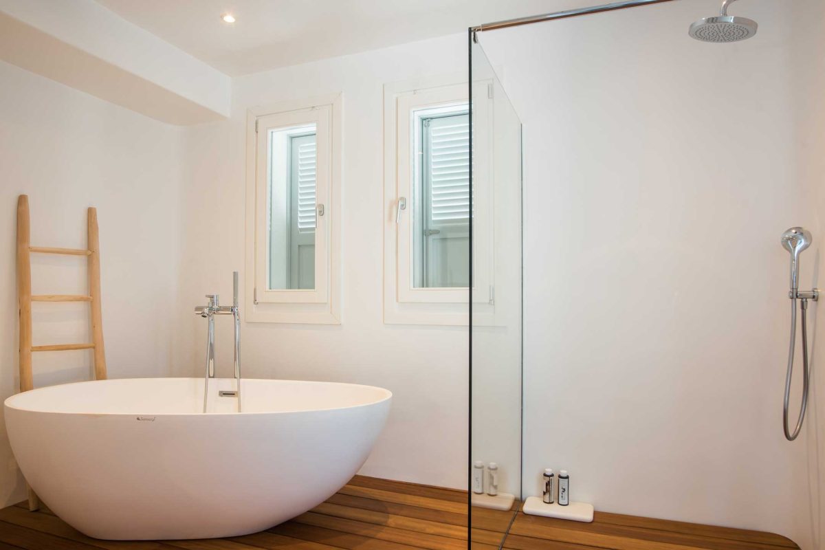 5 Guest Bedrooms with double beds, A/C, en-suite bathrooms with shower, direct access to outdoor terrace, sea view