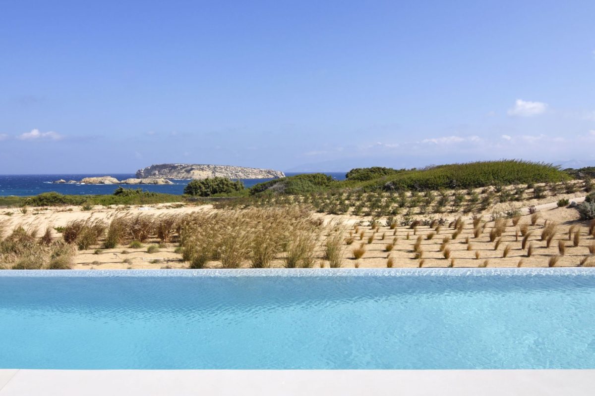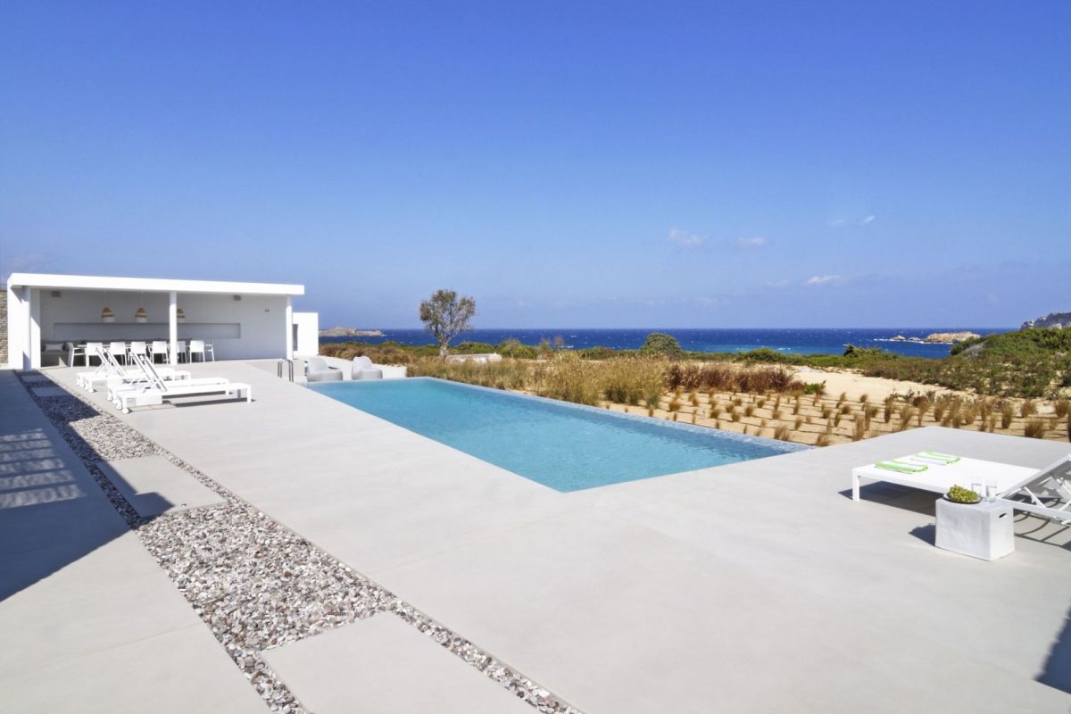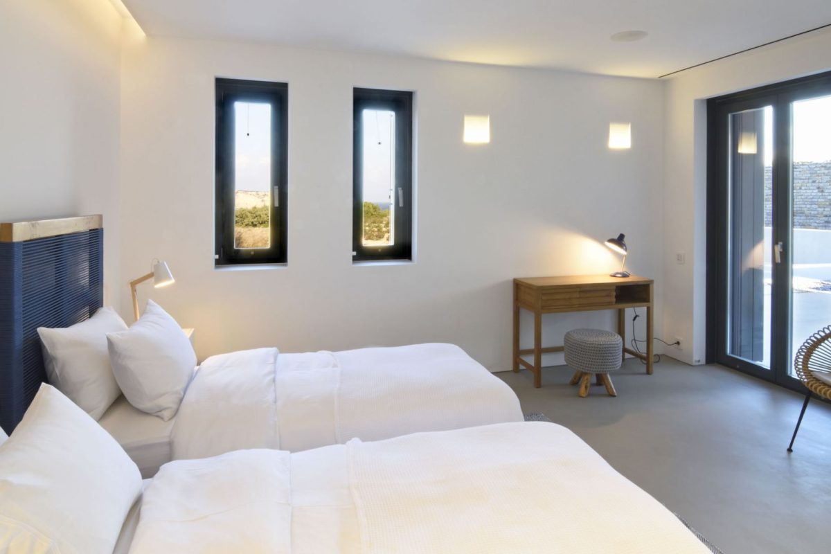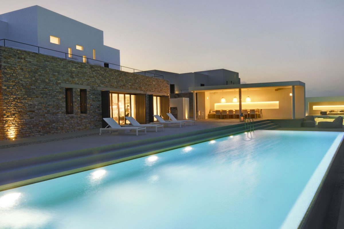 Part of a complex formed by essentially two identical villas, Villa Nerai South occupies a privileged position in the northern part of the island. The contemporary villa is located just a short drive from the famous Santa Maria beach. Although enjoying a quiet and private position, the cosmopolitan town of Naoussa, a favourite destination for travellers with its multitude of restaurants, shops and bars for all tastes, is also just a short drive away.