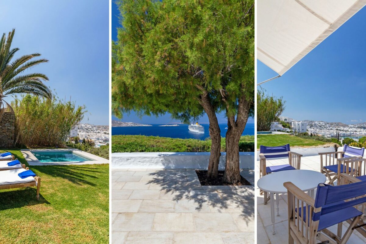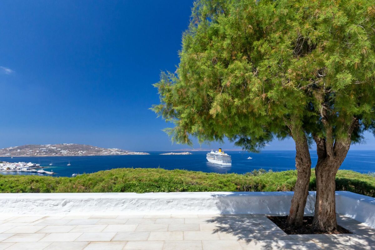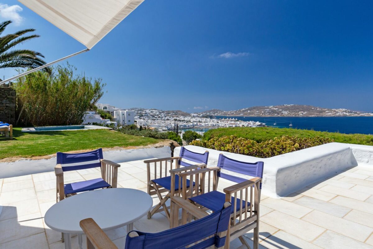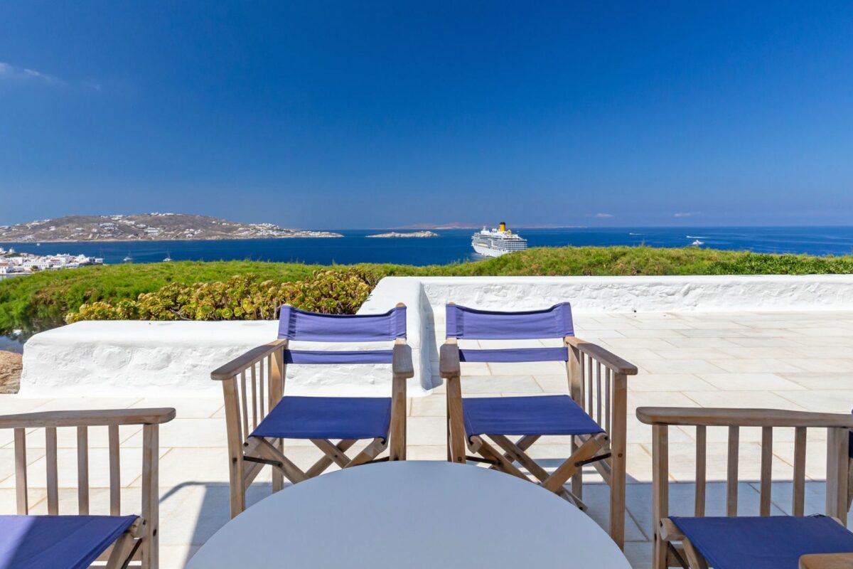 Position: Facing West, overlooking Mykonos Town, the Old Port & the sunset