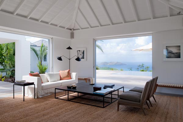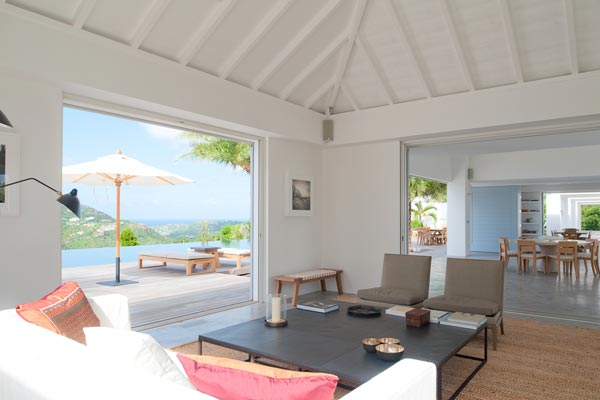 glass doors open onto the front deck and views over St Jean.