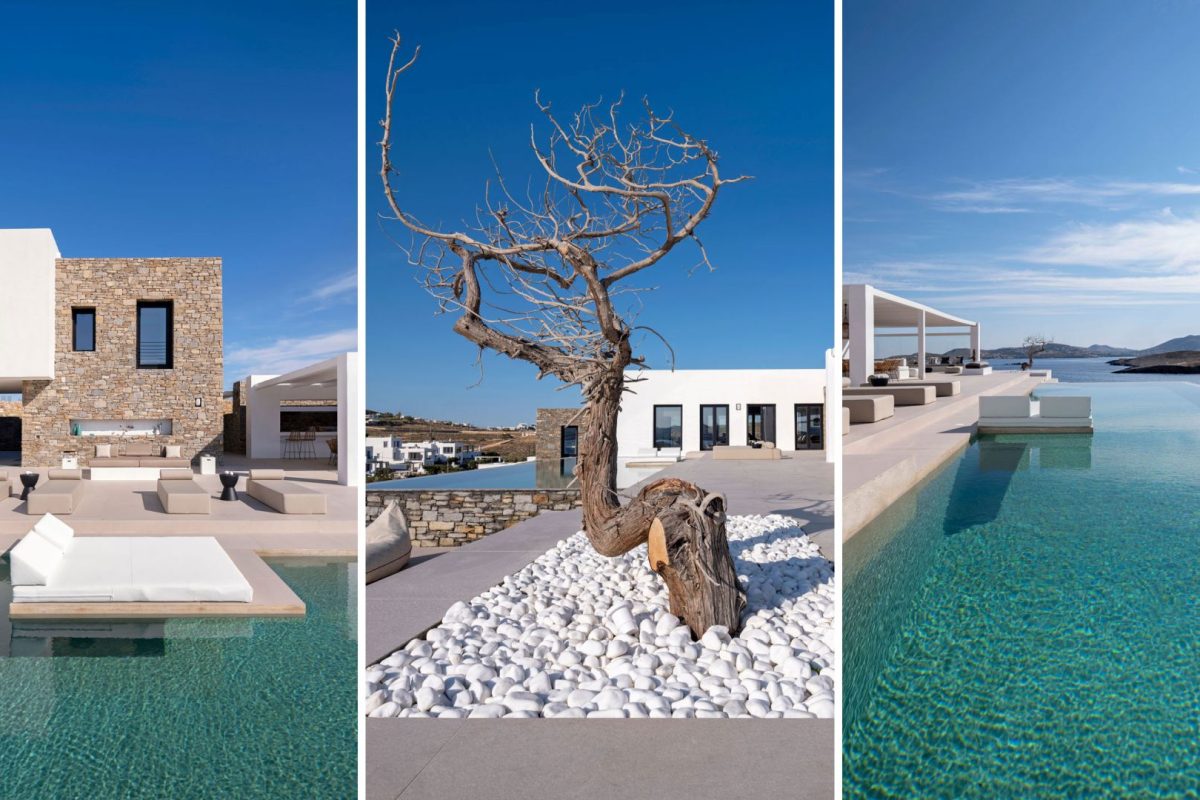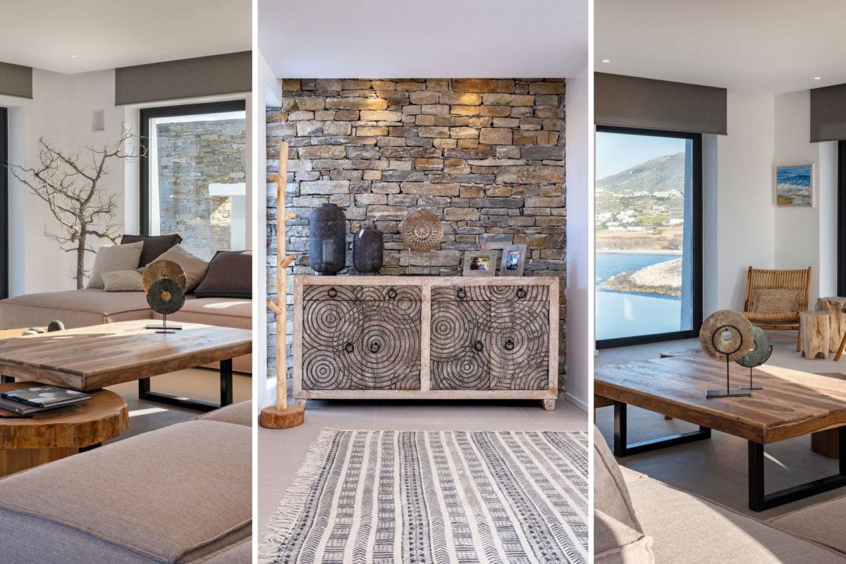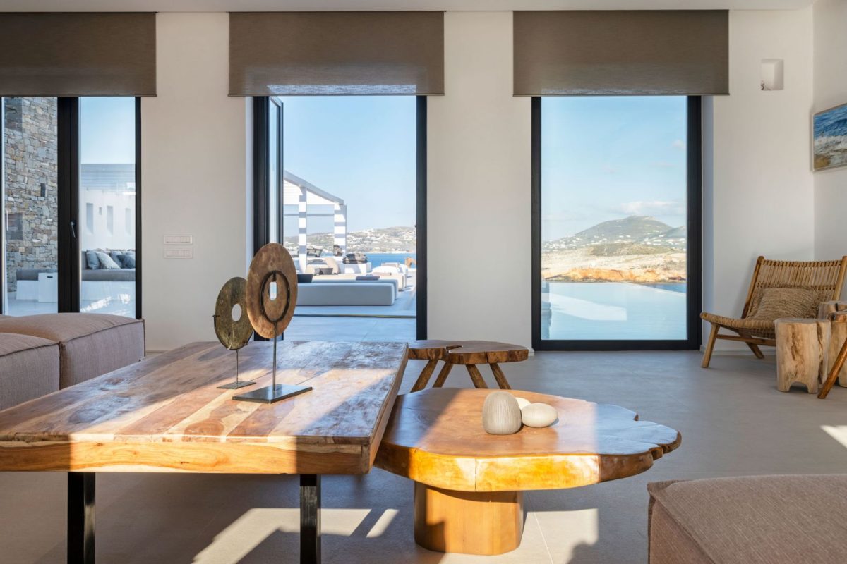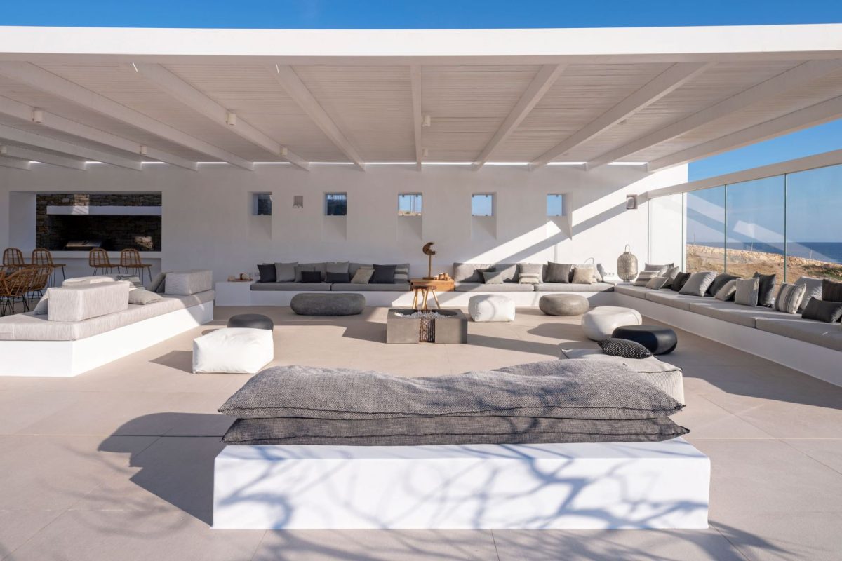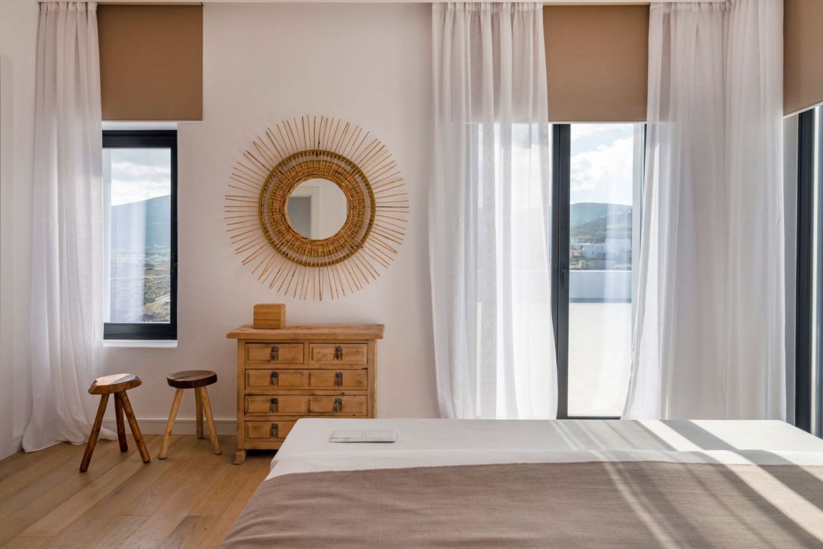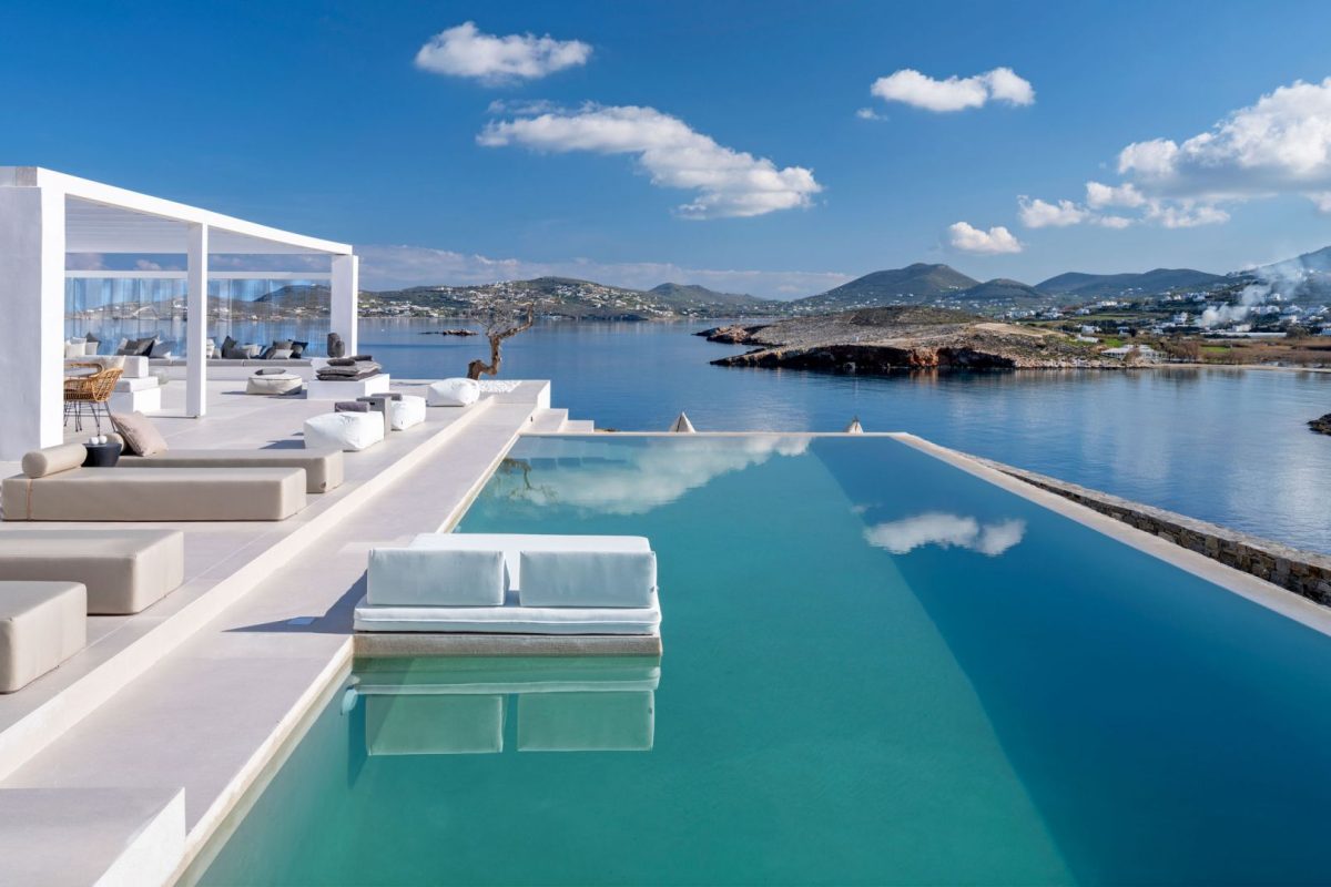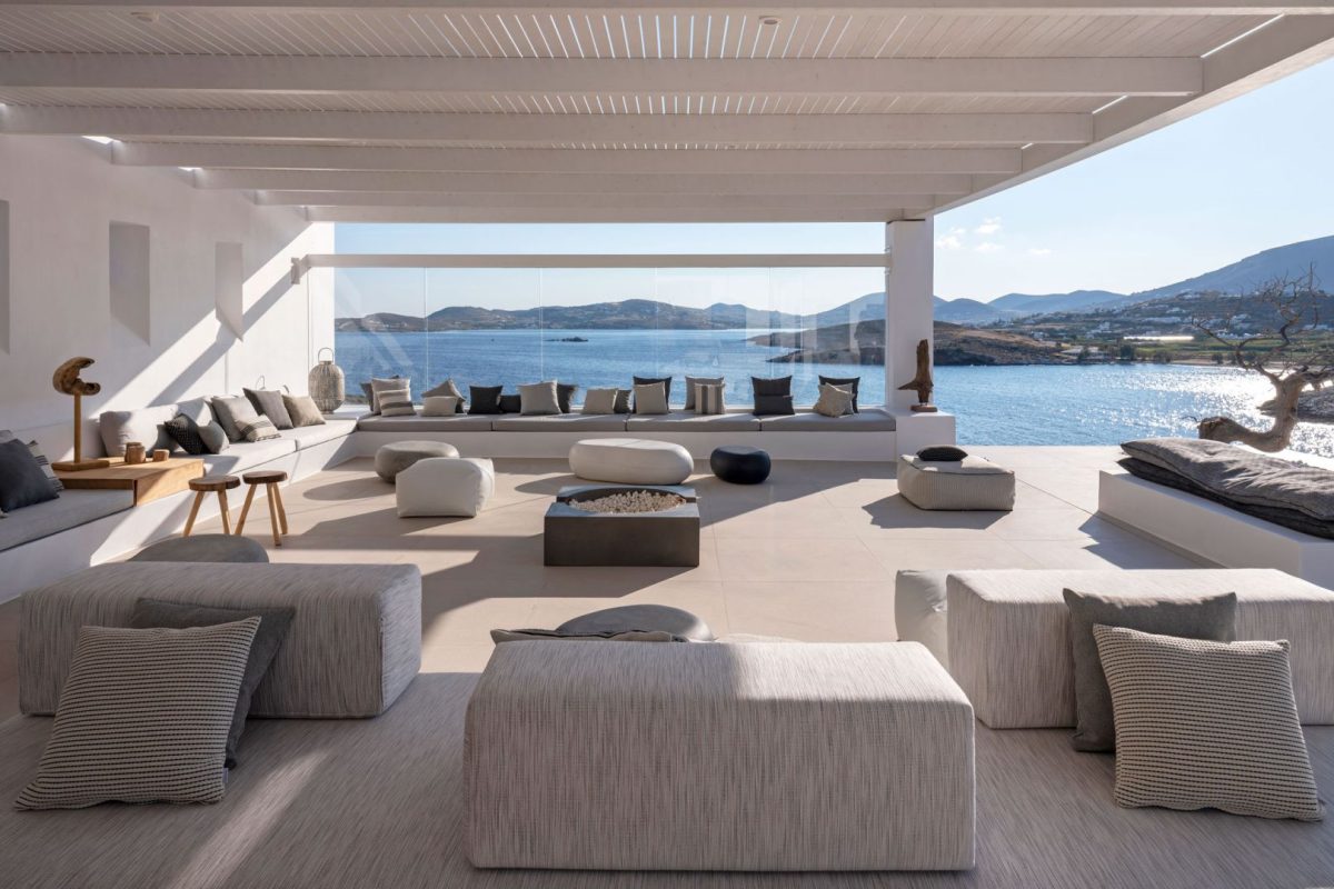 The magnificent Villa Orizzonte, recently completed, occupies a dominant position on Parasporos Bay. This large villa enjoys an unobstructed view of the sea and the coast with Antiparos in the background. The location is enhanced by the direct access to the sea just below the property and the proximity to the popular beach of Parasporos. The charming town of Parikia, with numerous restaurants and shops for all tastes, is just a short drive away. The architecture of the property highlights a contemporary approach that is perfectly balanced with natural stone elements, alternating with the typical all-white walls. Beyond the large infinity pool that winds its way onto the property's main terrace, guests will be attracted by the large, covered outdoor lounge and dining area – providing an extremely enjoyable environment, designed to accommodate large groups in maximum comfort.