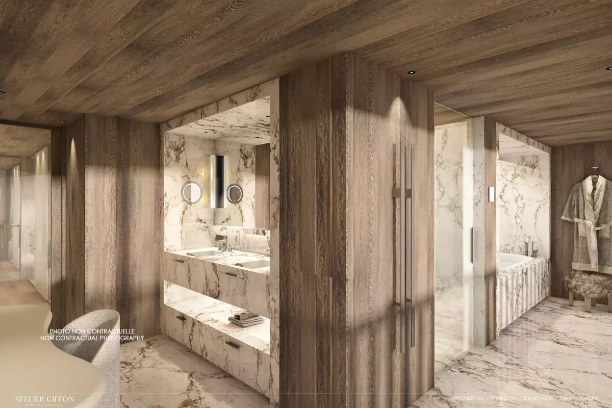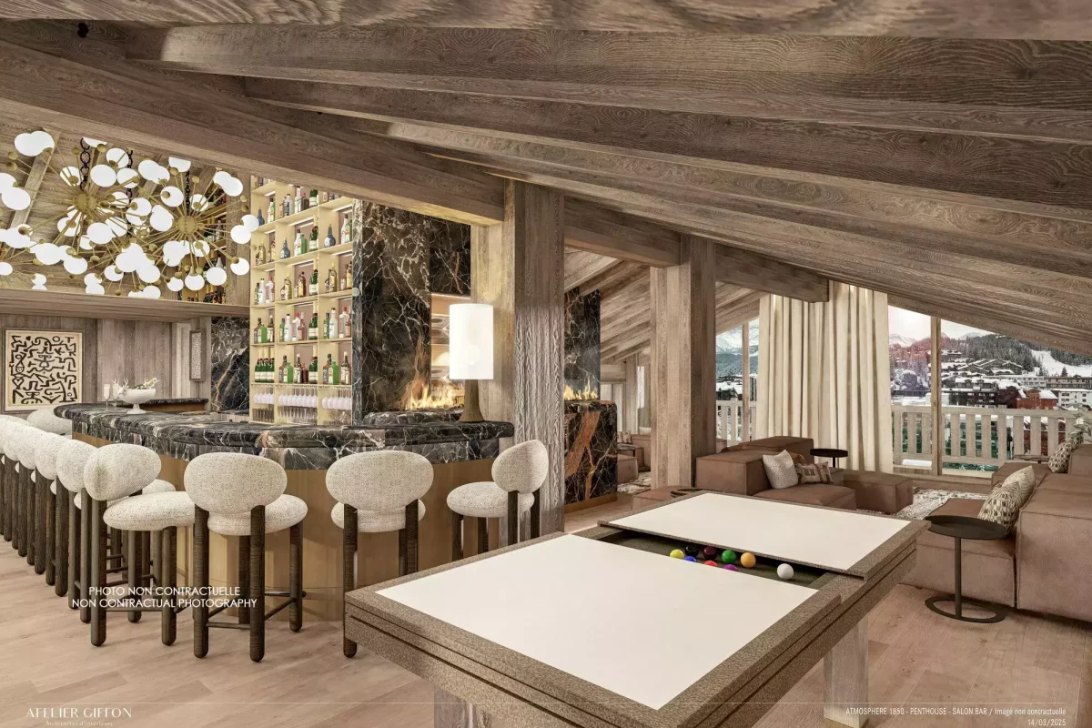 This new penthouse is ideally located on the slopes. The residence features spacious areas built with quality furnitures. It is inspired by the new Alpine design, blending contemporary trends with luxury codes.