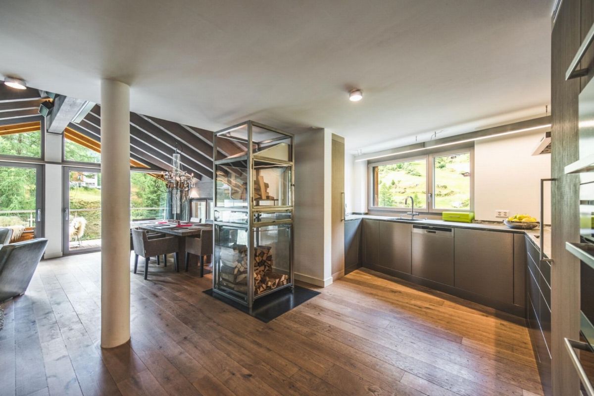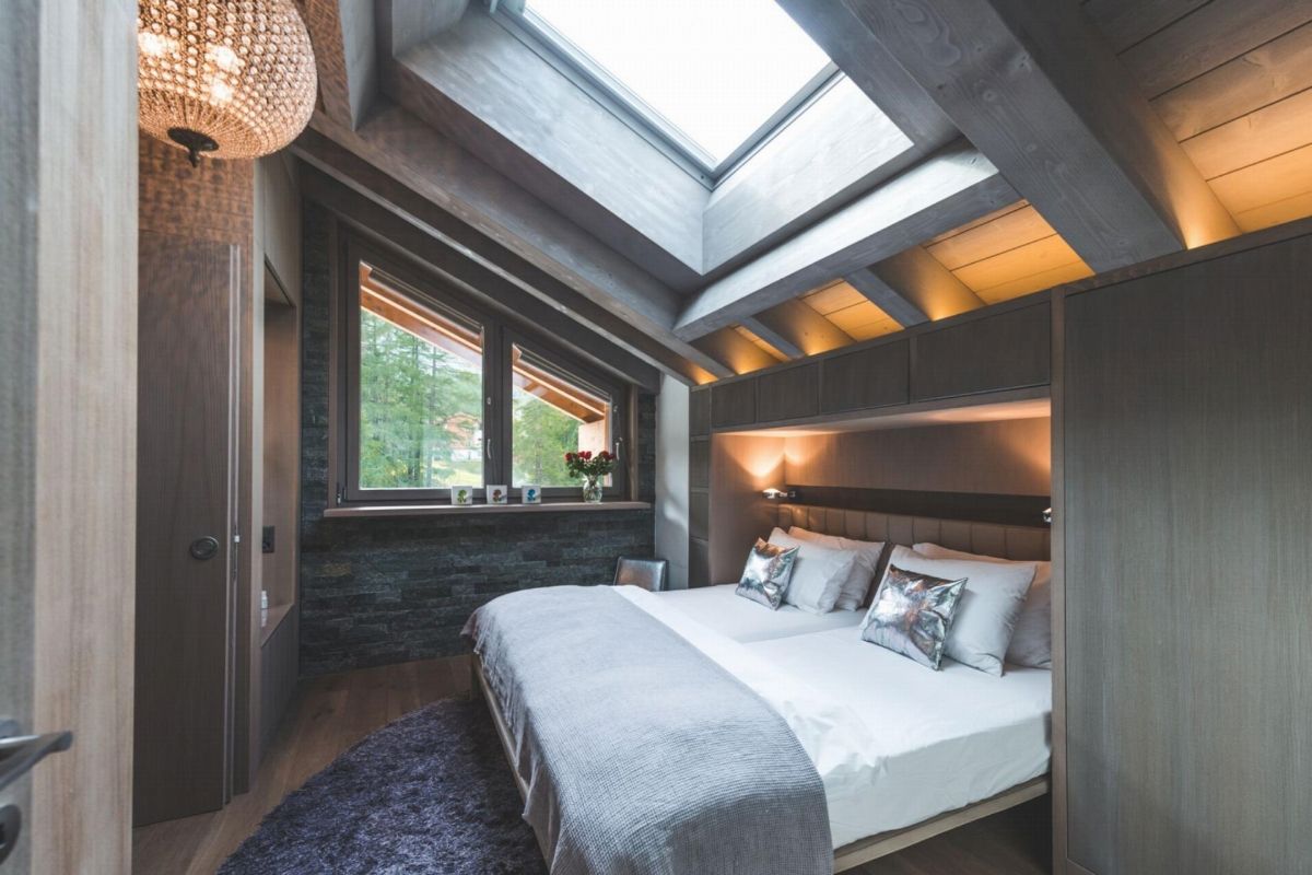 Panicha Penthouse is a luxurious 140 m² duplex, nestled at the foot of the slopes. Designed by renowned architect Ushi Tamburriello, this high standard apartment can accommodate up to 8 people. With its spacious and warm living space, double-height ceilings and quality modern furniture, every detail exudes Alpine authenticity and comfort. Enjoy evenings in front of the glass fireplace, relax on the sumptuous sofas, or savor a meal prepared in the fully equipped kitchen. And to top it all off, a large south-facing terrace offers you a breathtaking view of the Matterhorn and the surrounding mountains.