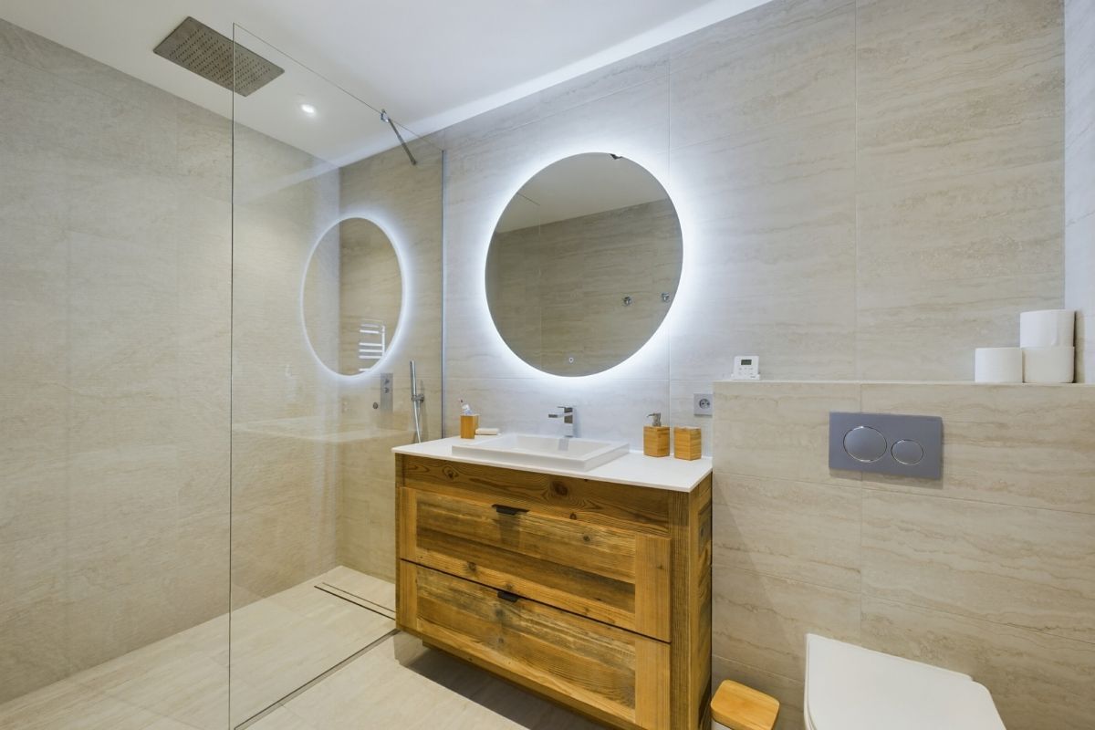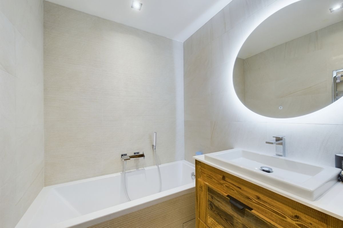 de bain avec baignoire et douche, double vasque, wc séparé, bidet