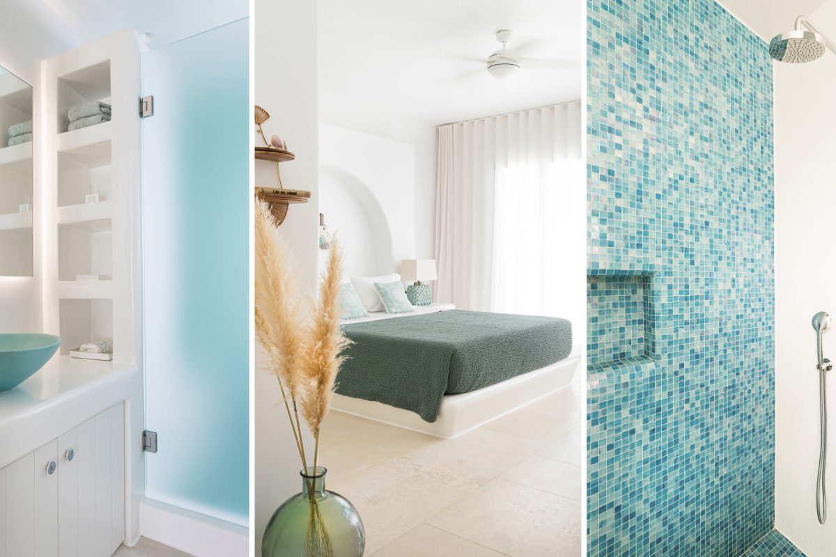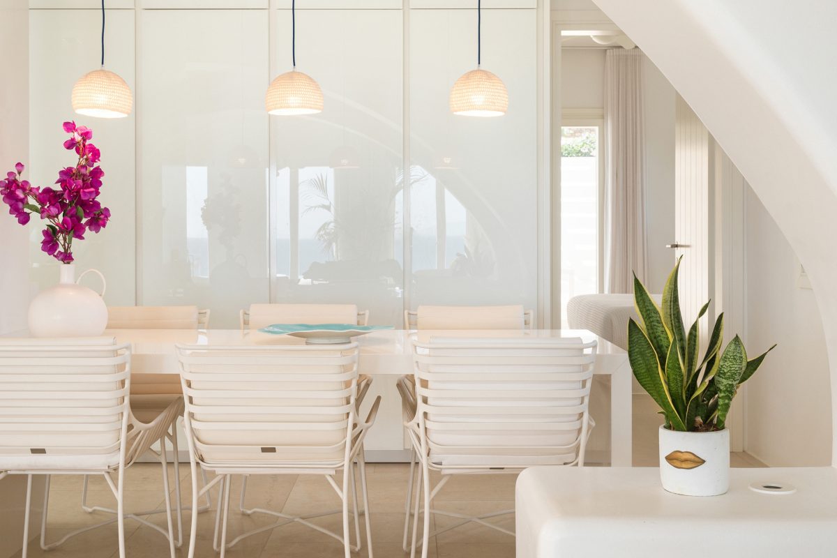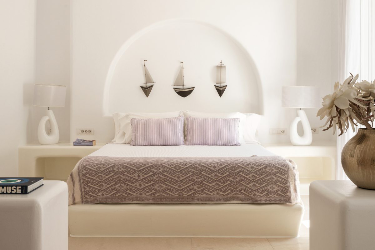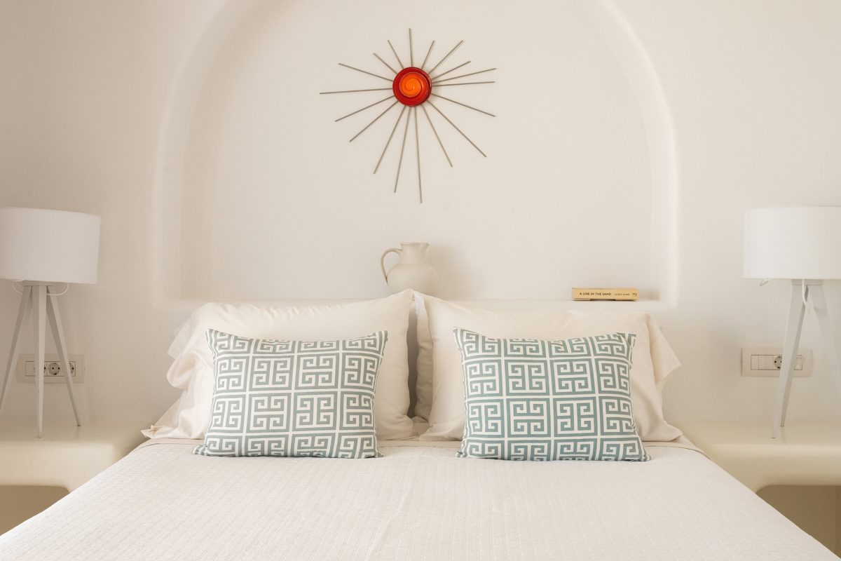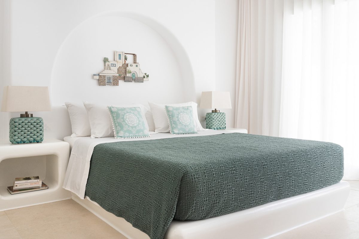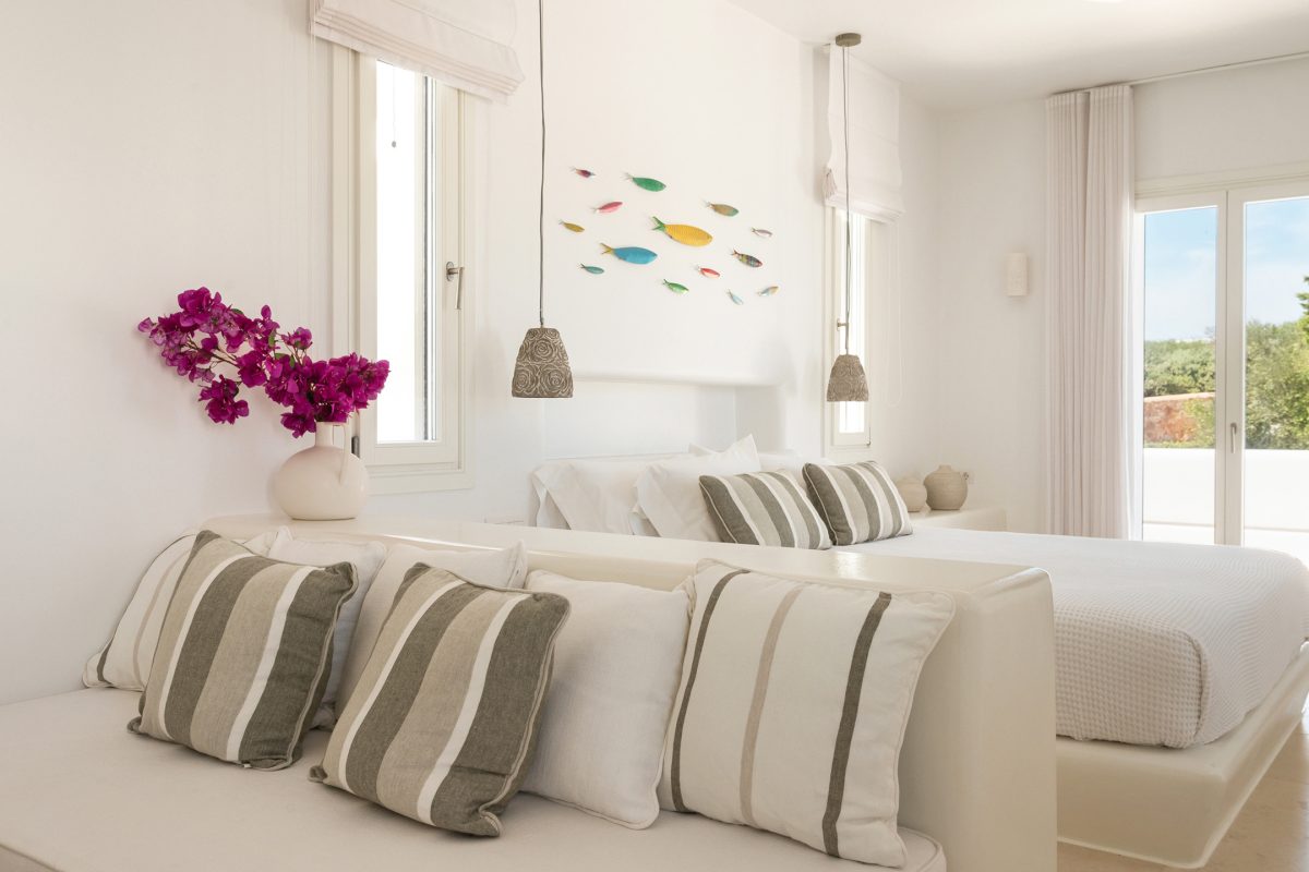 Inside the style is contemporary and elegant, with an eye to the Cycladic tradition always evident. The predominant colour is always white, with well-selected furnishings to personalise and embellish every room. Technical equipment and the quality of the materials used, guarantee an excellent general standard, both in the common areas and in the numerous bedrooms.