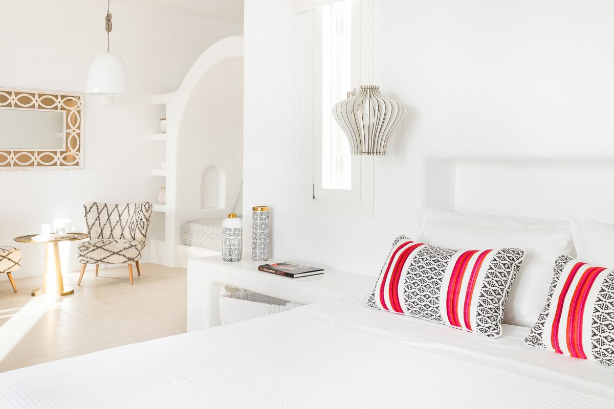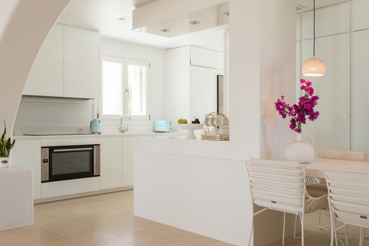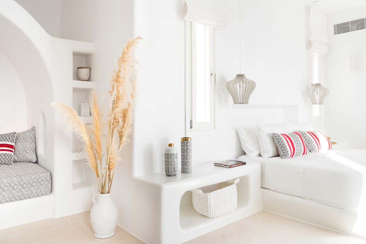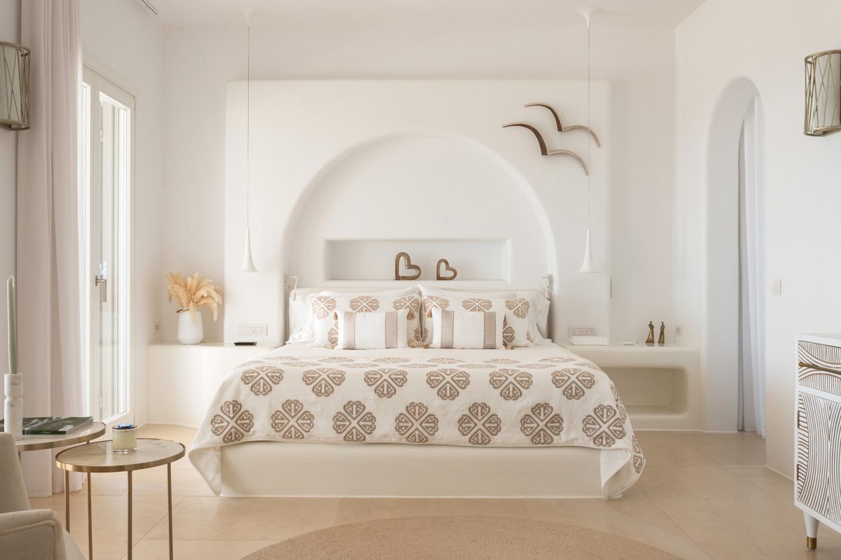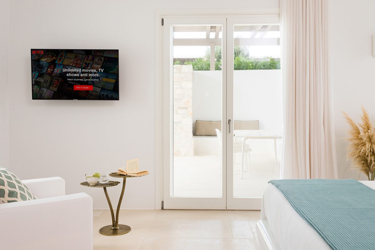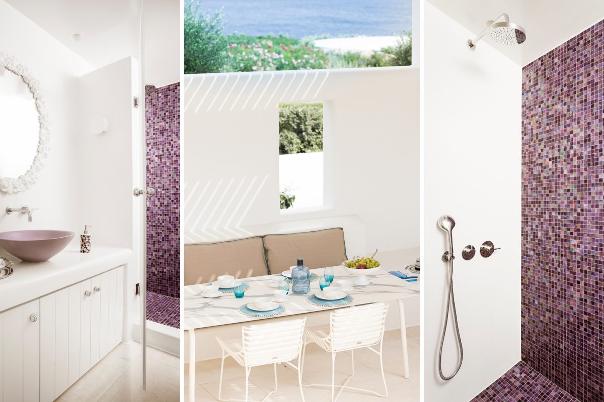 Inside the style is contemporary and elegant, with an eye to the Cycladic tradition always evident. The predominant colour is always white, with well-selected furnishings to personalise and embellish every room. Technical equipment and the quality of the materials used, guarantee an excellent general standard, both in the common areas and in the numerous bedrooms.