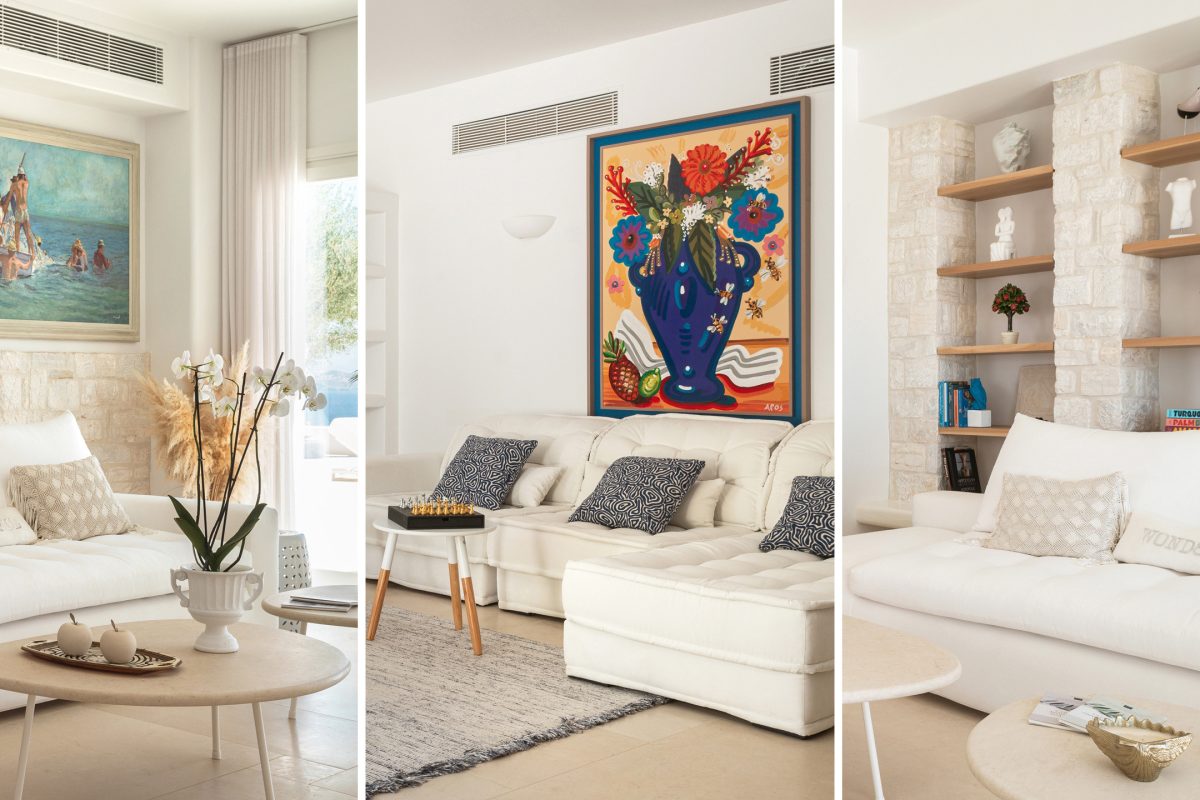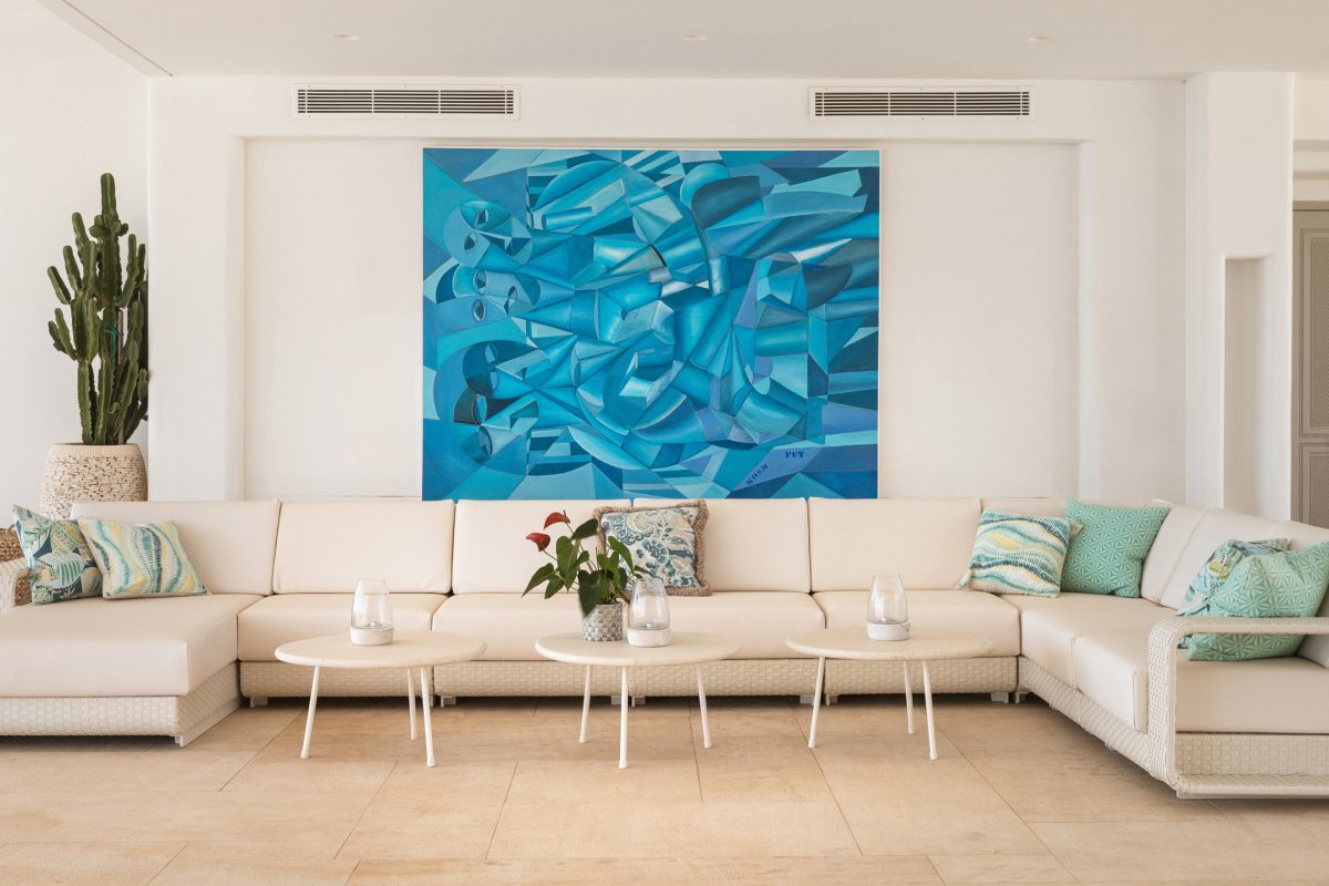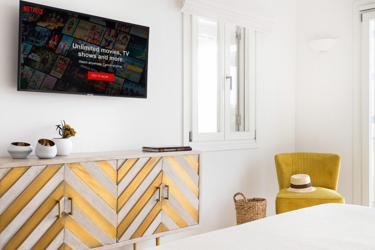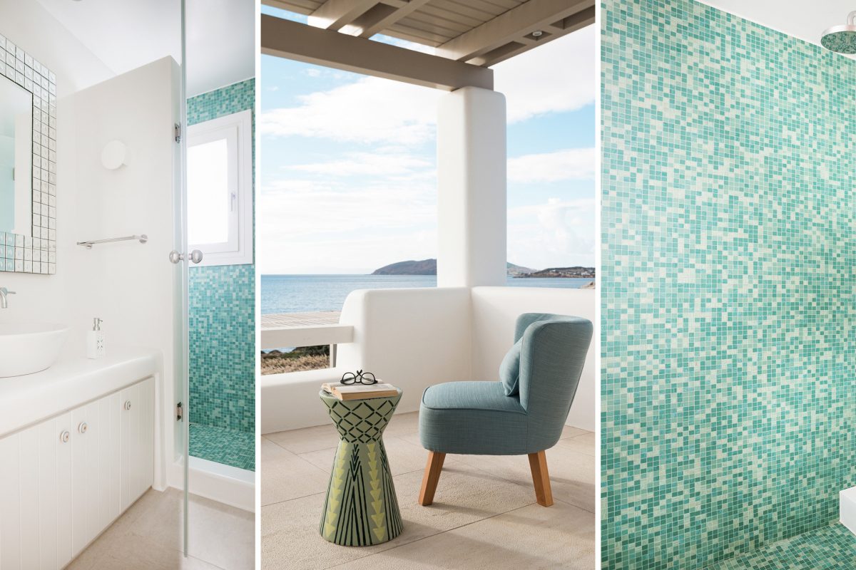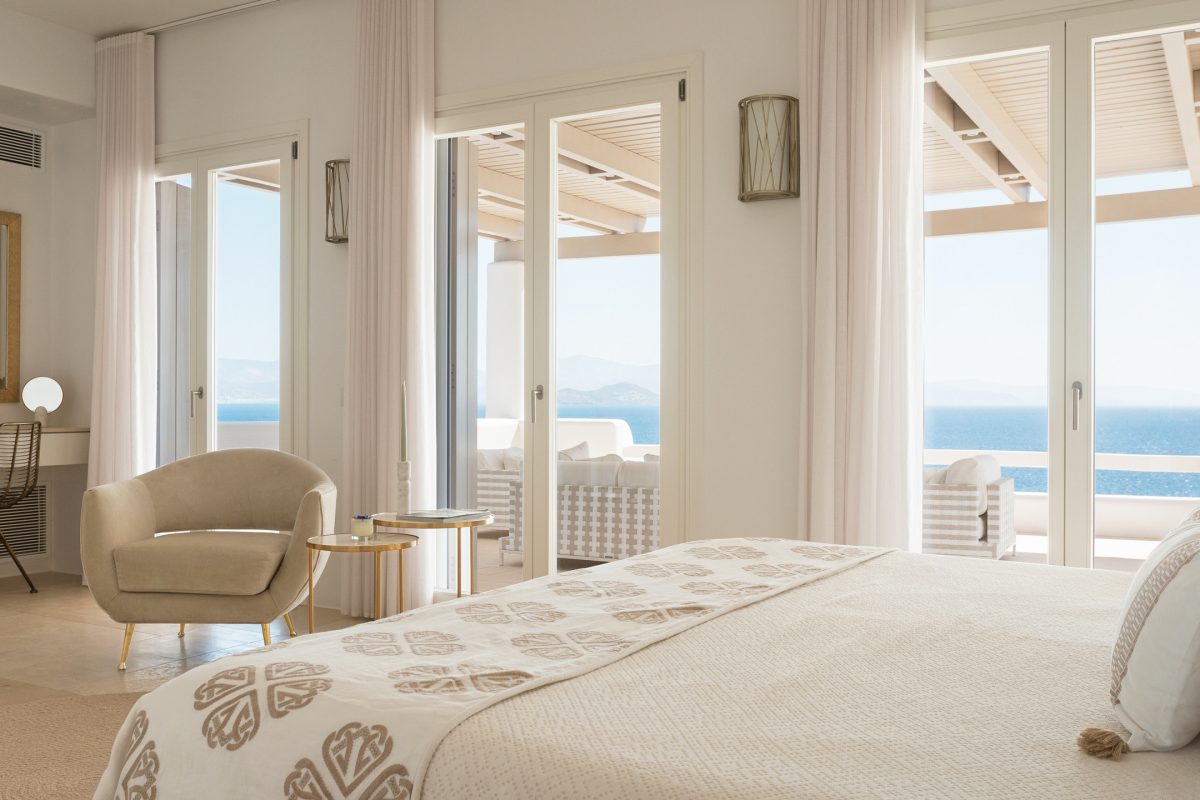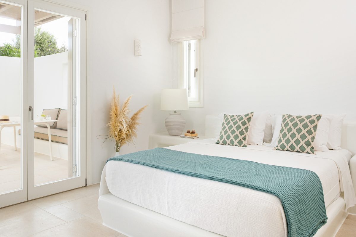 Inside the style is contemporary and elegant, with an eye to the Cycladic tradition always evident. The predominant colour is always white, with well-selected furnishings to personalise and embellish every room. Technical equipment and the quality of the materials used, guarantee an excellent general standard, both in the common areas and in the numerous bedrooms.